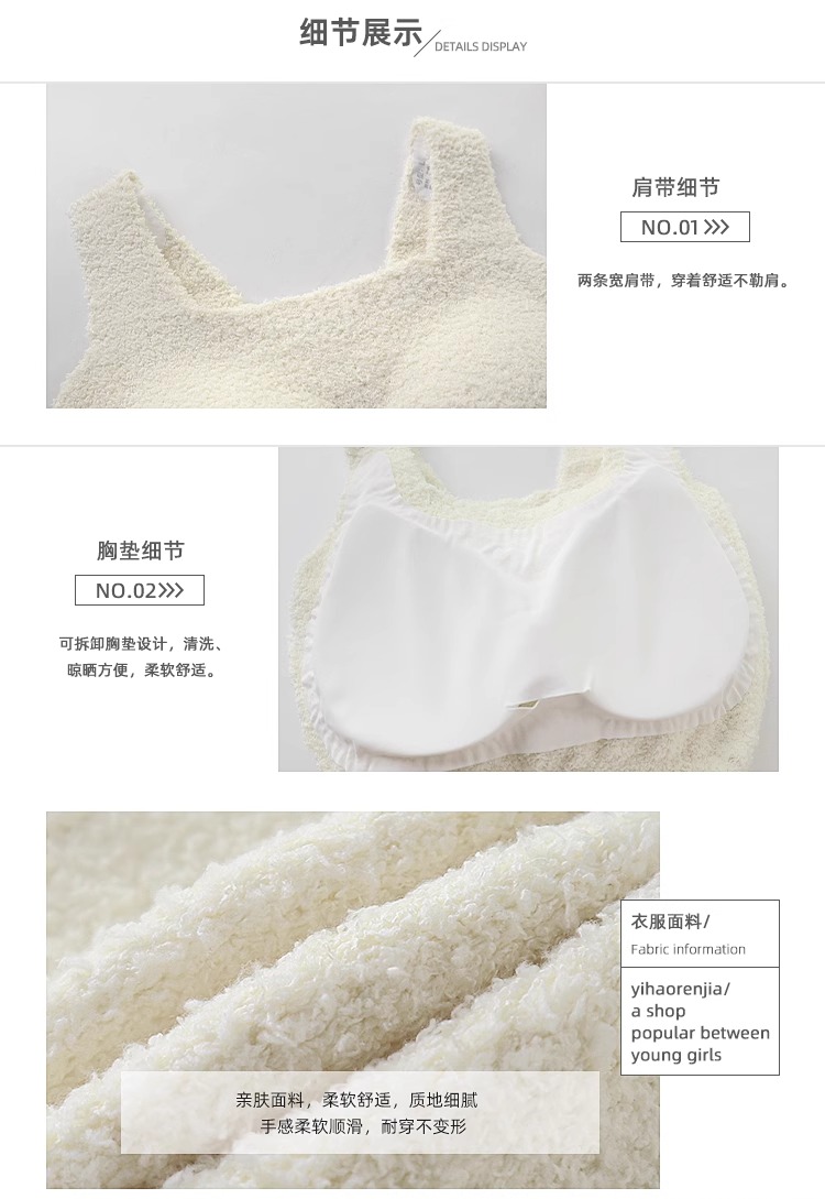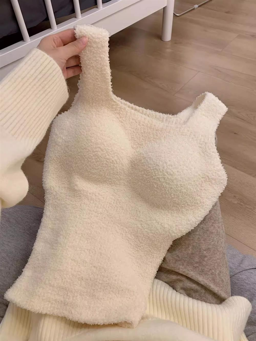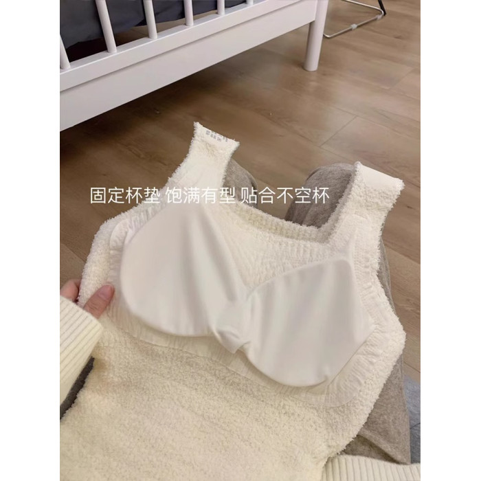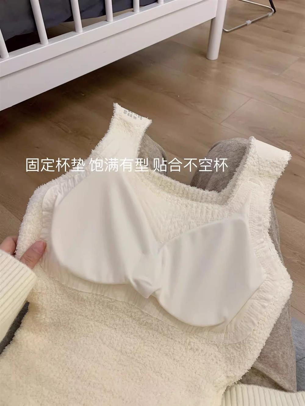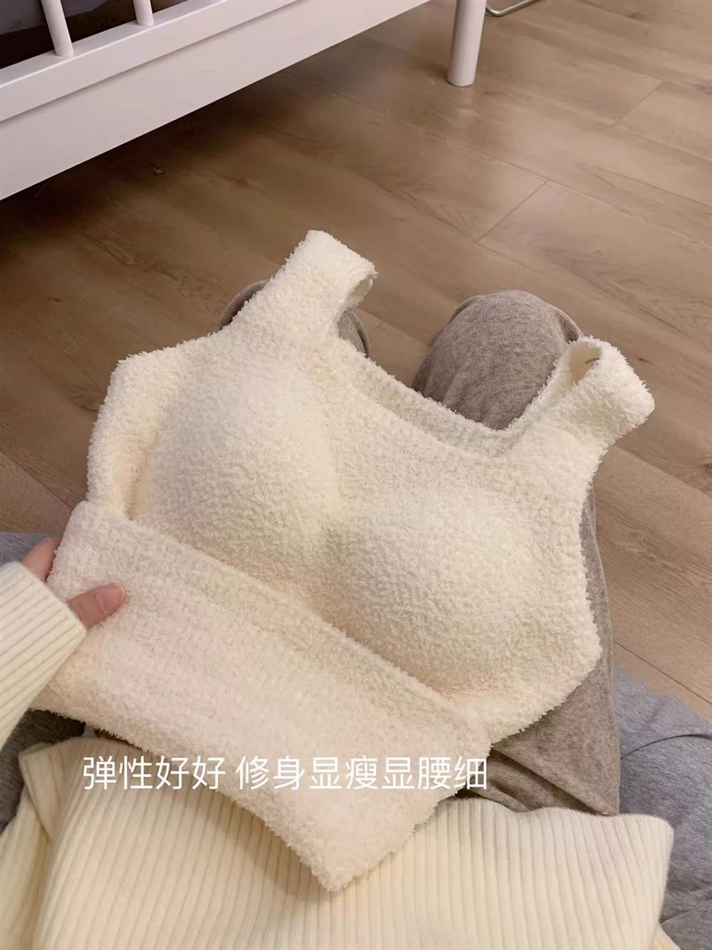 帶胸墊毛絨保暖背心秋冬免穿文胸加絨羊羔絨打底衫一體式內搭上衣