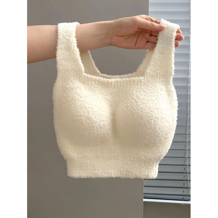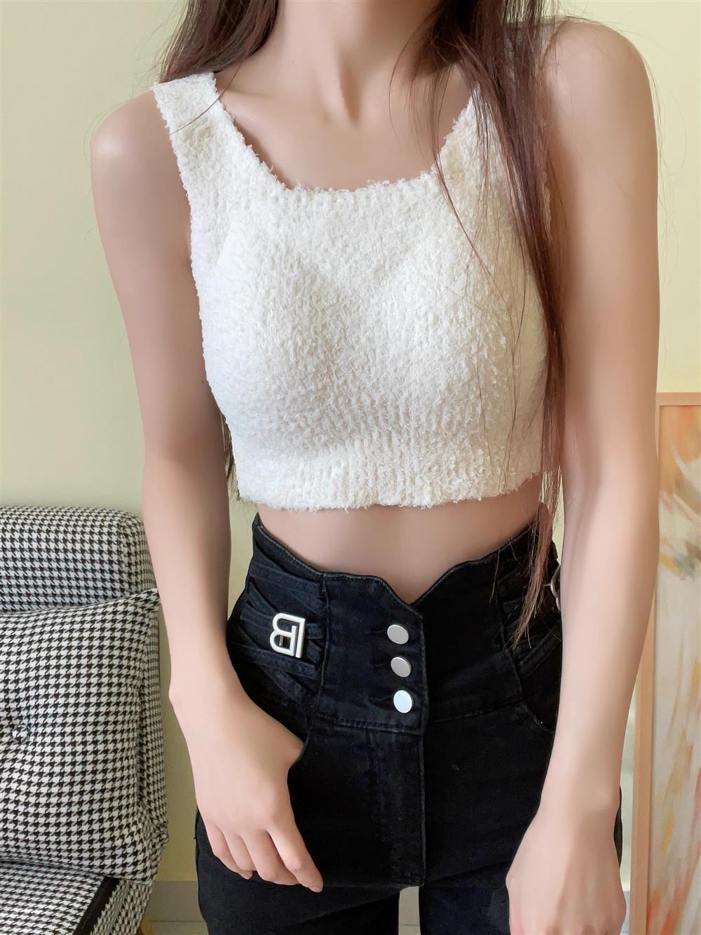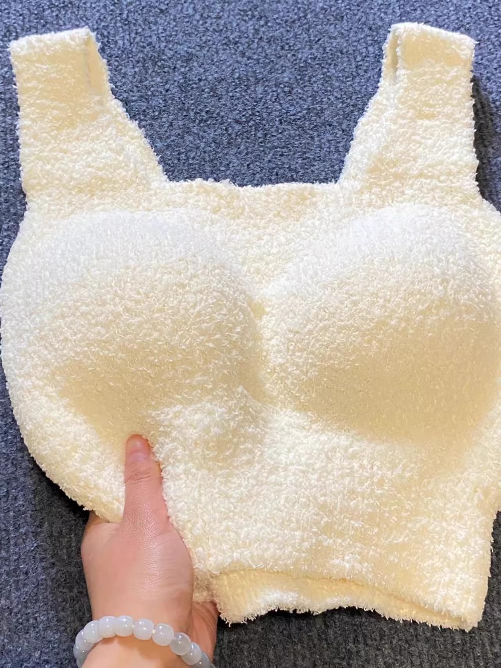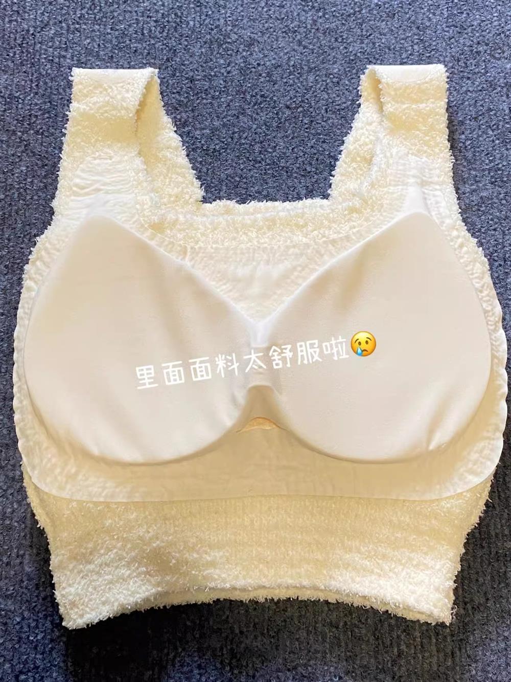 帶胸墊毛絨保暖背心秋冬免穿文胸加絨羊羔絨打底衫一體式內搭上衣