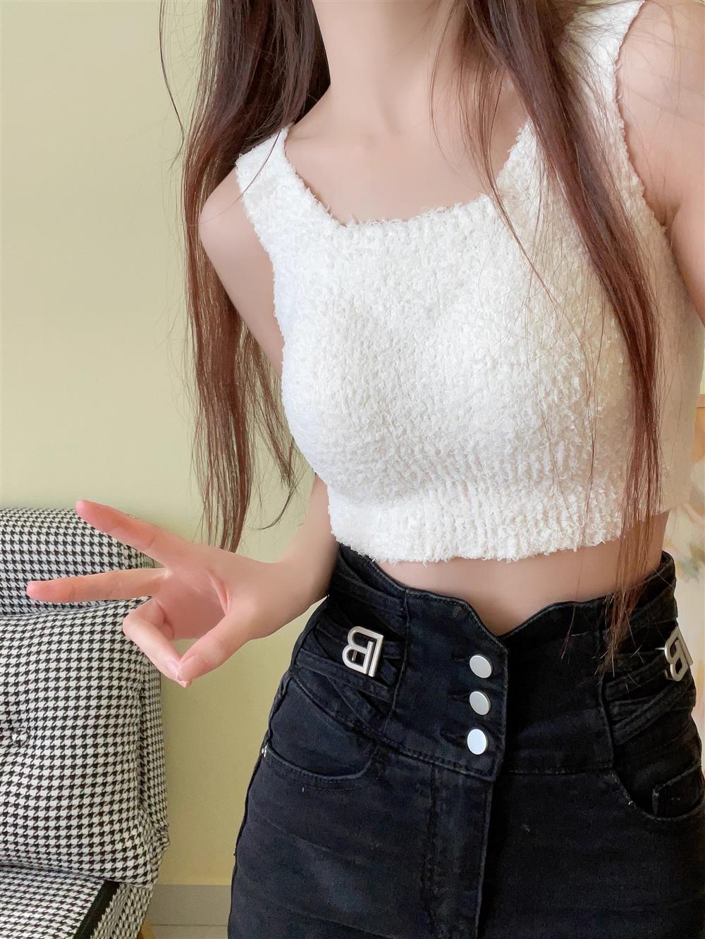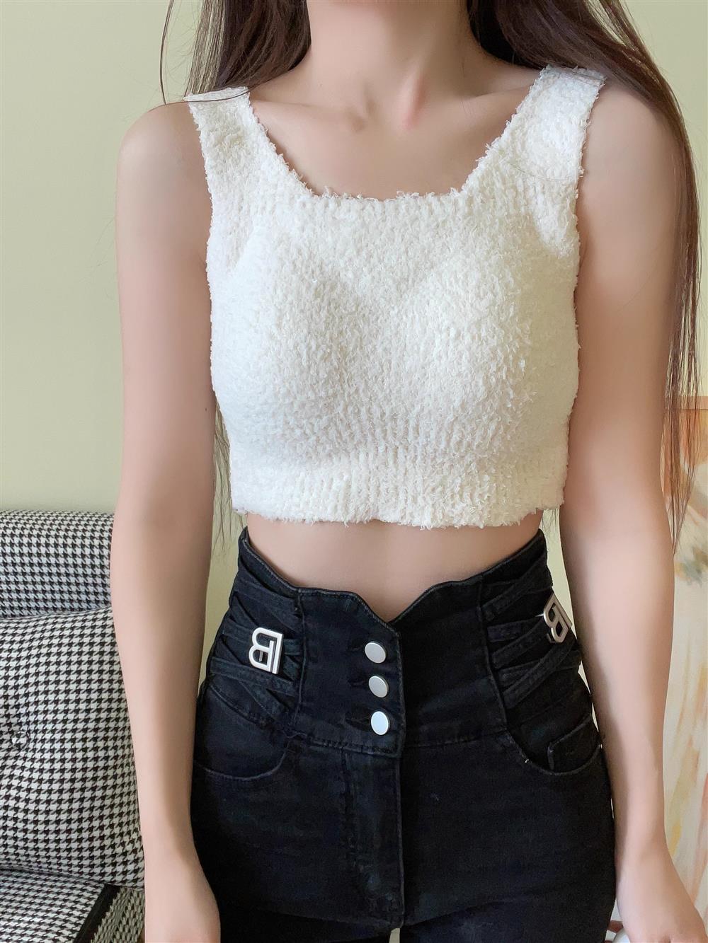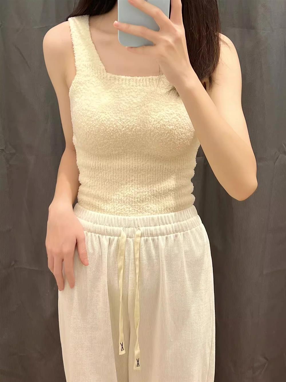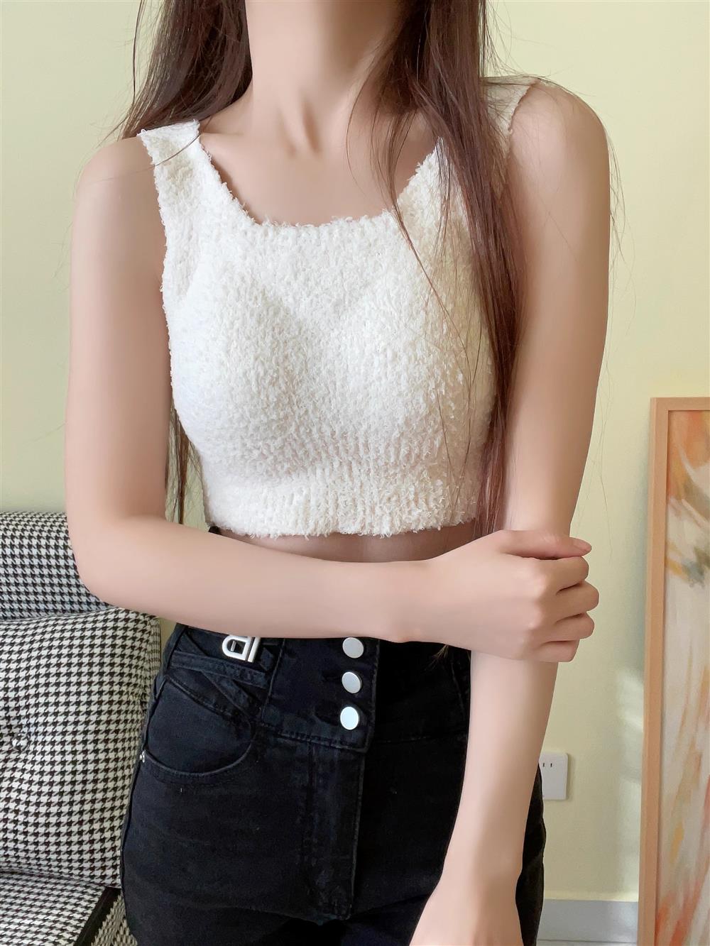 帶胸墊毛絨保暖背心秋冬免穿文胸加絨羊羔絨打底衫一體式內搭上衣
