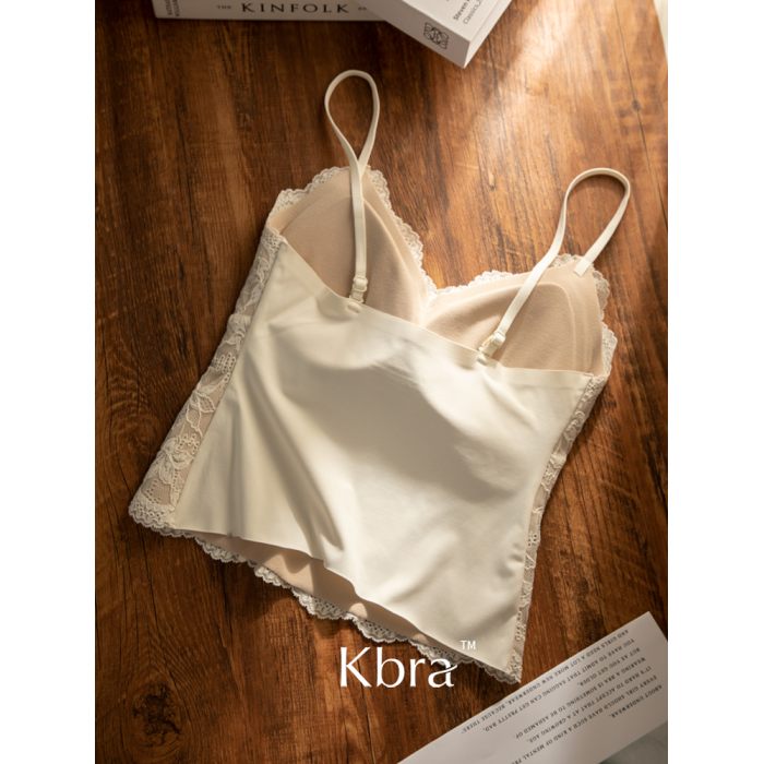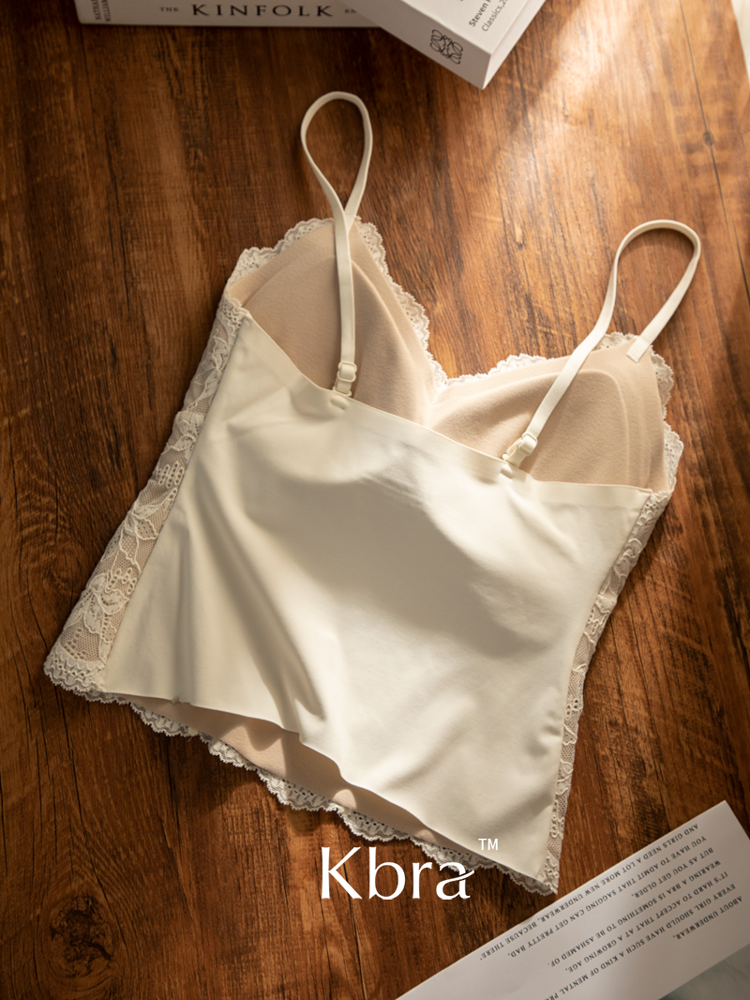 Kbra法式蕾絲磨毛加薄絨吊帶背心女冬保暖帶胸墊內搭一體打底上衣