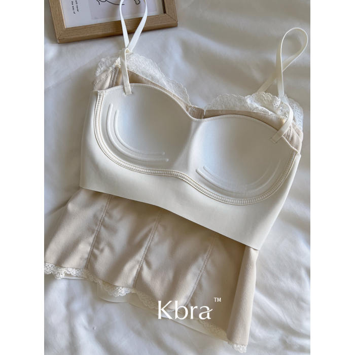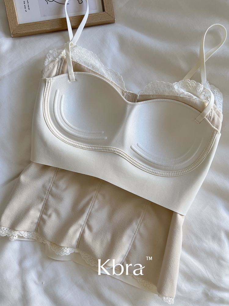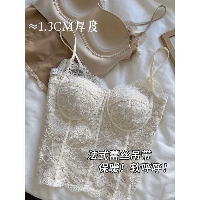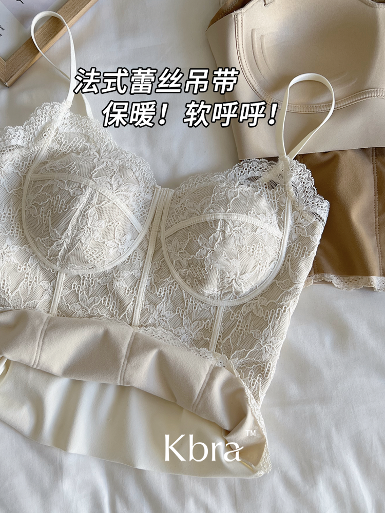 Kbra秋冬加絨蕾絲魚骨吊帶背心女2025新款保暖帶胸墊內搭外穿打底