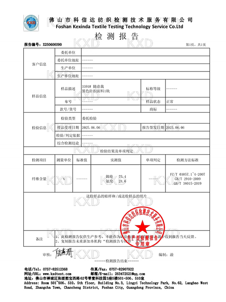 面料:46%棉  44%錦綸 10%氨綸