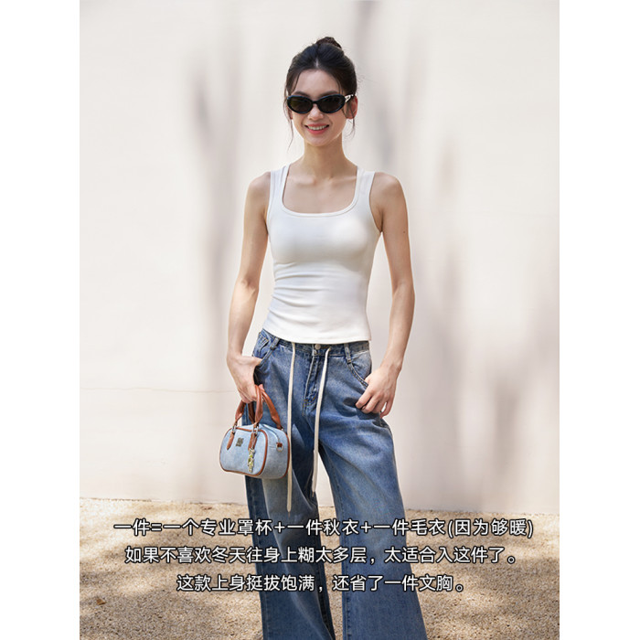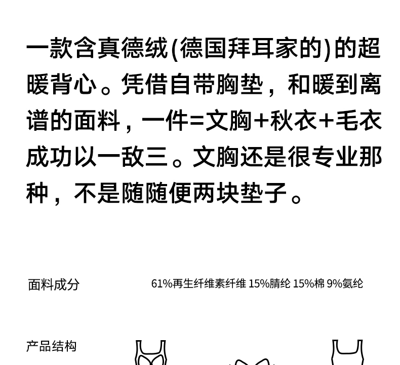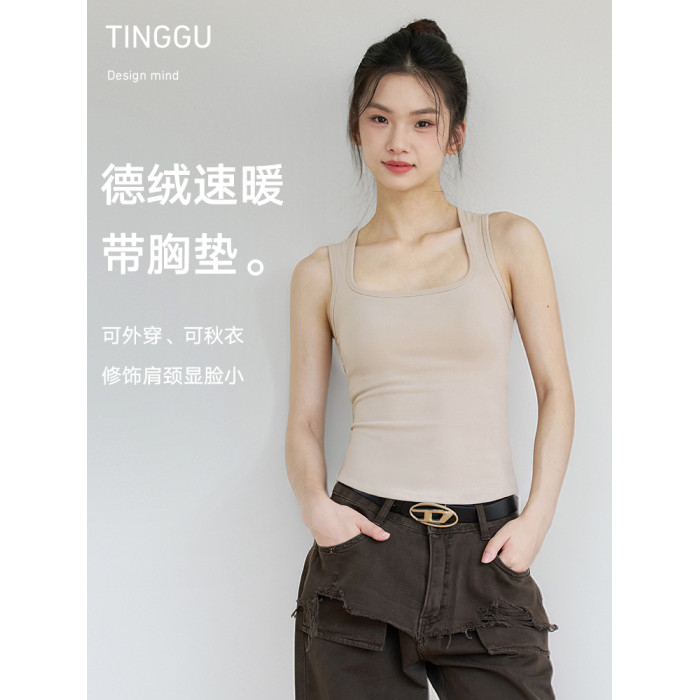 德絨保暖背心帶罩杯胸墊一體秋衣女上衣內搭秋冬加絨打底保暖內衣