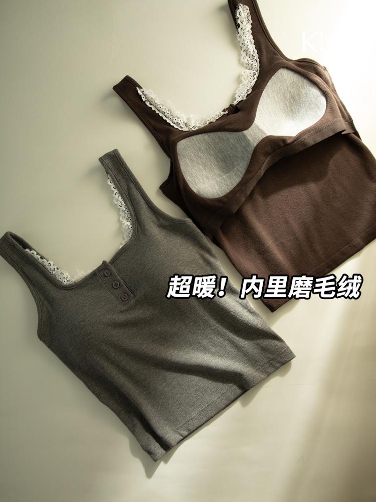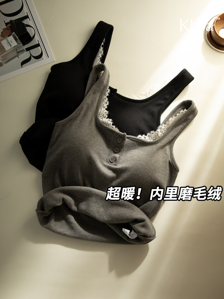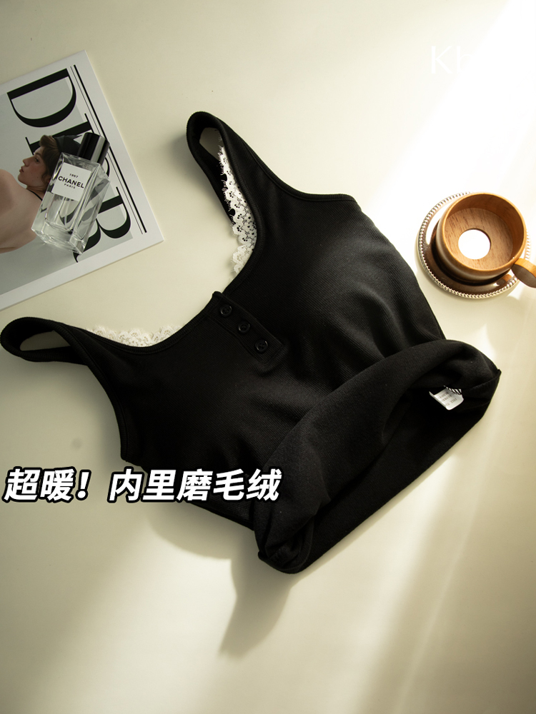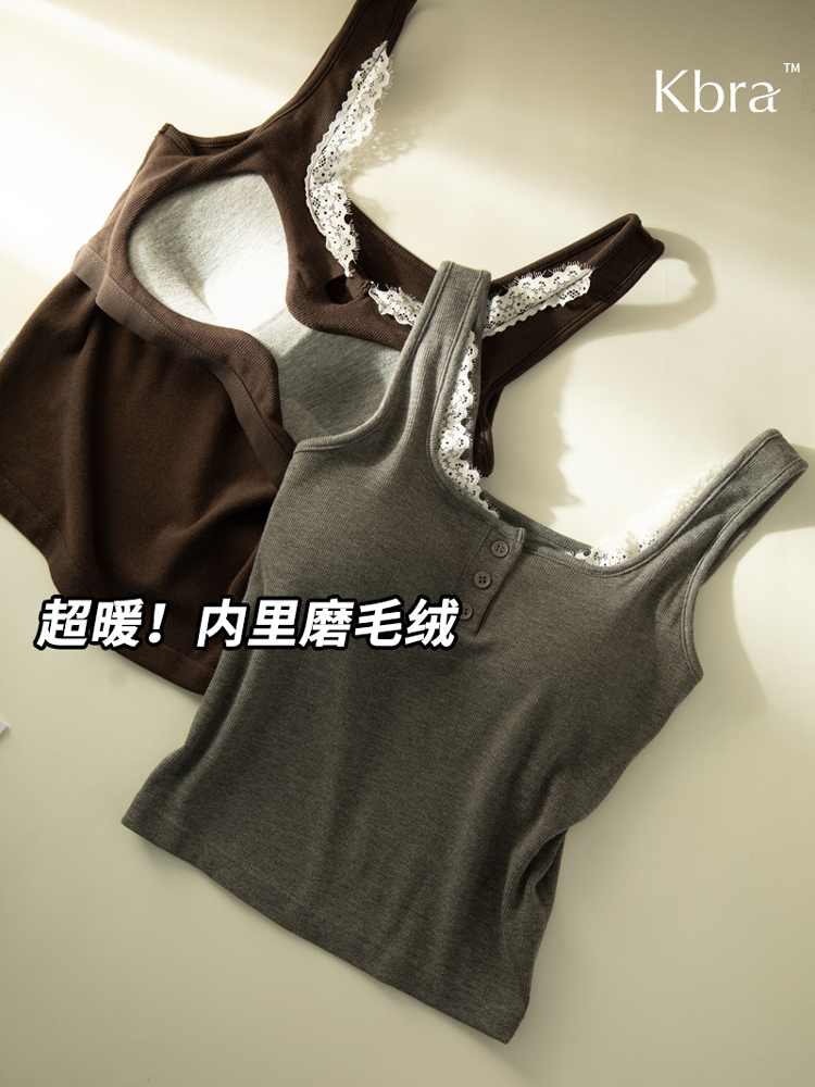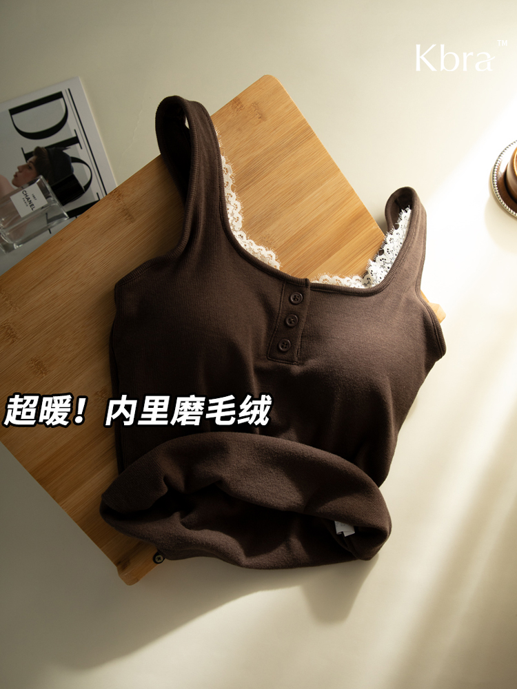 Kbra超暖!磨毛絨保暖吊帶背心女秋冬季帶胸墊自髮熱打底上衣內搭