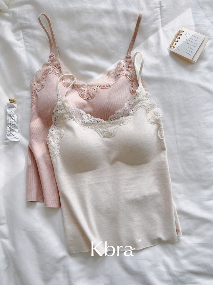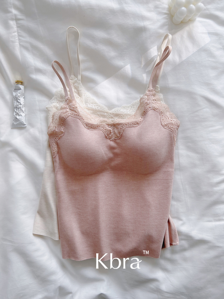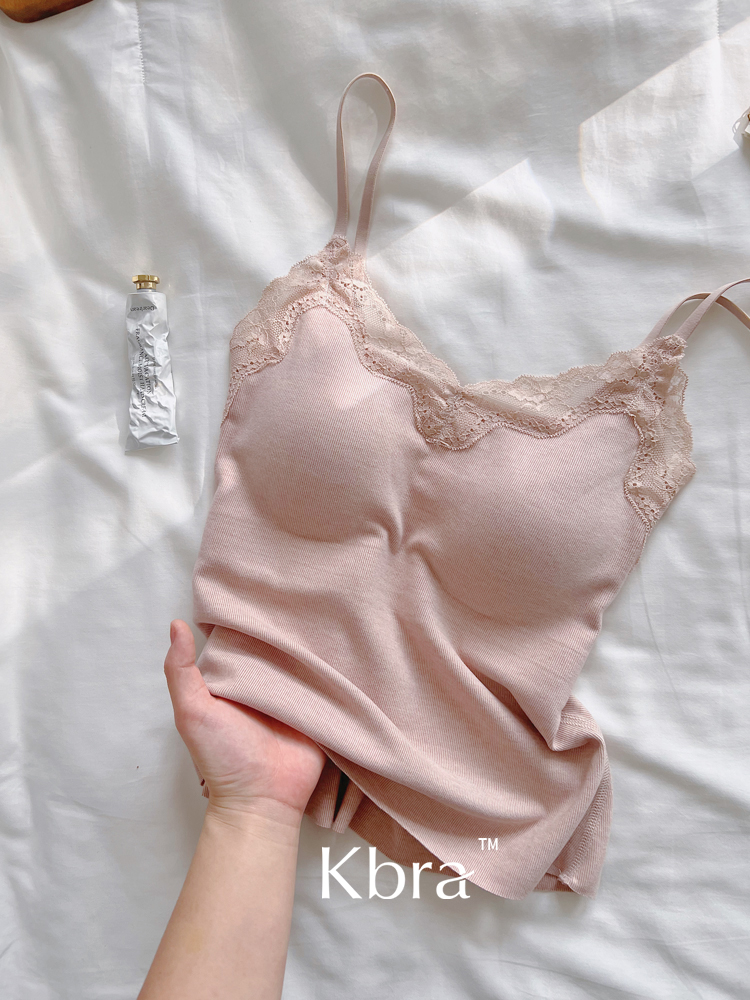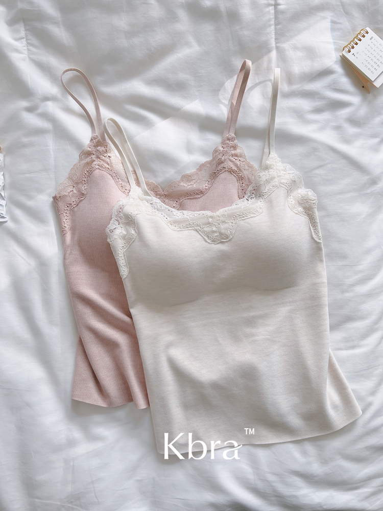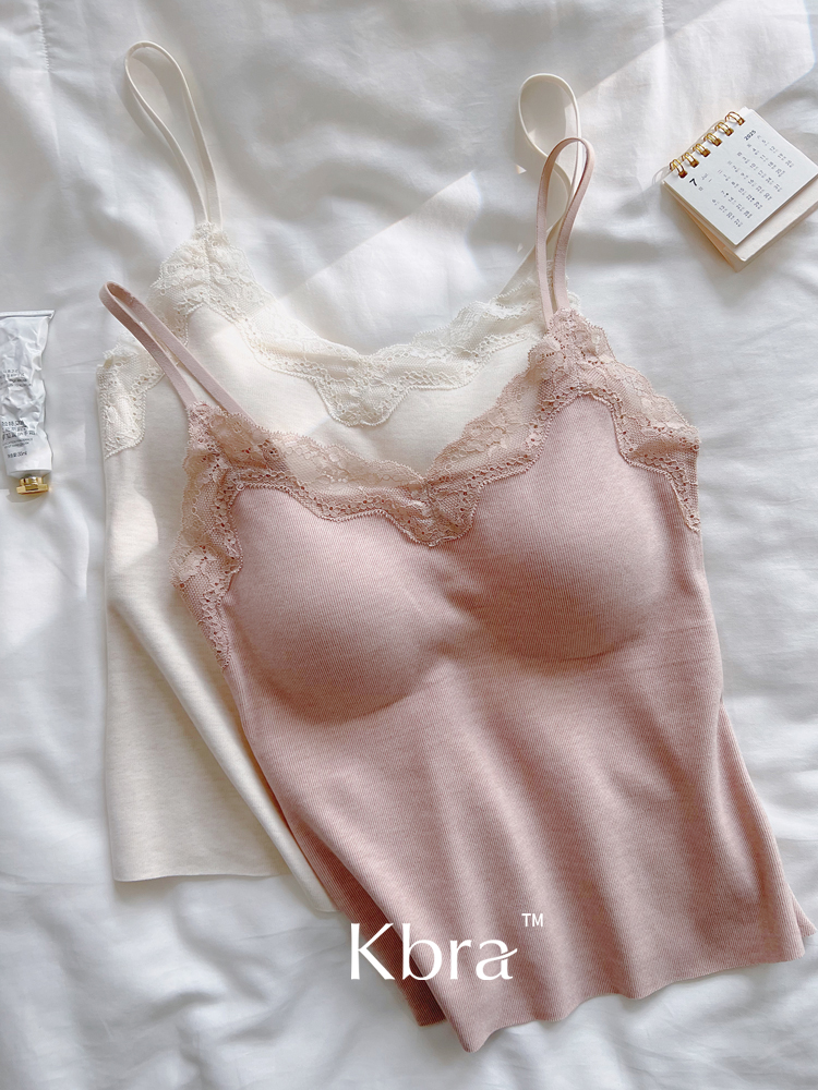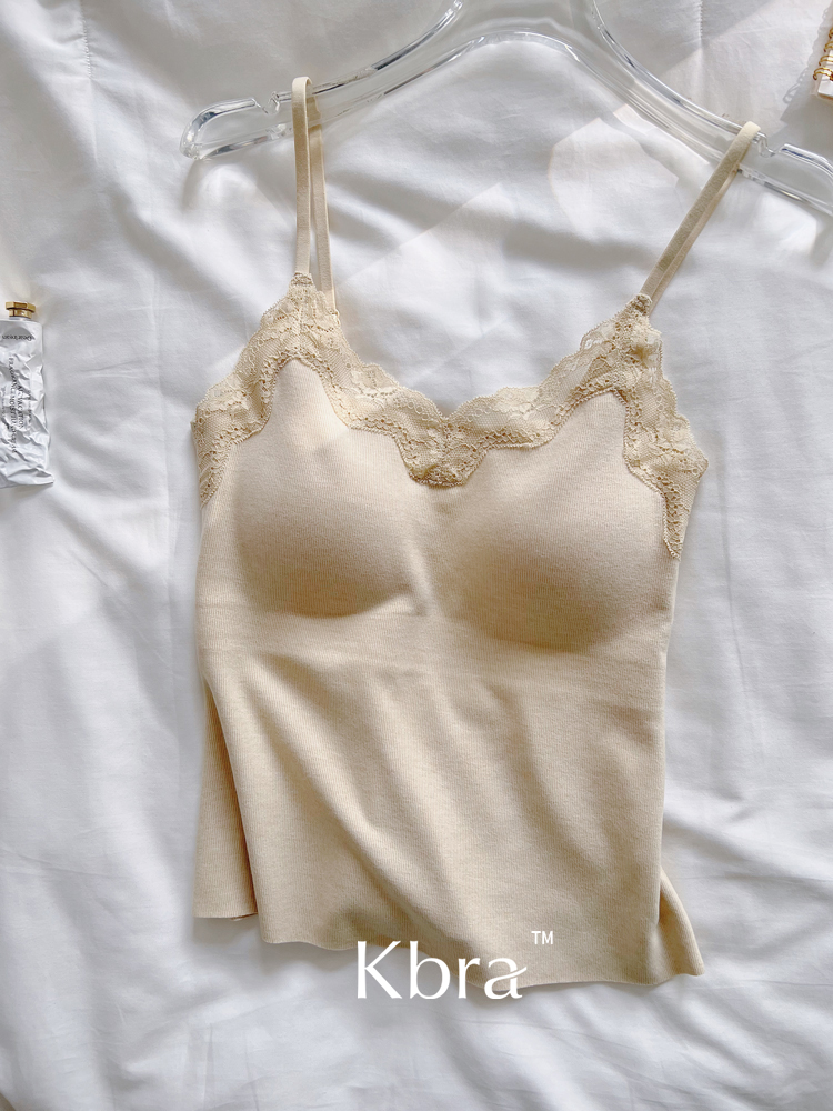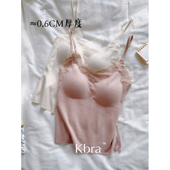 Kbra蕾絲v領保暖背心女2025新款冬季微磨毛自髮熱帶胸墊內搭上衣