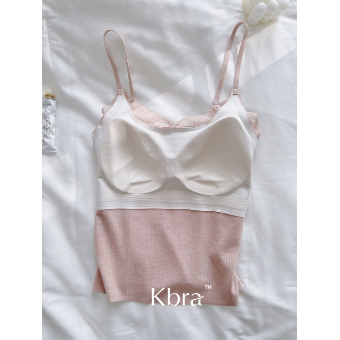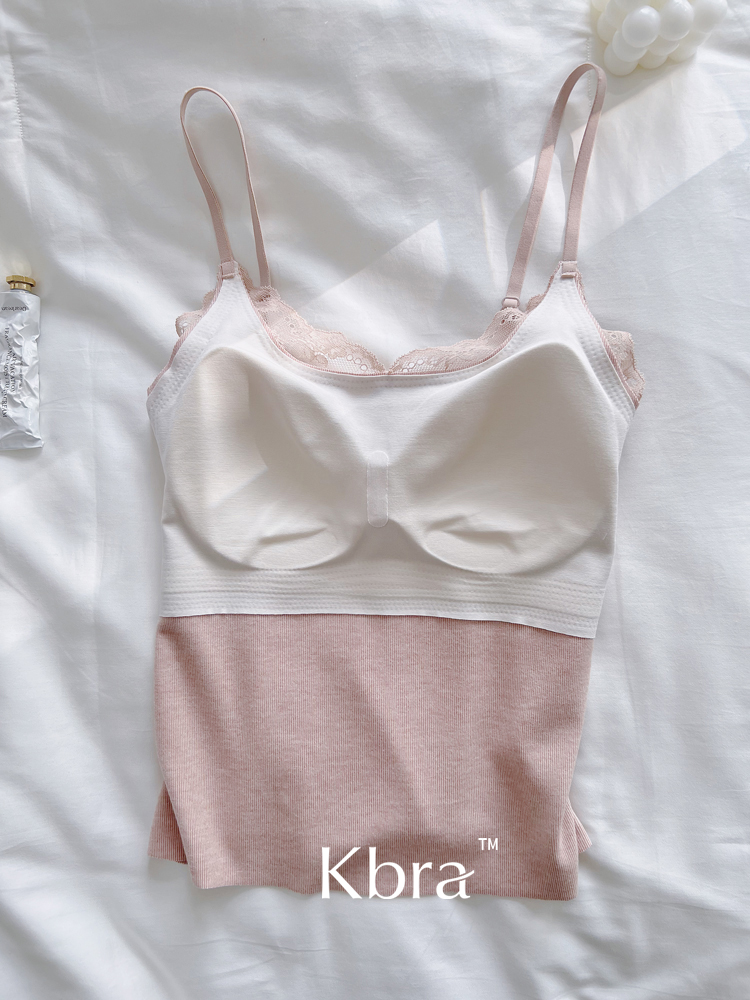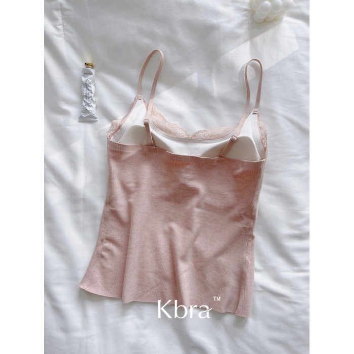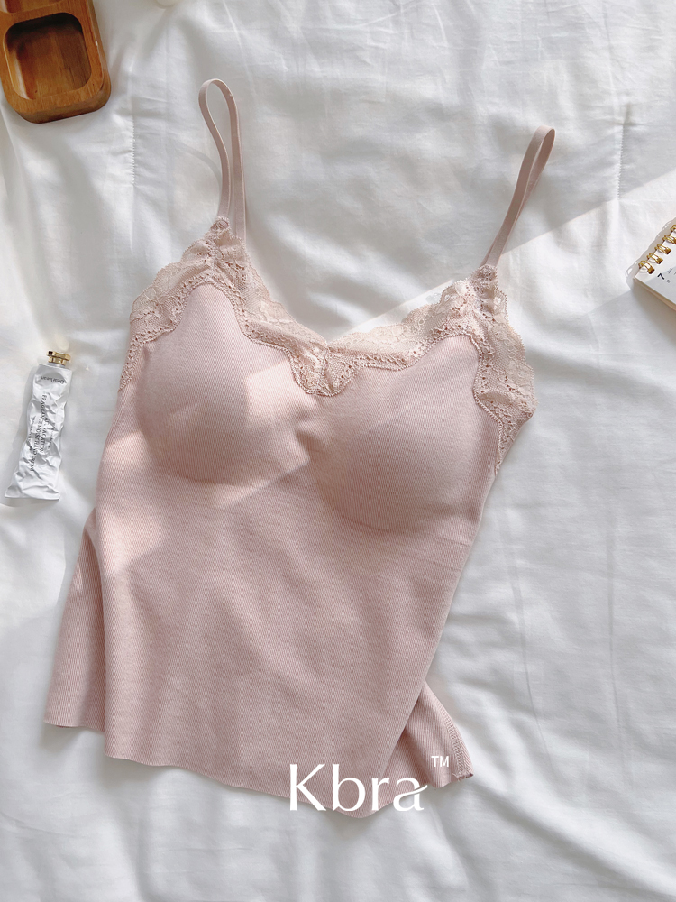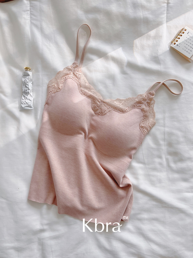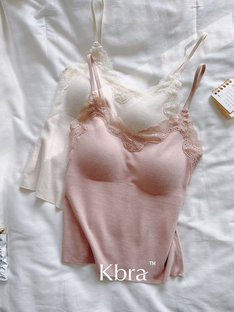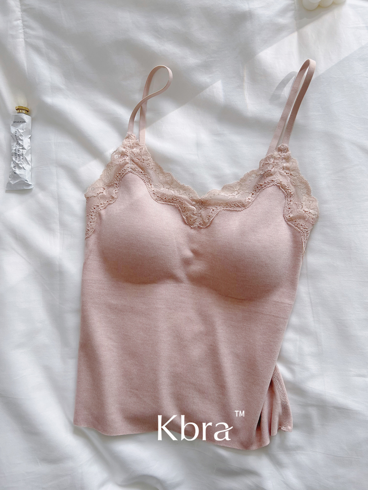 Kbra蕾絲v領保暖背心女2025新款冬季微磨毛自髮熱帶胸墊內搭上衣