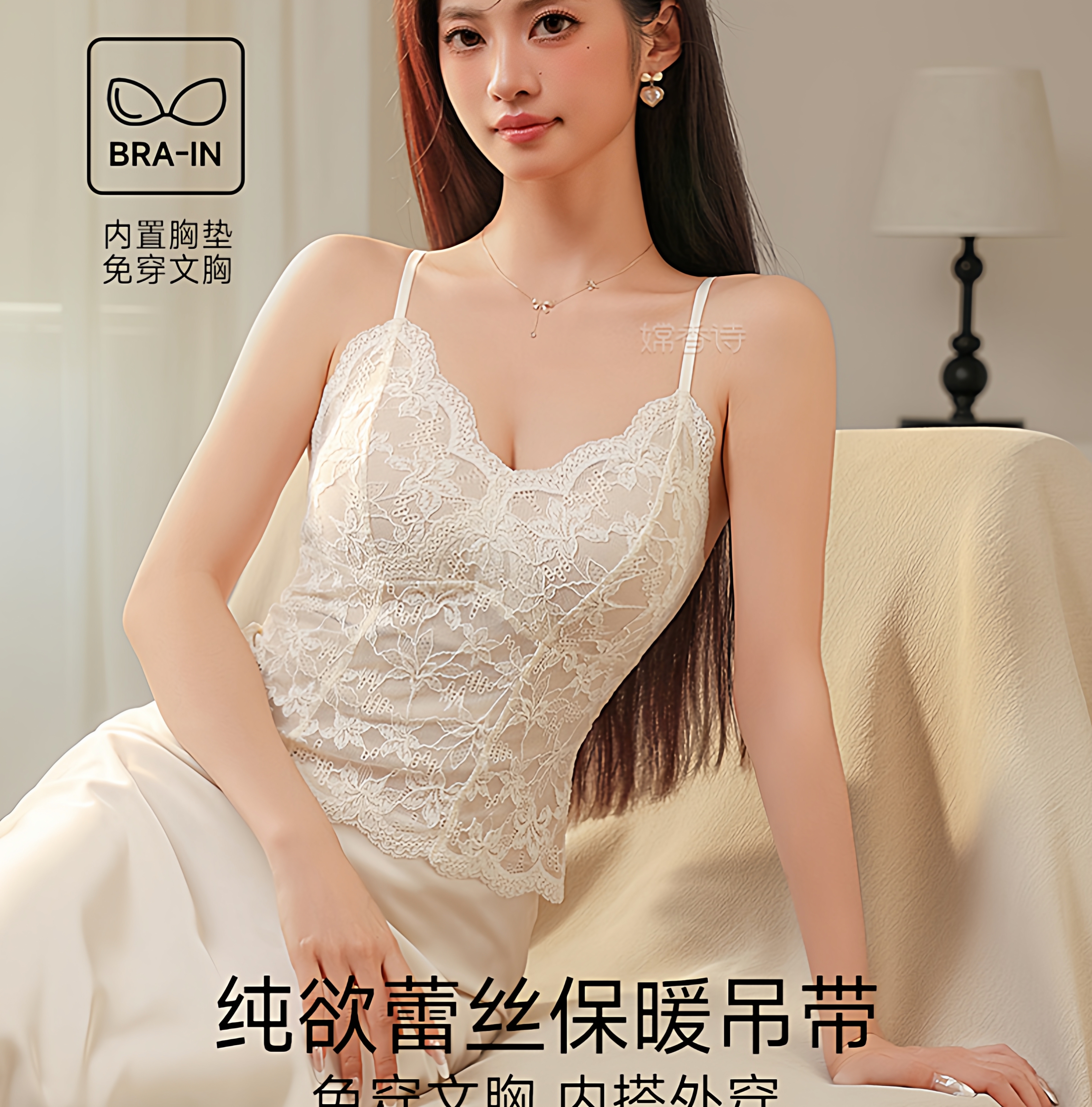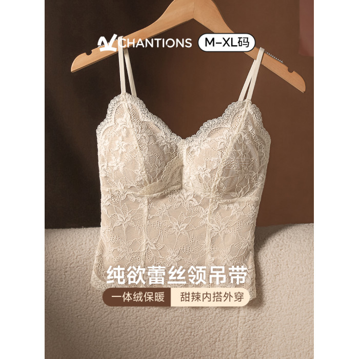 蕾絲吊帶背心女保暖內衣帶胸墊一體2025新款秋冬內搭可外穿打底衫