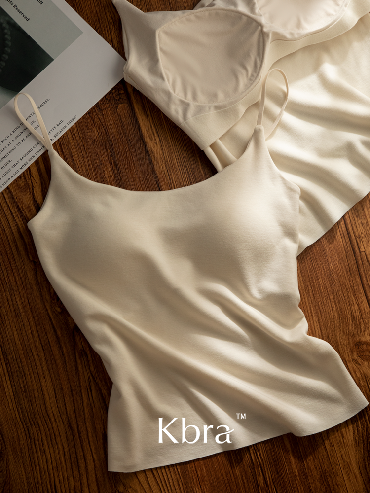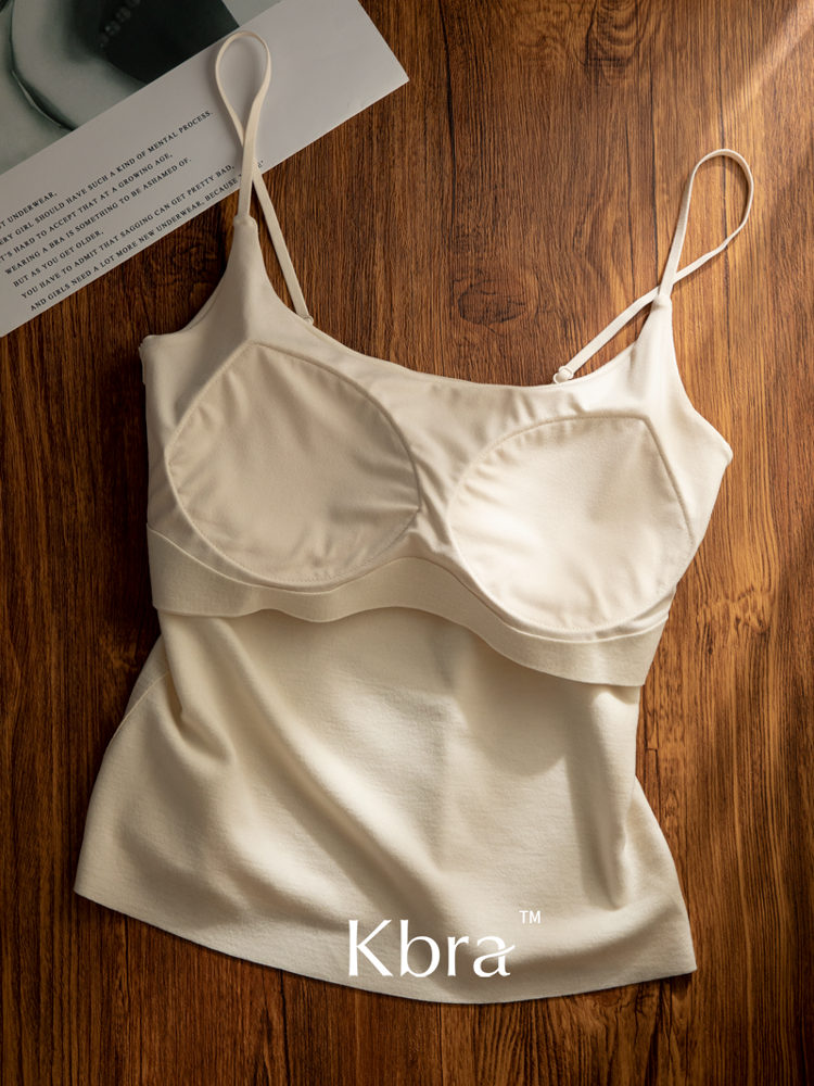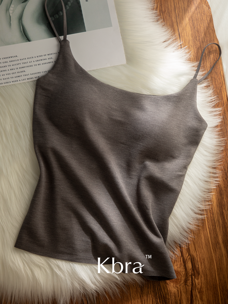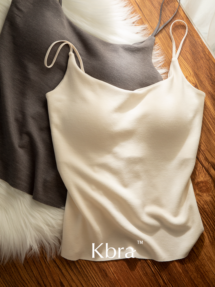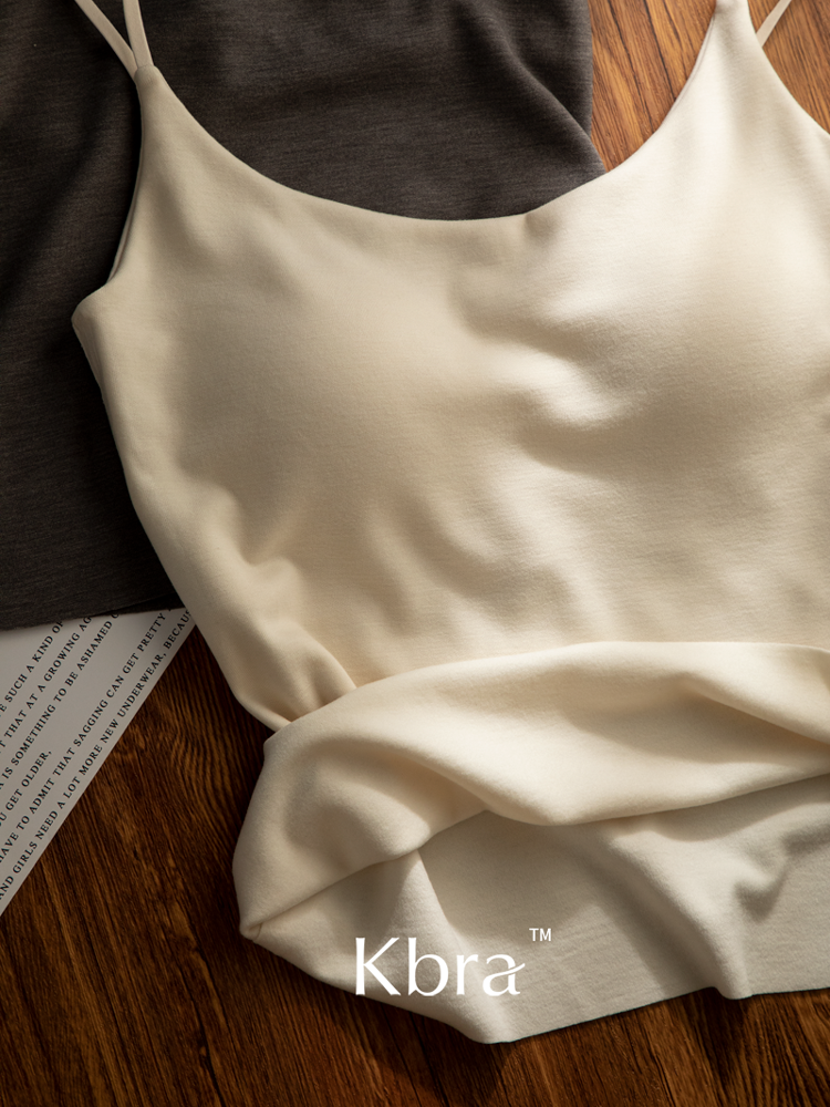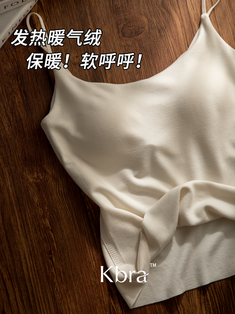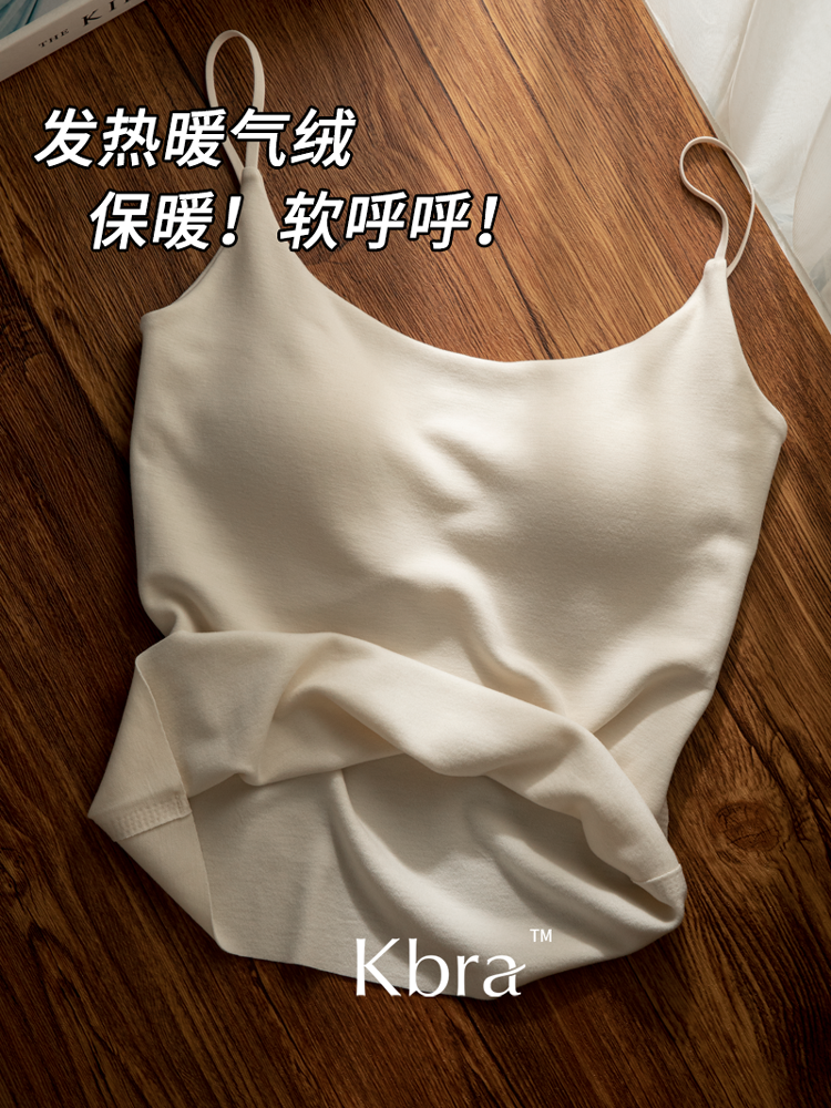 Kbra磨毛保暖吊帶背心女士2025新款冬季加薄絨帶胸墊打底內搭上衣