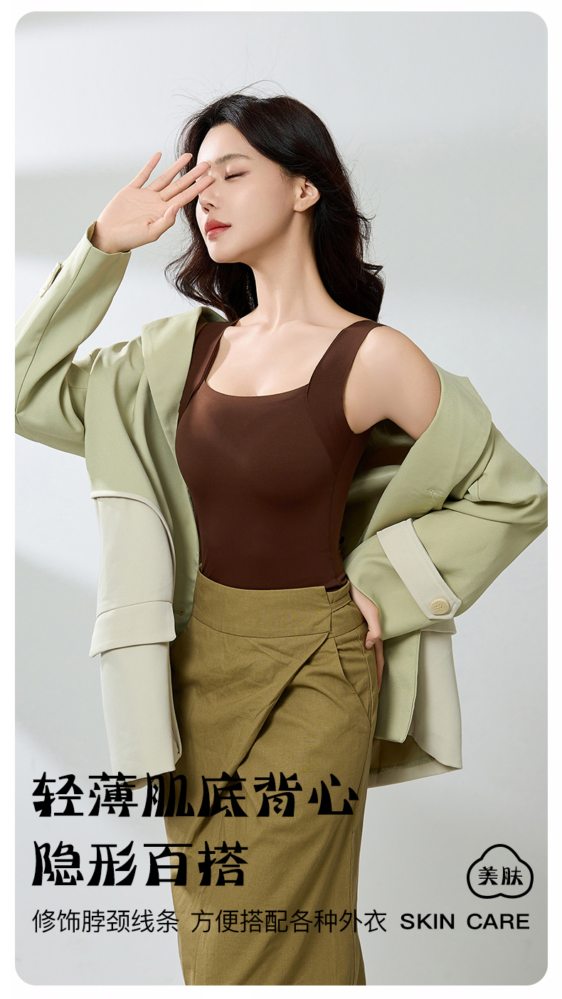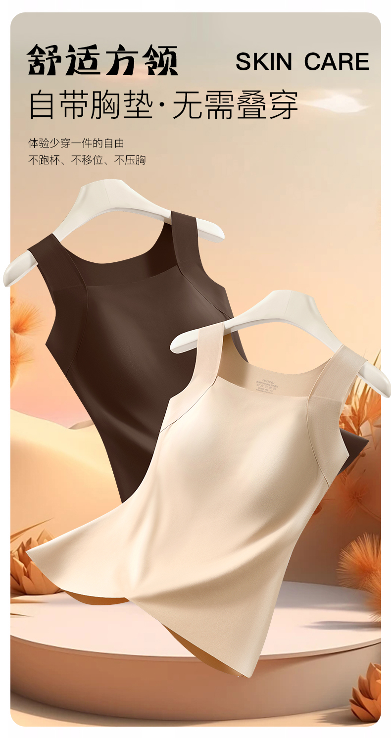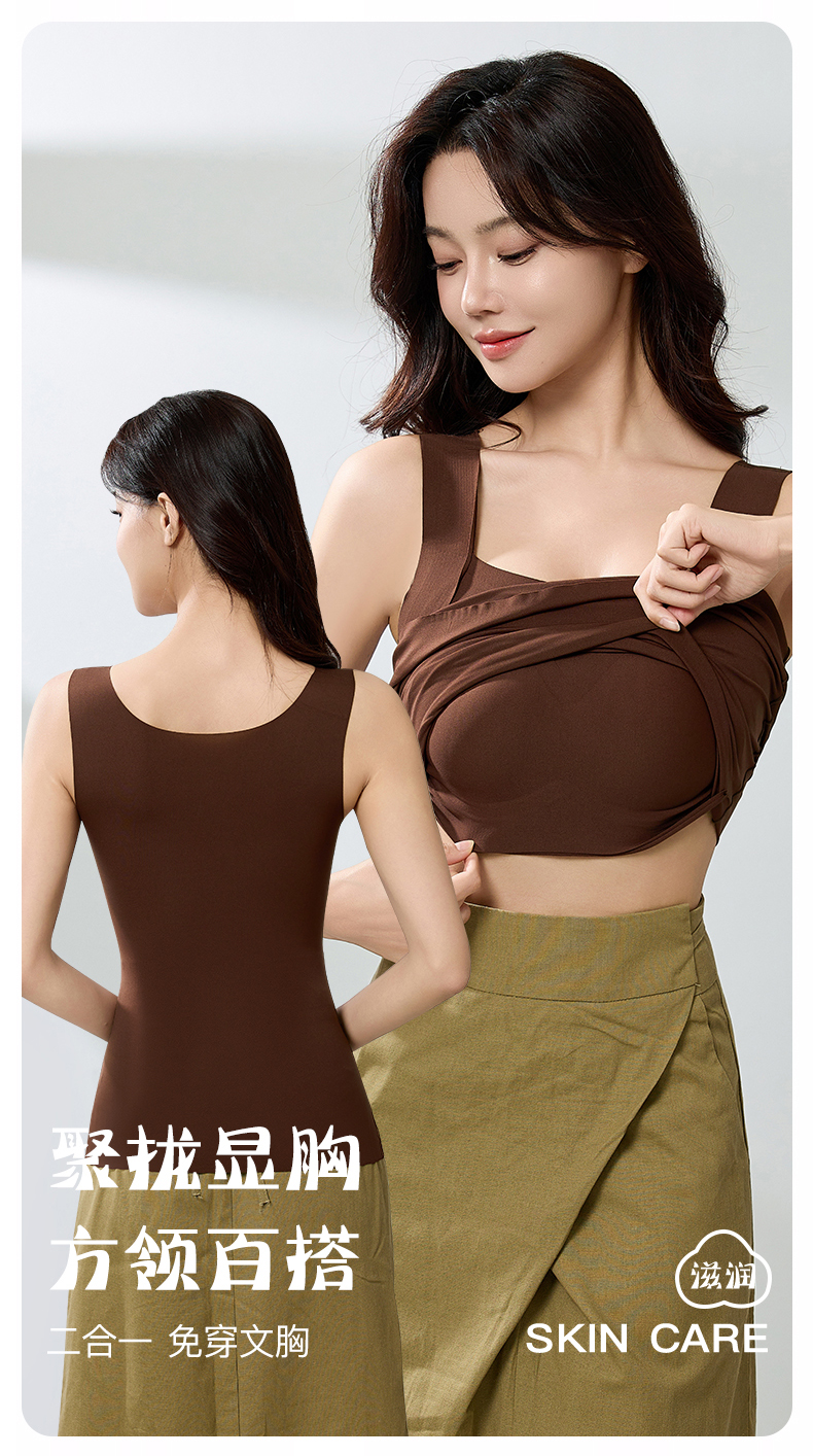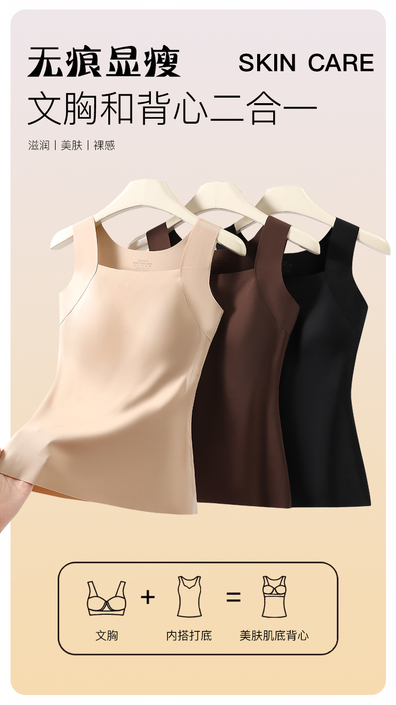 無痕打底內衣吊帶背心女新款文胸一體內搭保暖上衣帶胸墊肌底上衣
