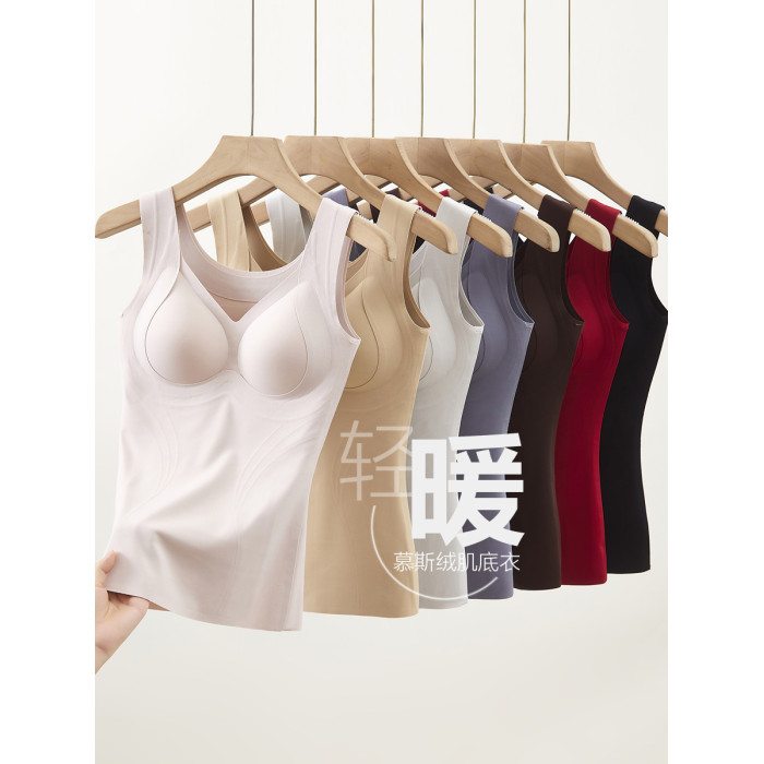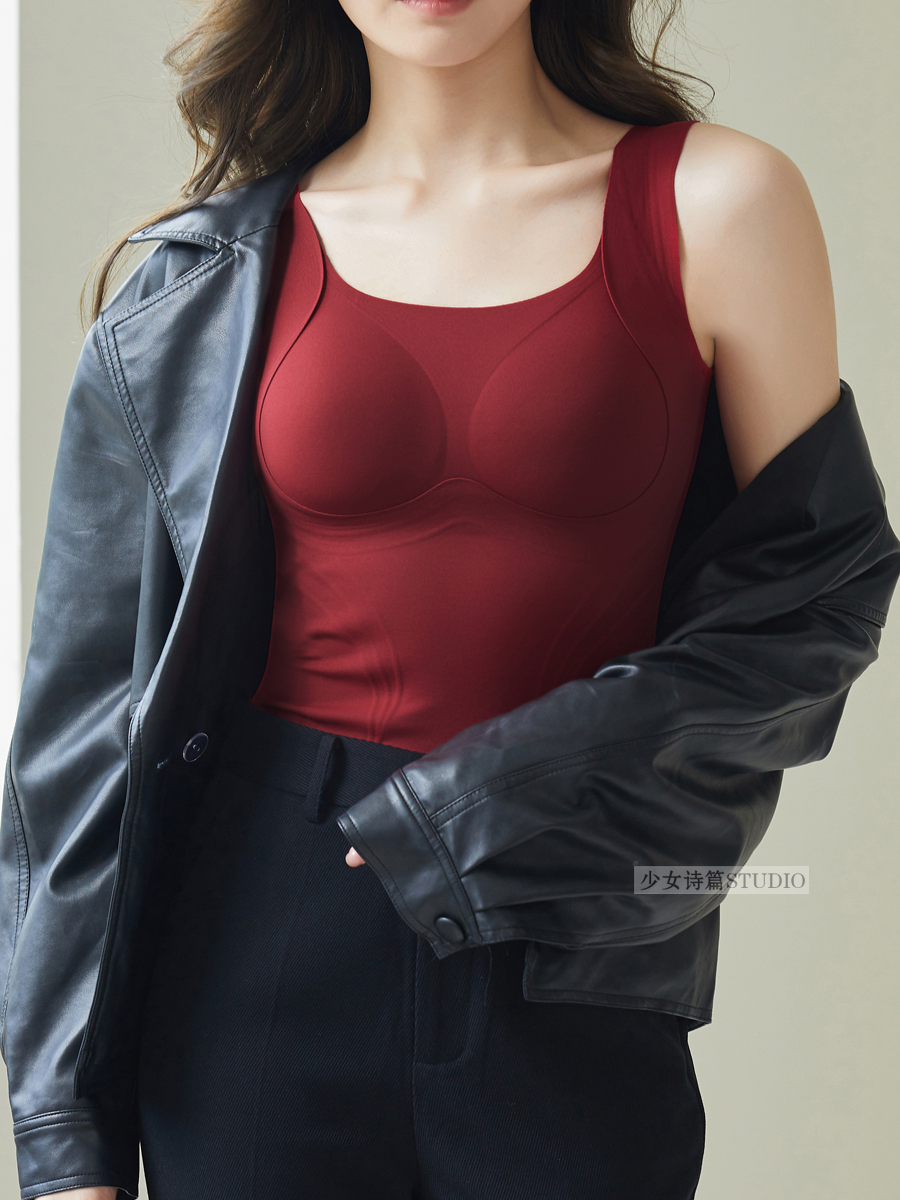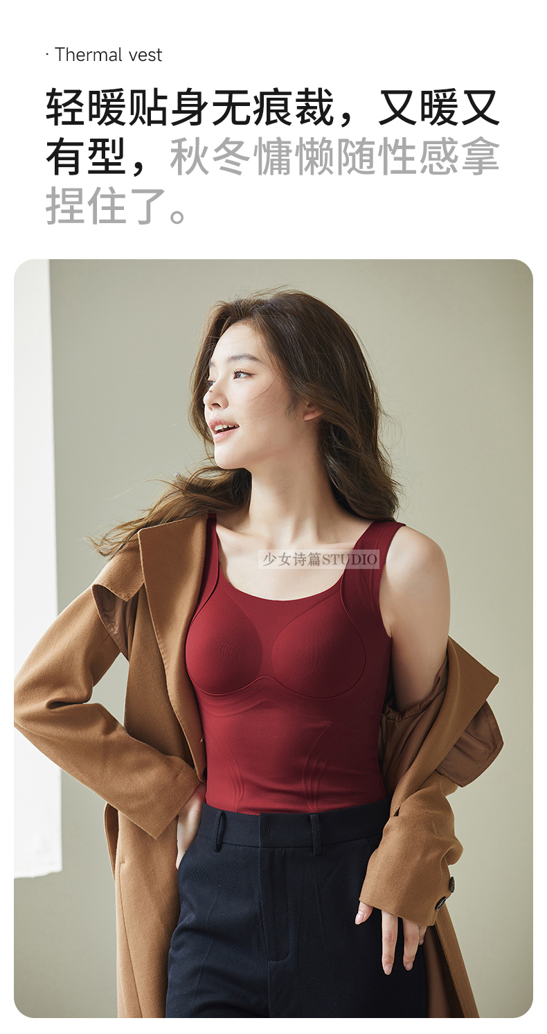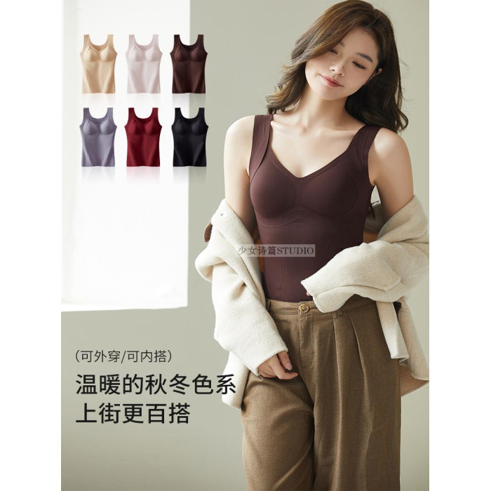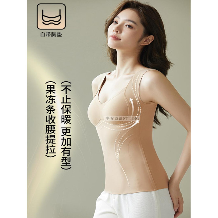 隱形髮熱保暖背心肌底美膚衣自帶胸墊塑身收腹秋冬大碼打底內衣女