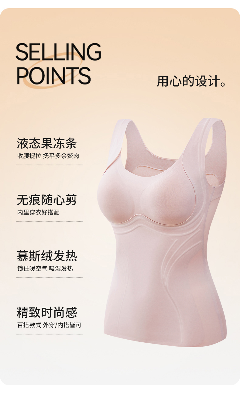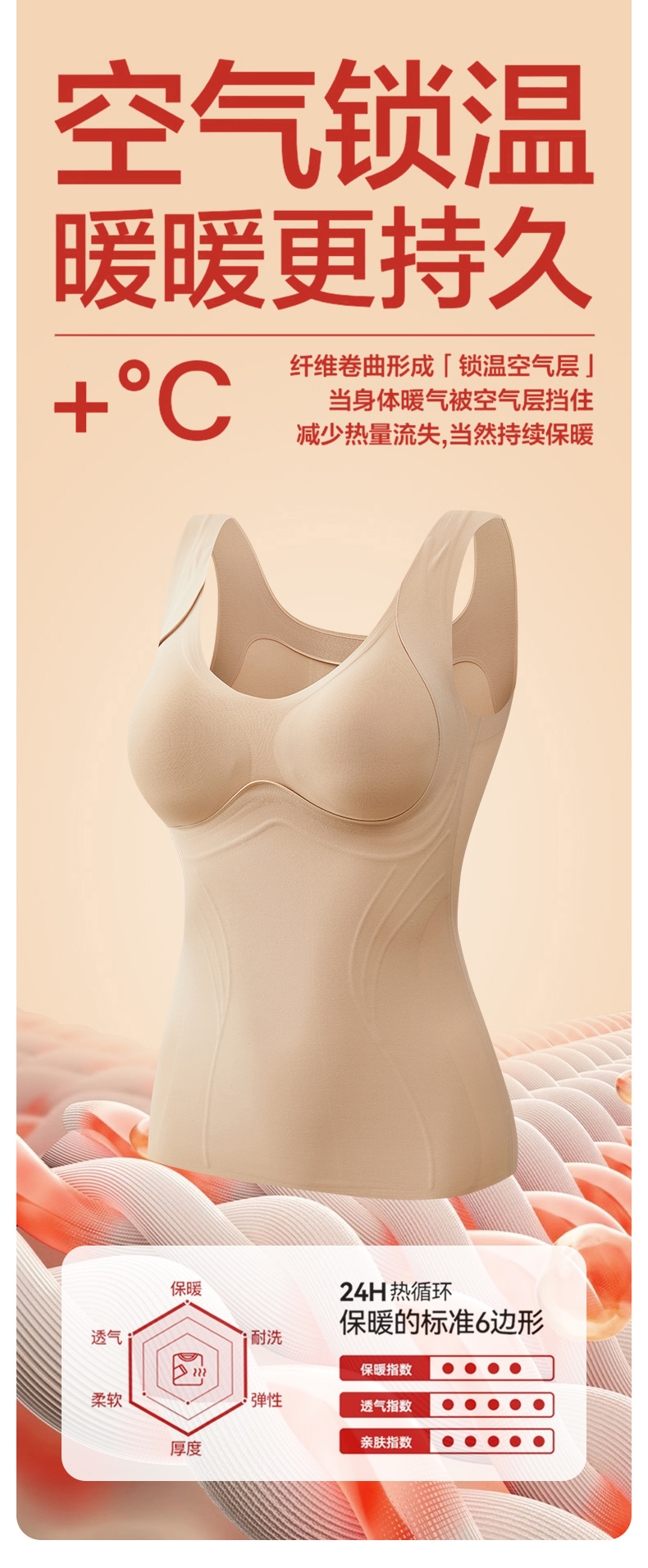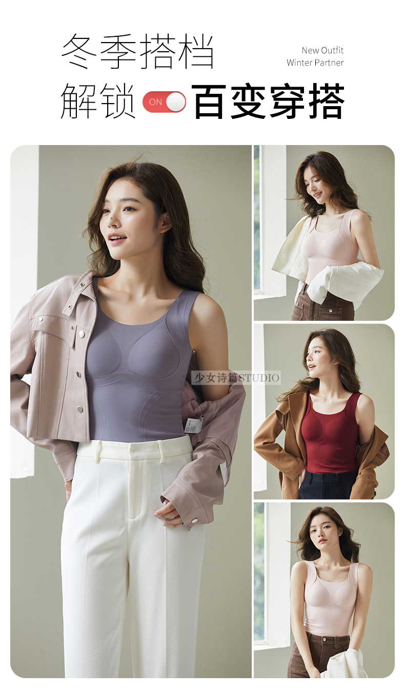隱形髮熱保暖背心肌底美膚衣自帶胸墊塑身收腹秋冬大碼打底內衣女
