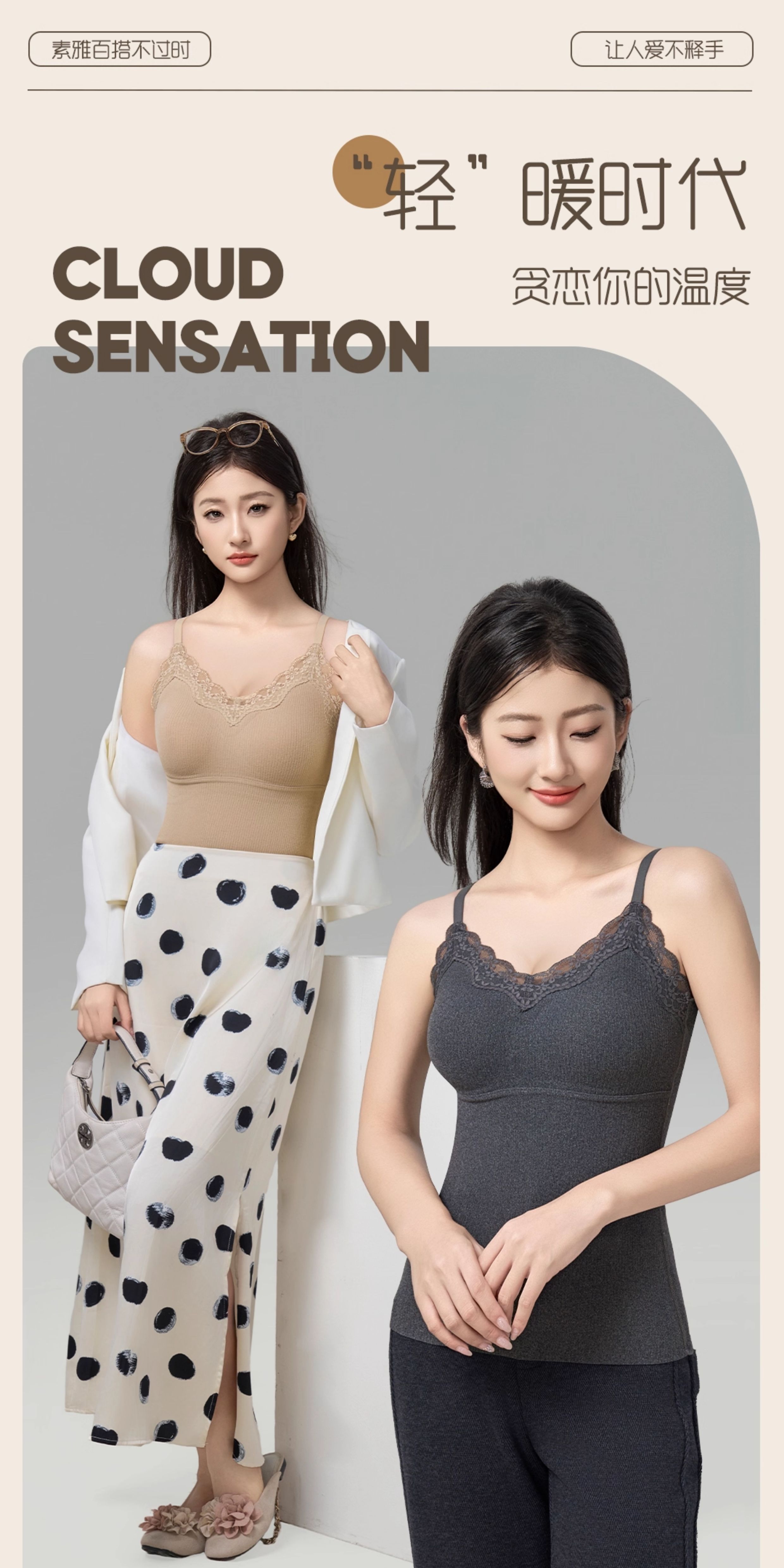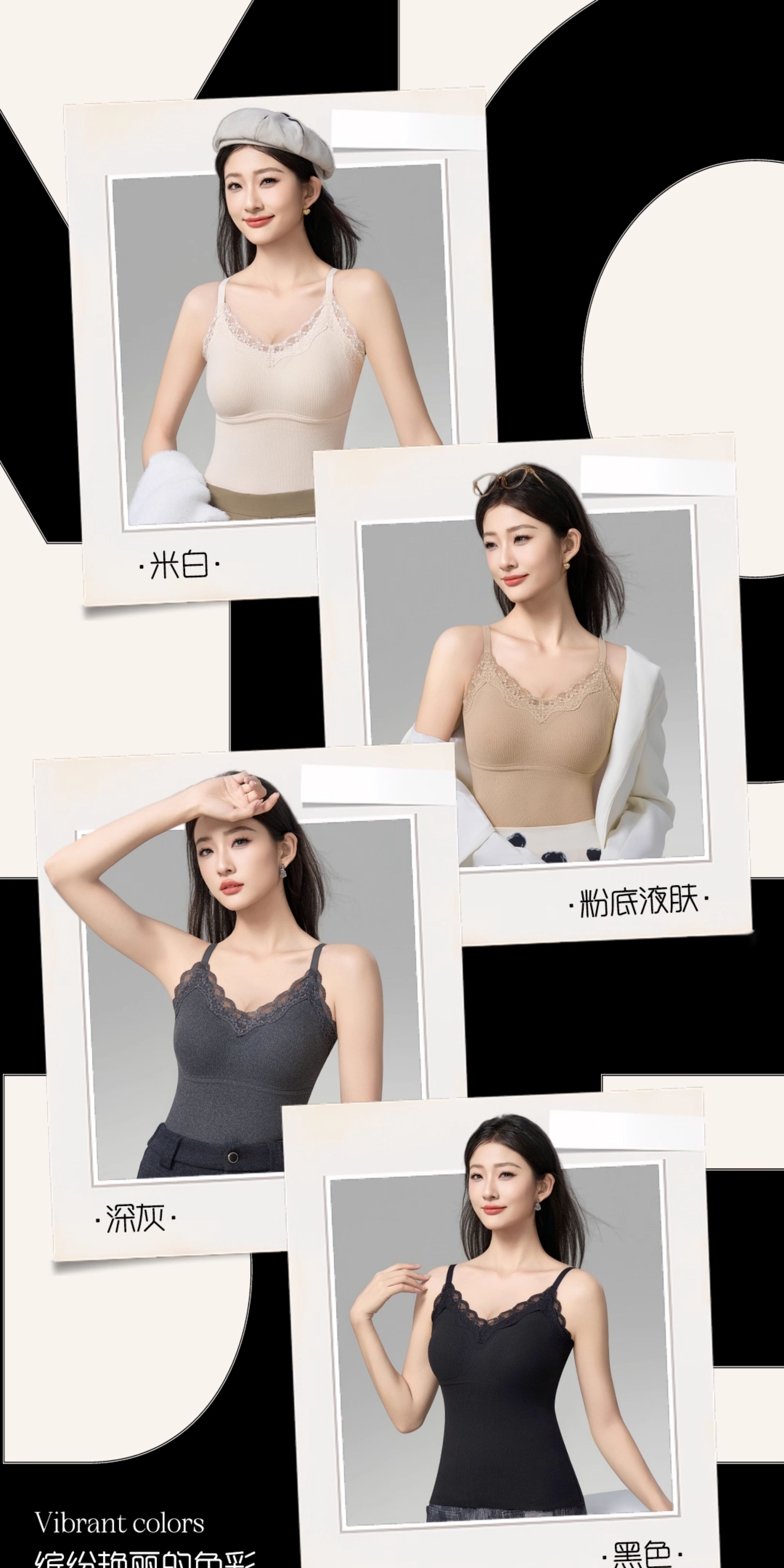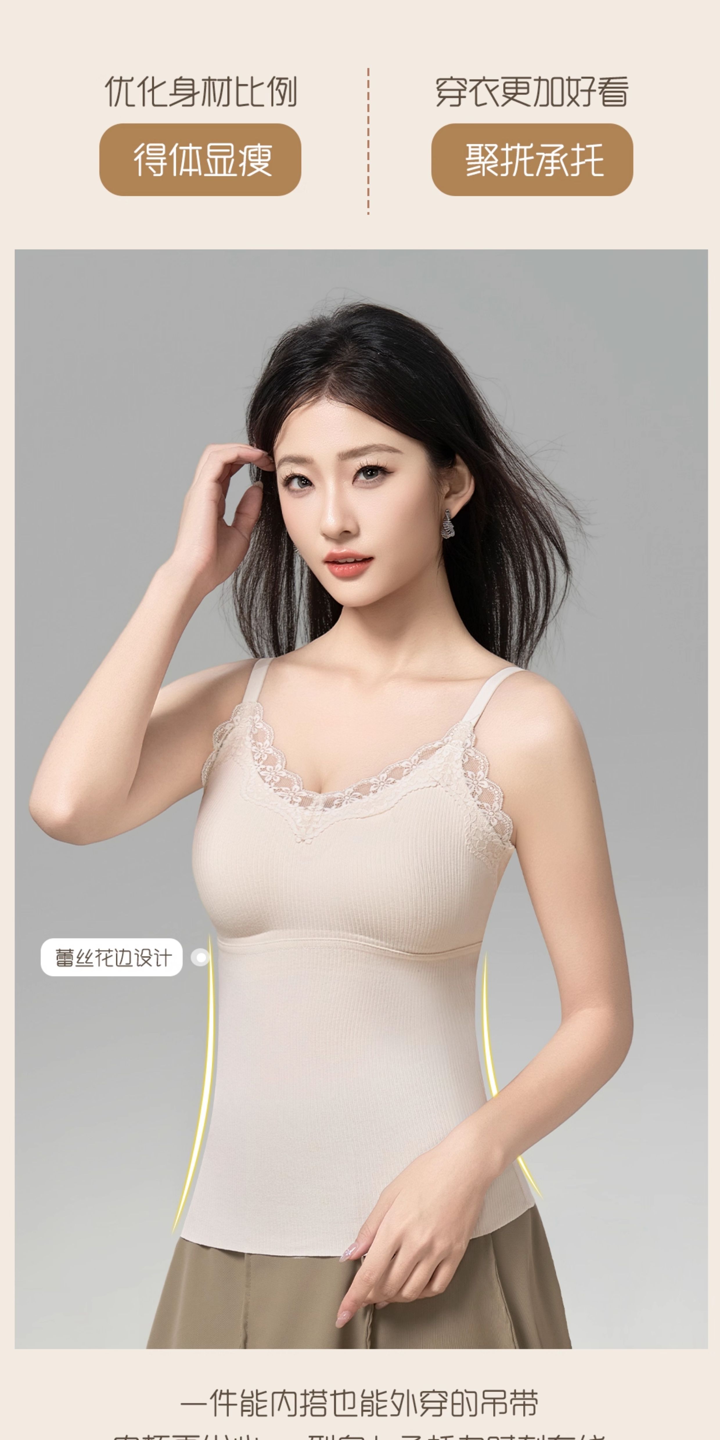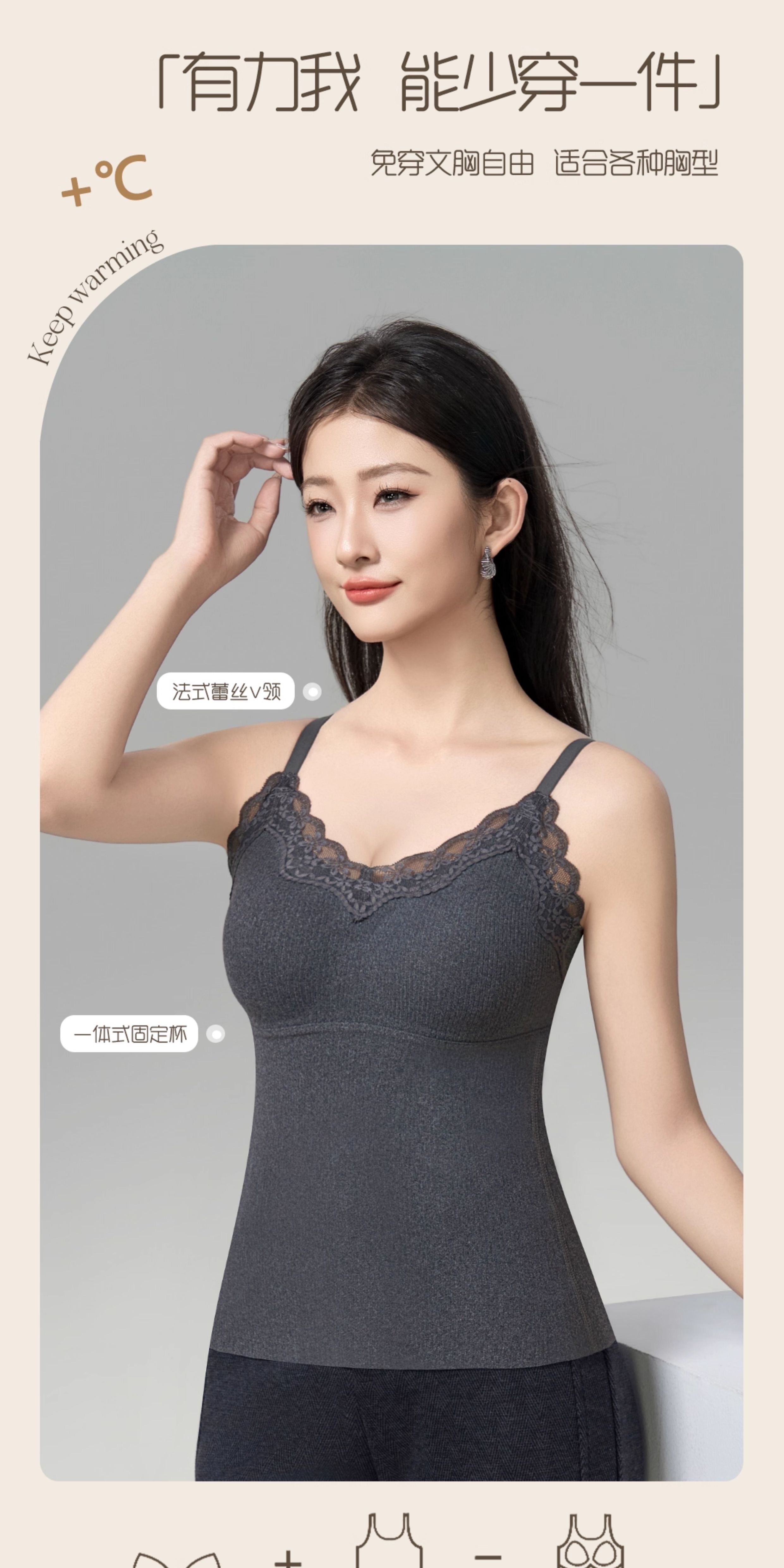 桑蠶絲羊絨保暖內衣女加絨吊帶背心2025秋冬帶胸墊蕾絲內搭打底
