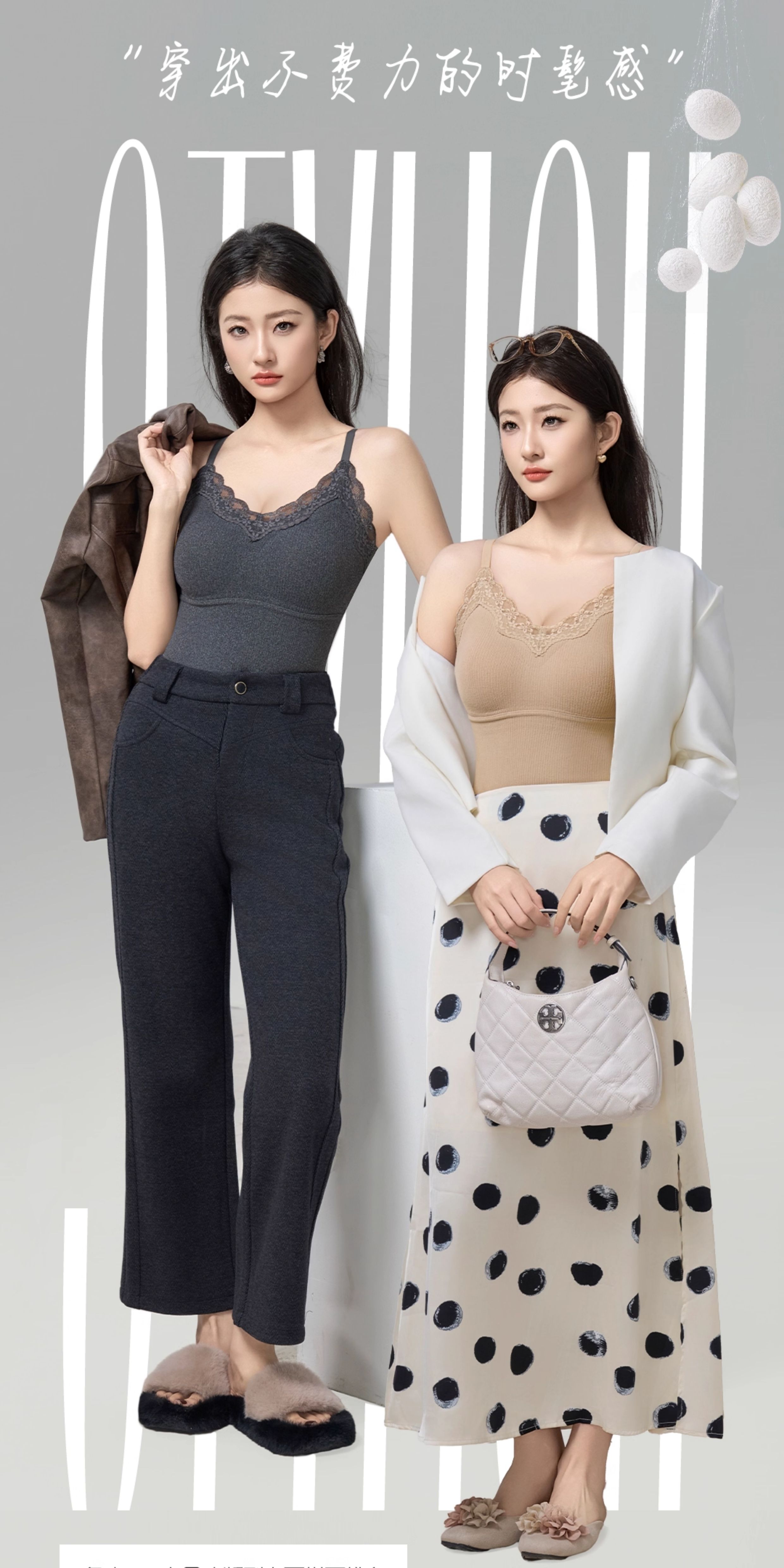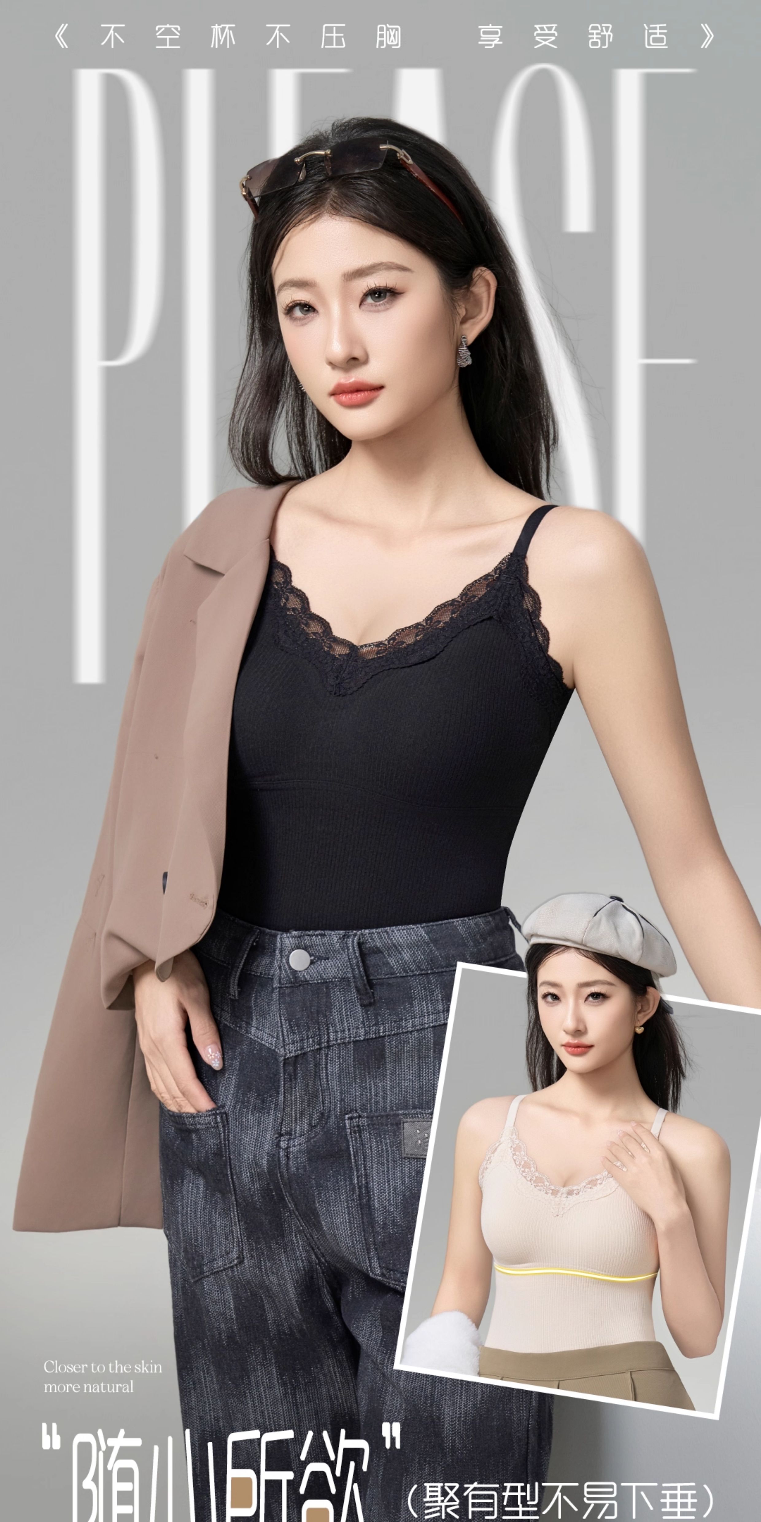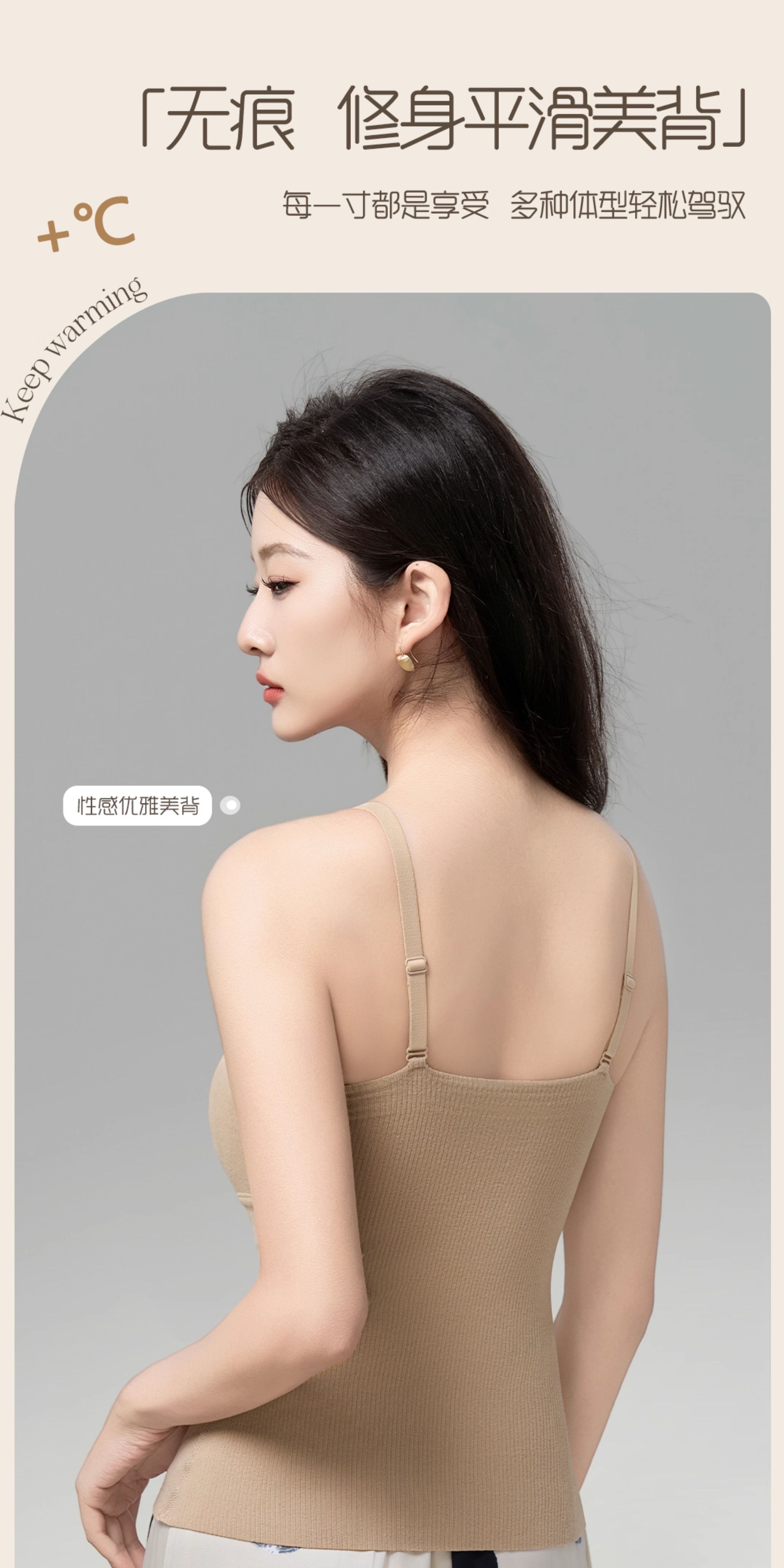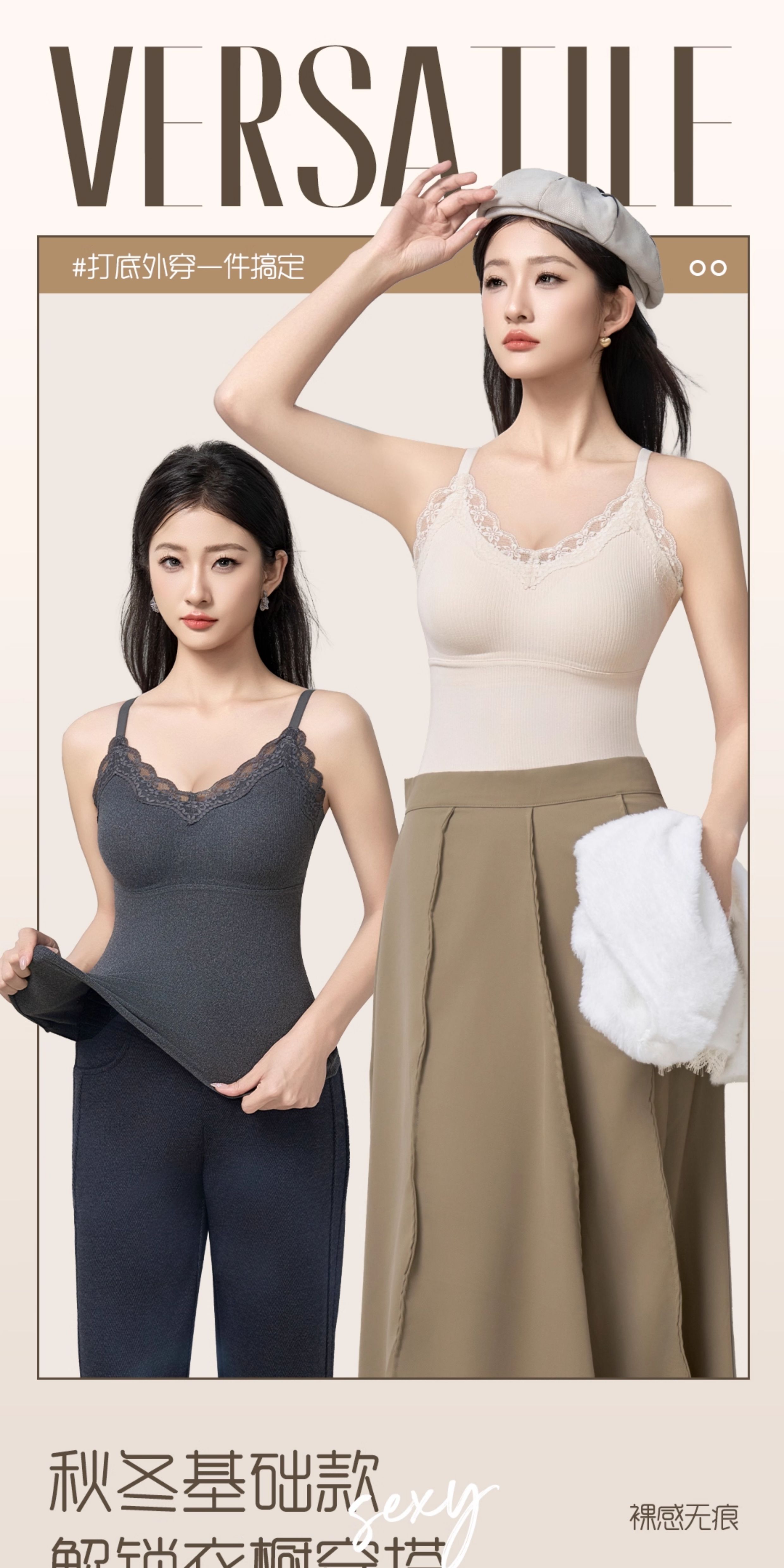 桑蠶絲羊絨保暖內衣女加絨吊帶背心2025秋冬帶胸墊蕾絲內搭打底