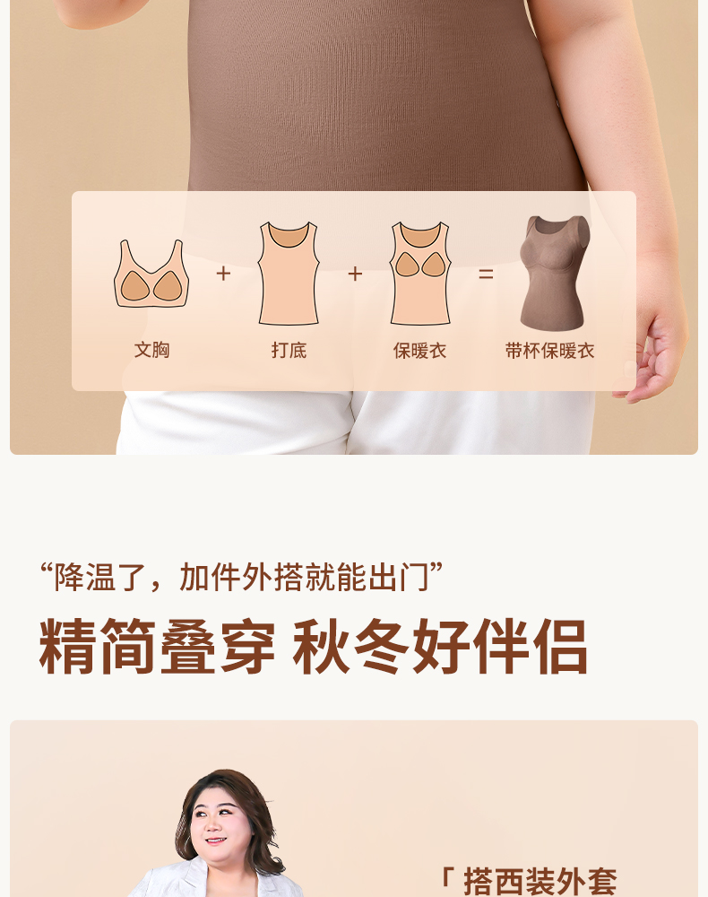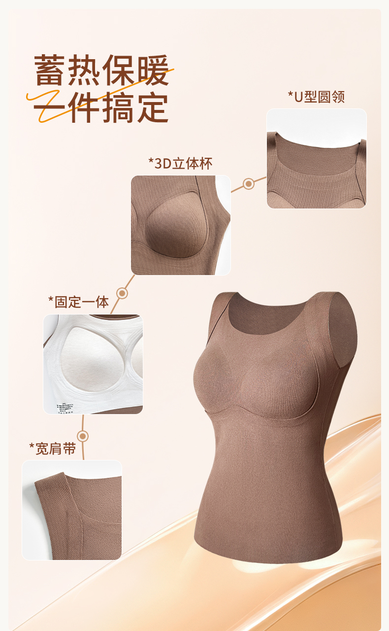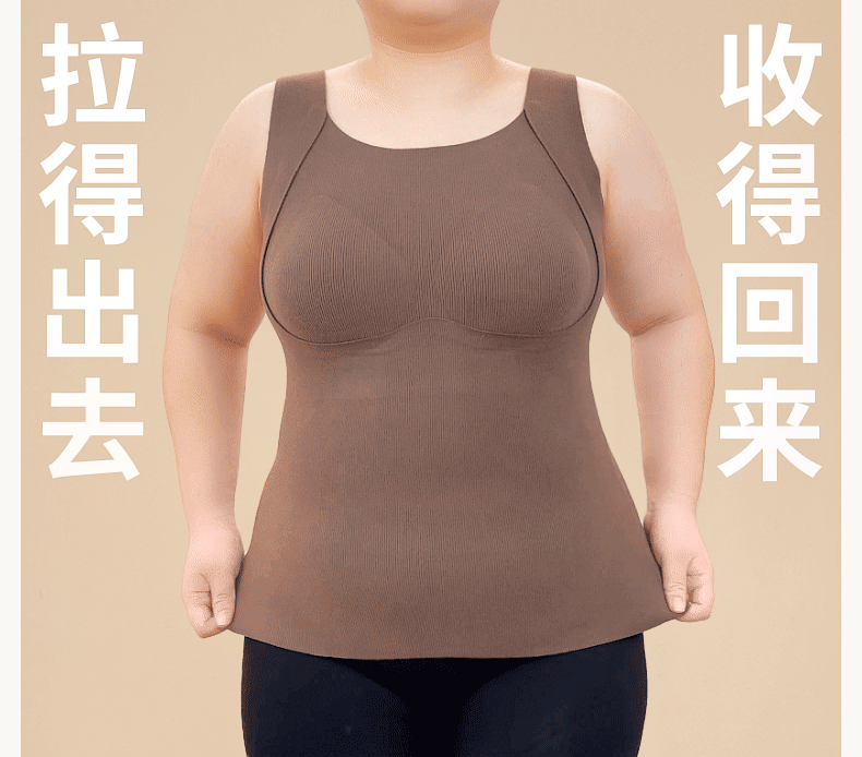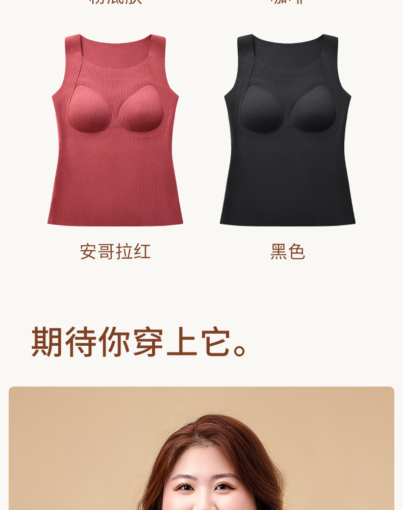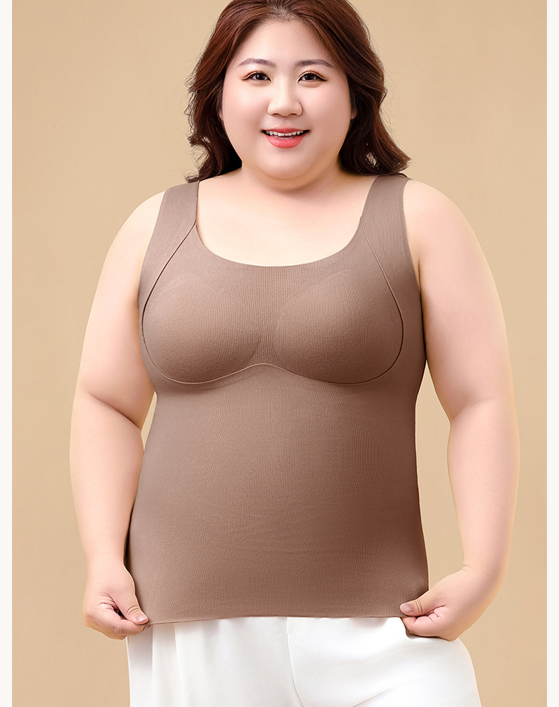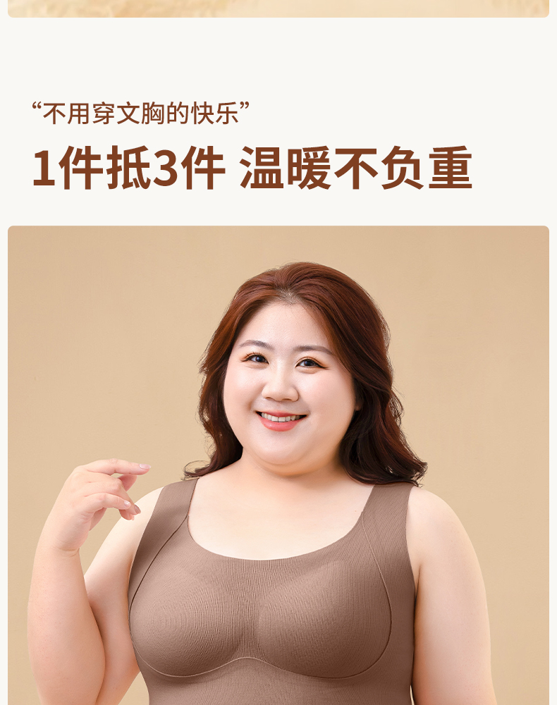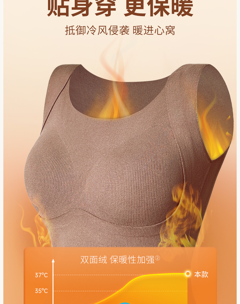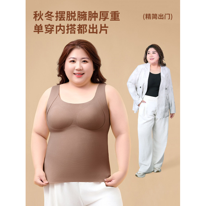 大碼胖mm保暖背心內衣女士帶胸墊一體秋冬季磨毛防寒馬甲免穿文胸