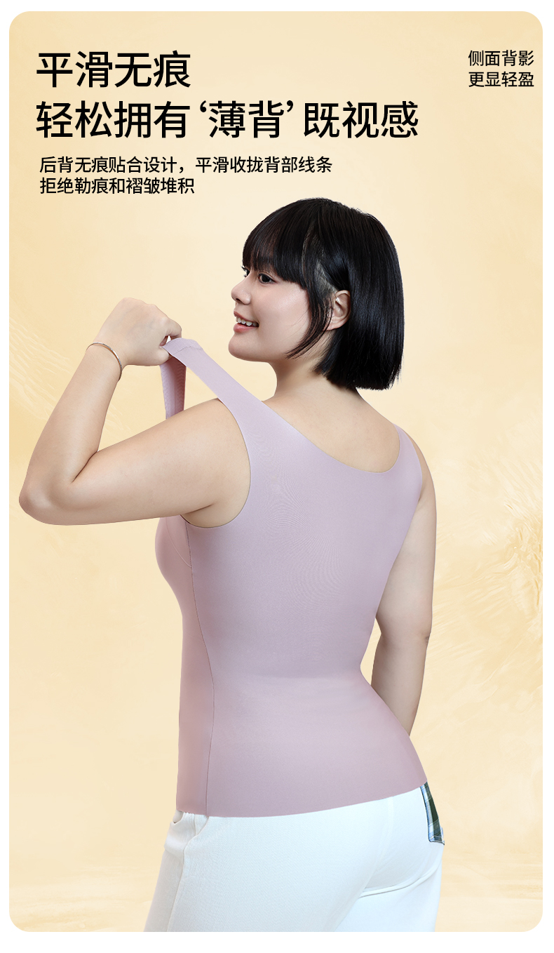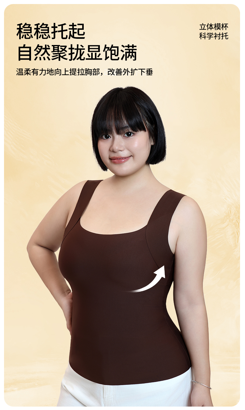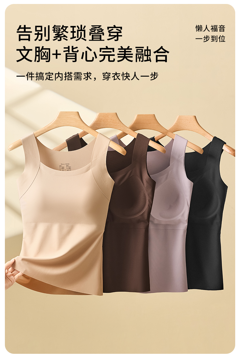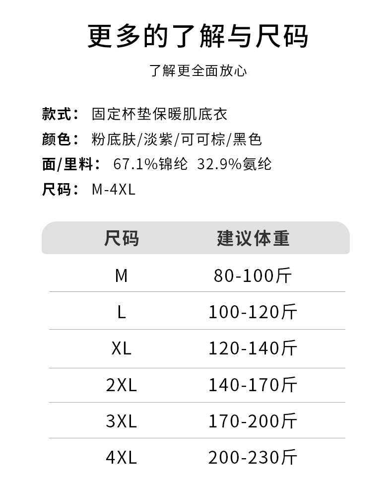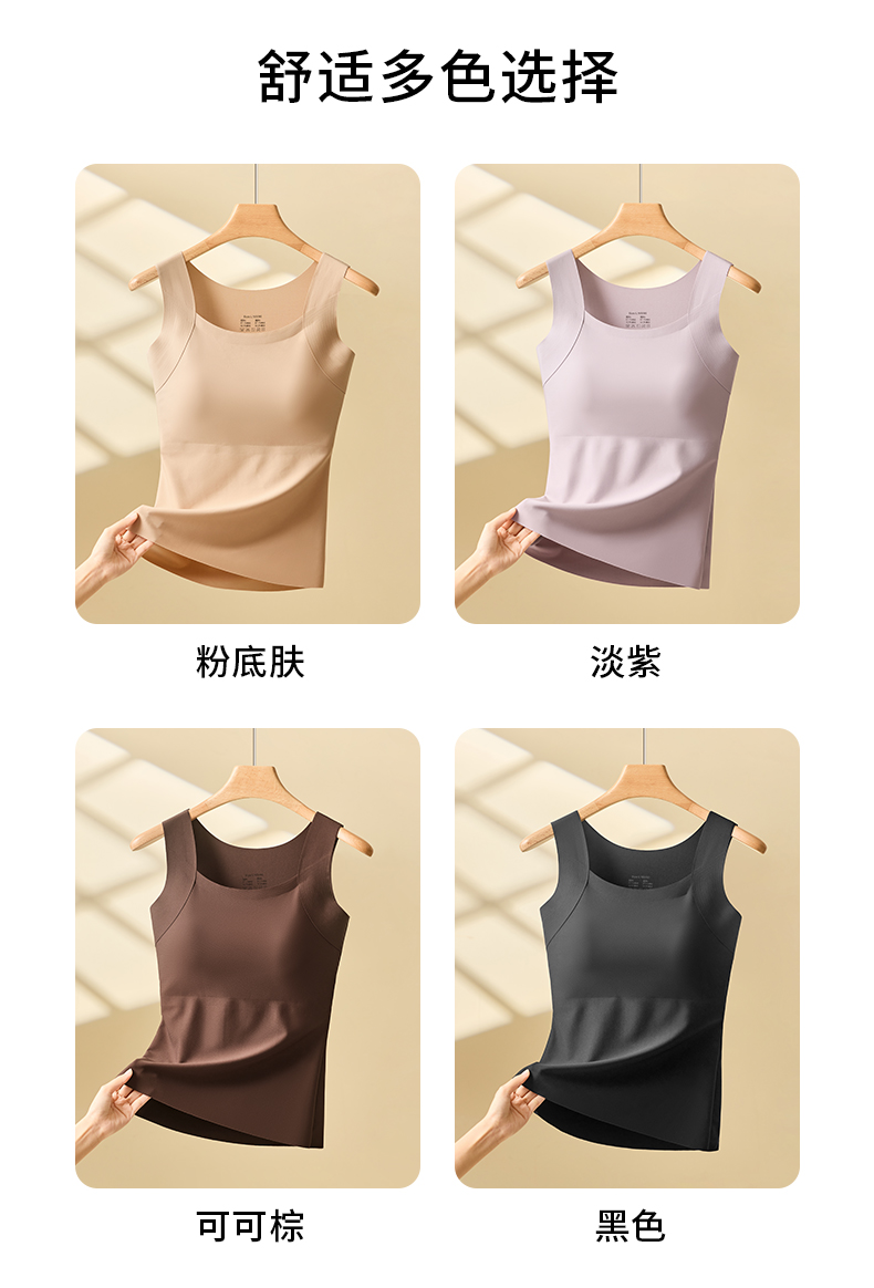 美膚肌底衣帶胸墊固定杯文胸一體式背心女大碼胖mm200斤保暖內衣