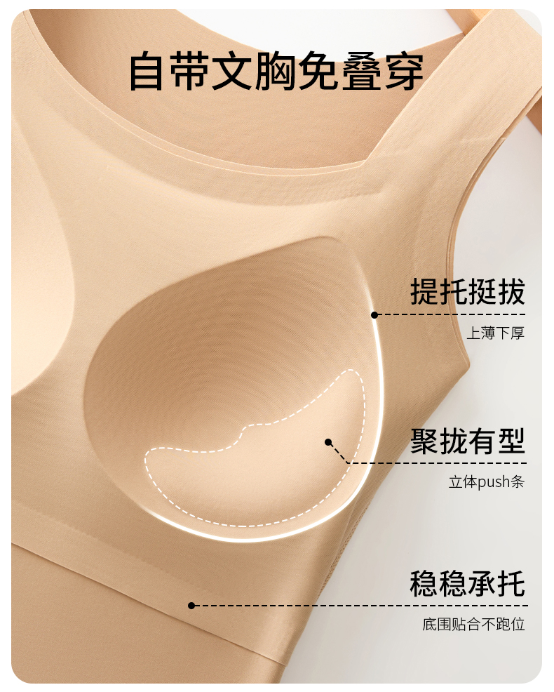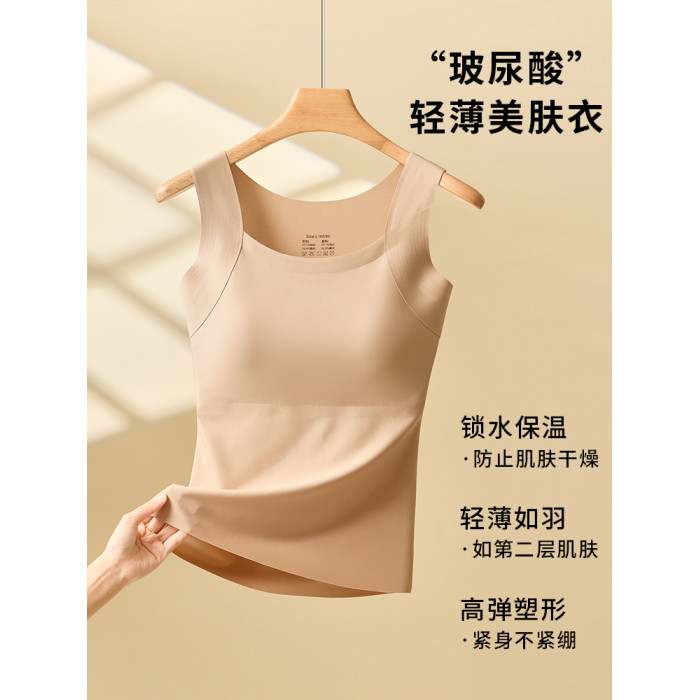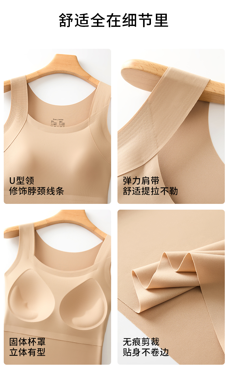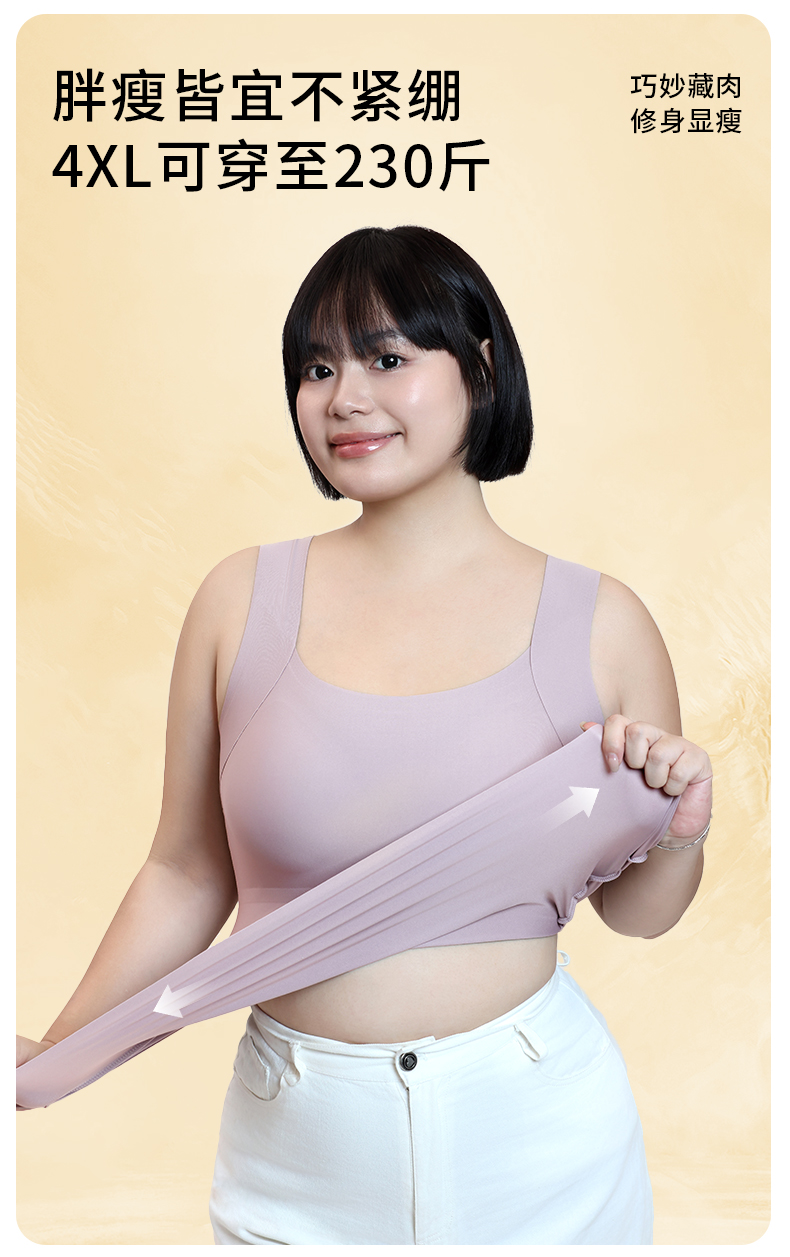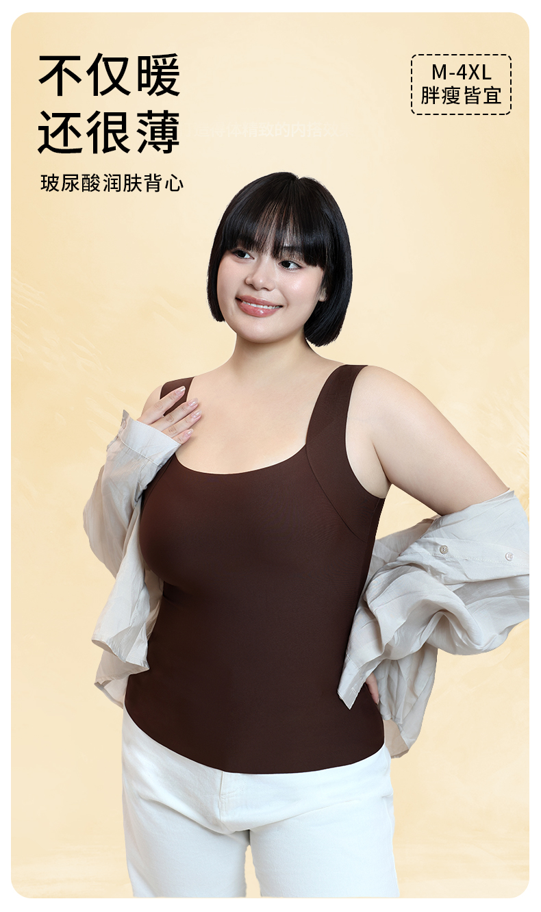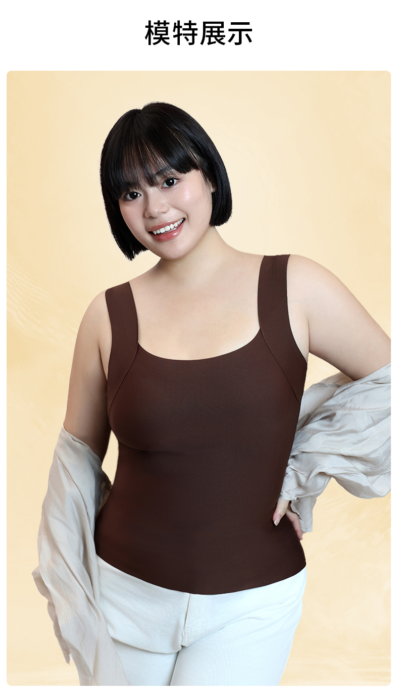 美膚肌底衣帶胸墊固定杯文胸一體式背心女大碼胖mm200斤保暖內衣