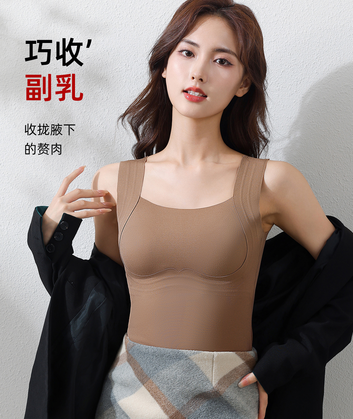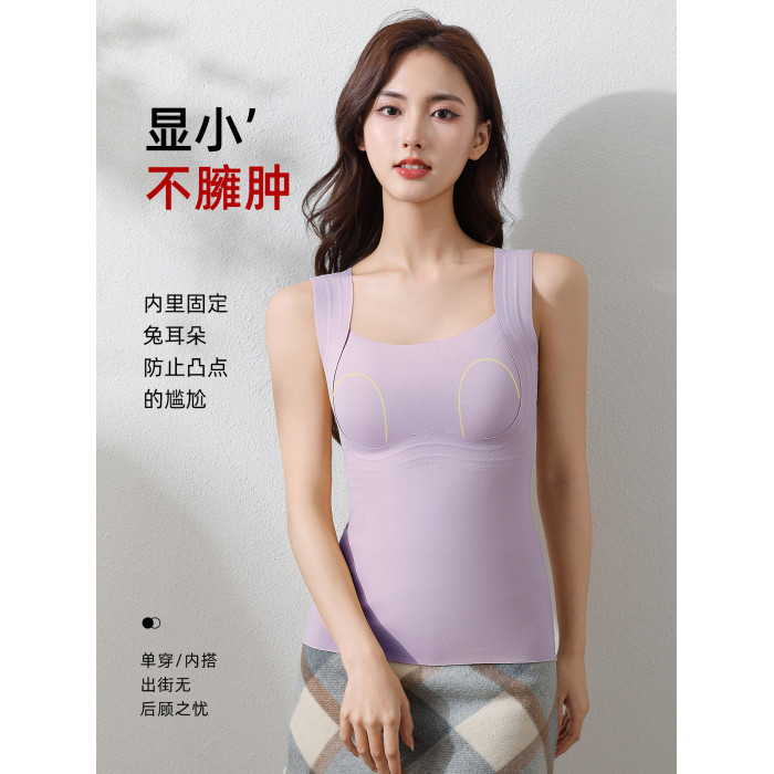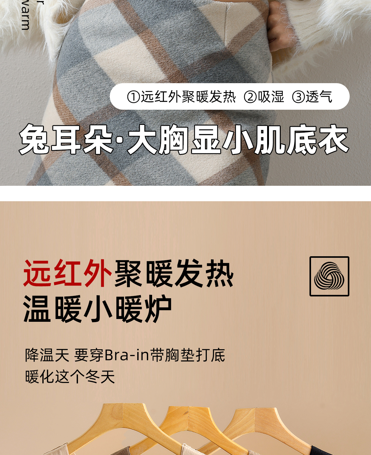 無痕保暖背心女款2025兔耳杯顯小內衣吊帶髮熱磨毛打底上衣秋冬季