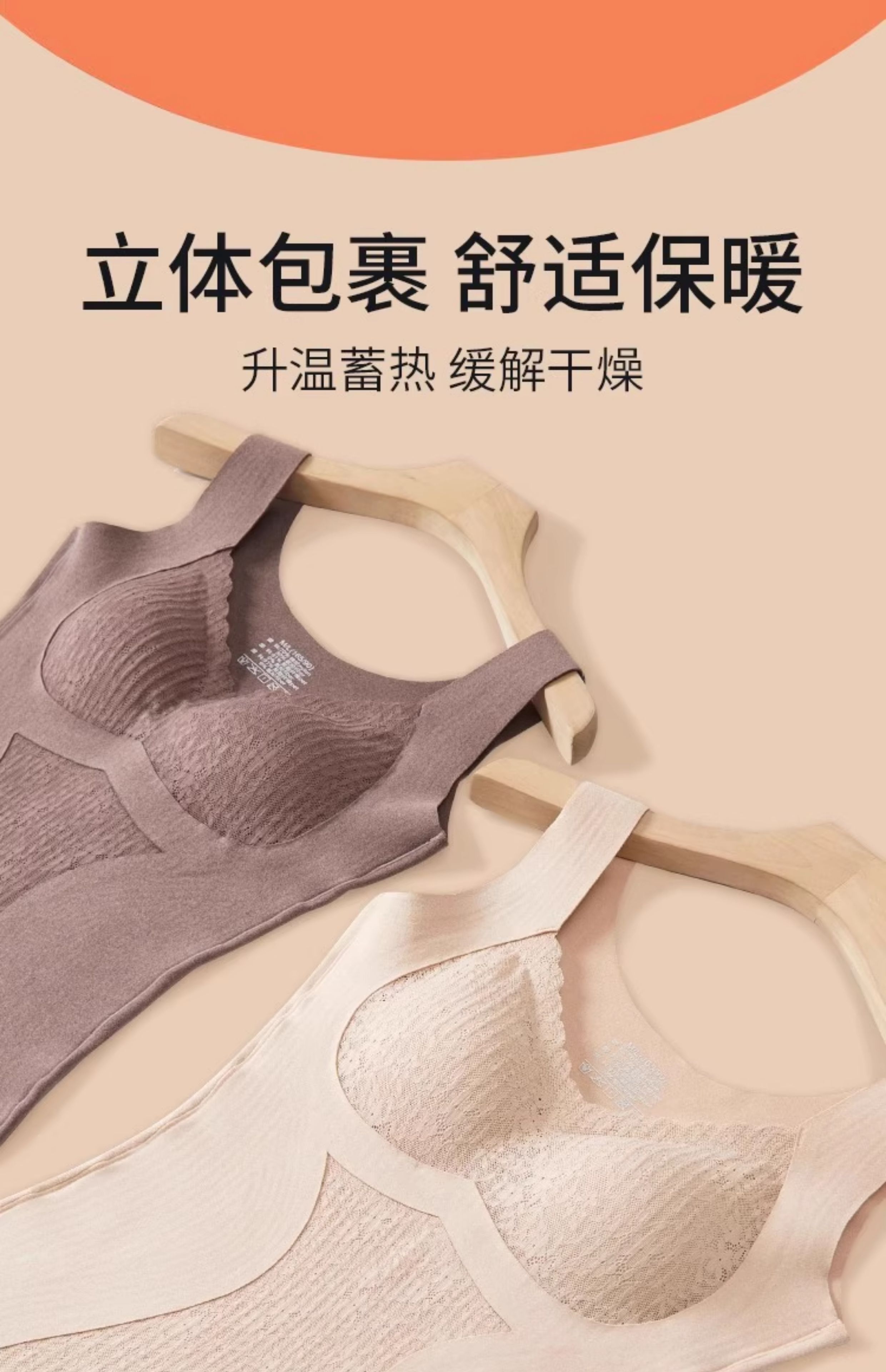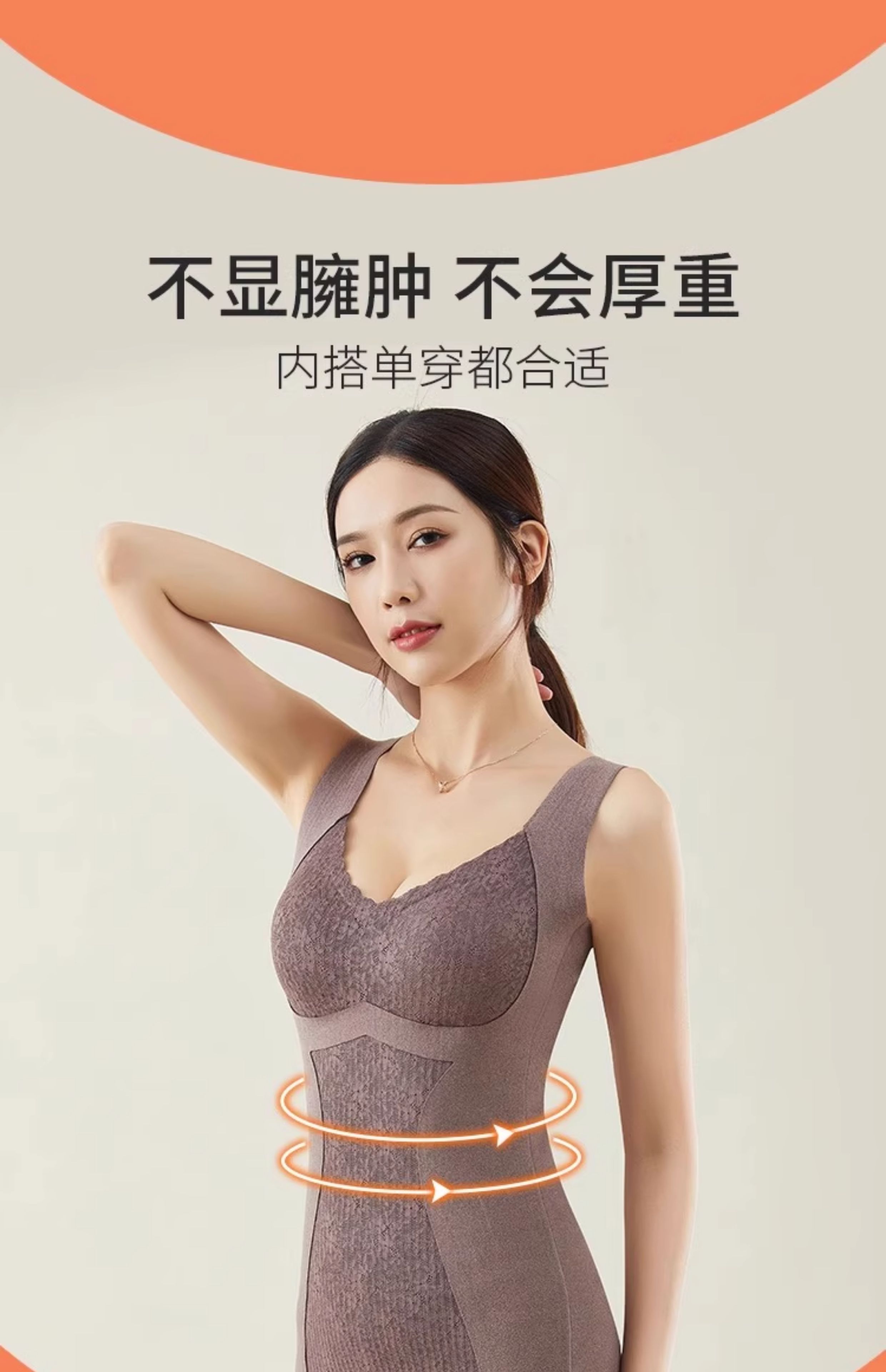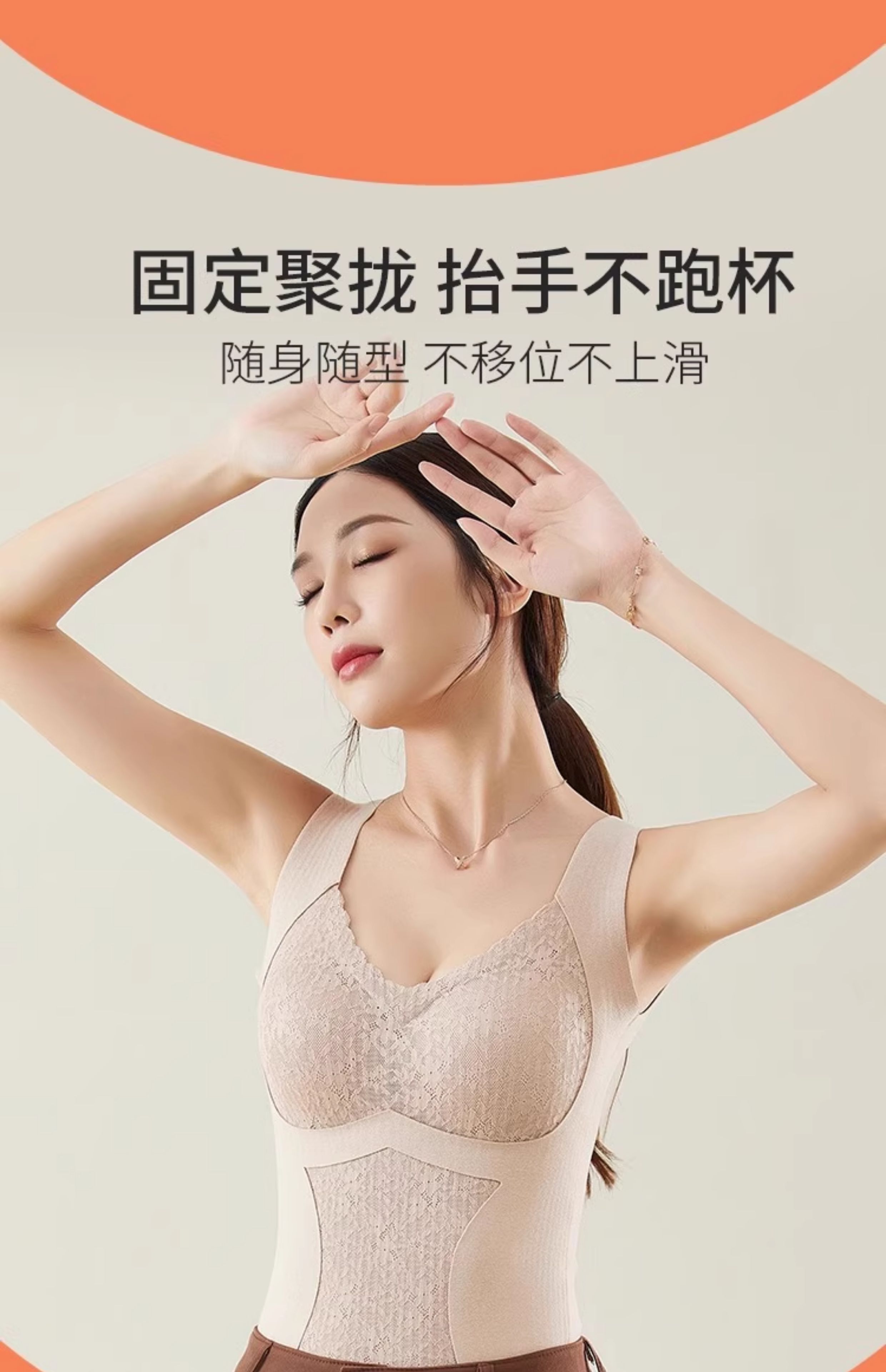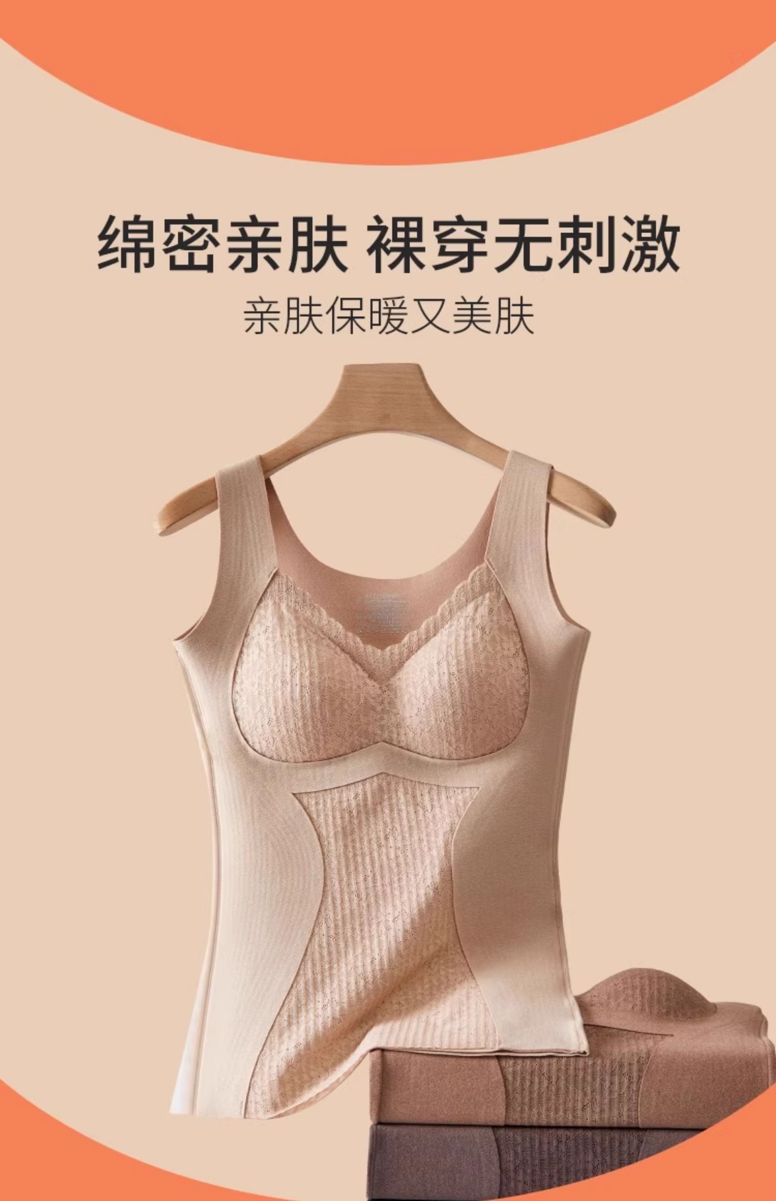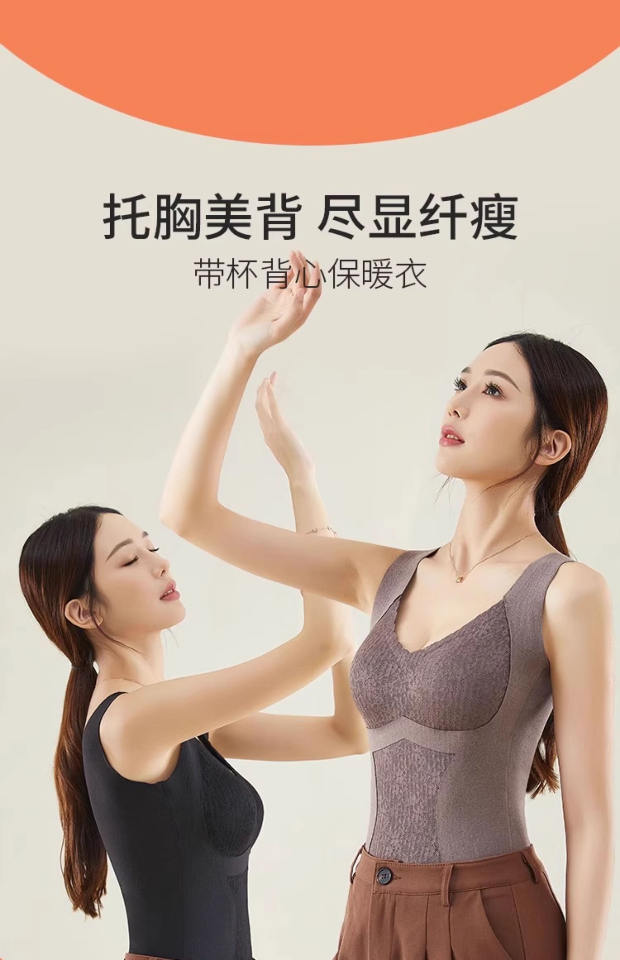 婷美保暖塑身背心女無痕冬季加絨德帶胸墊打底衫免穿文胸內搭馬甲