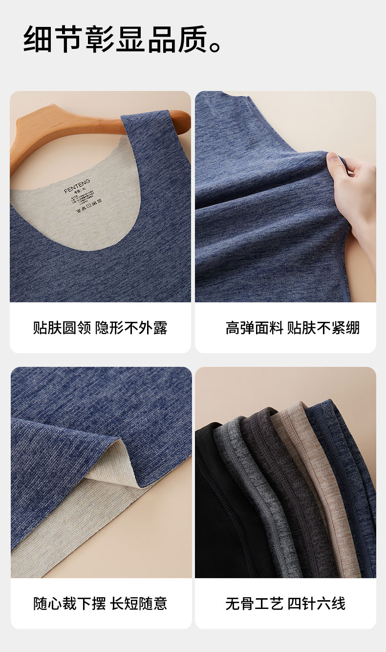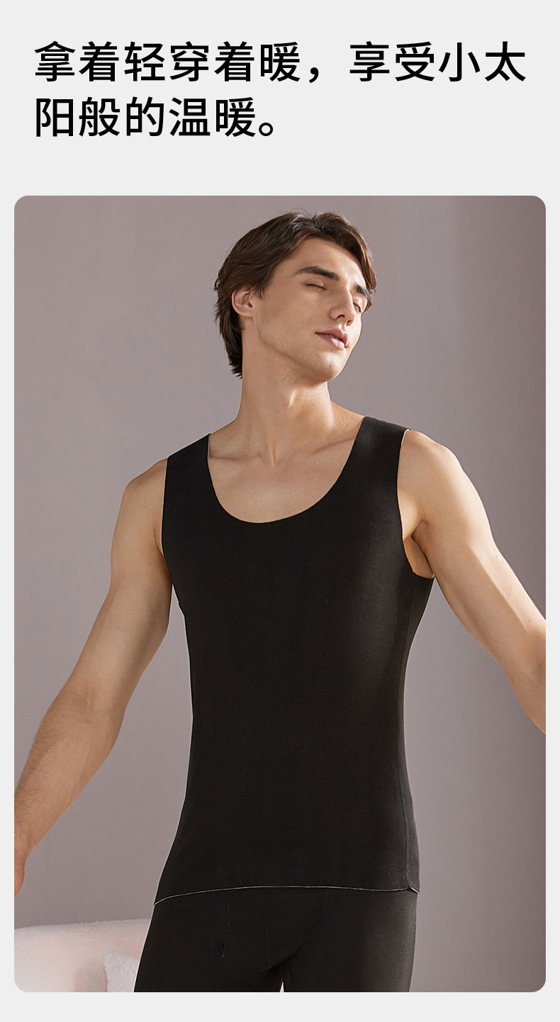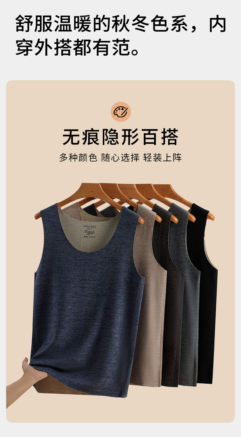芬騰保暖背心男士德絨無痕自髮熱內穿加絨加厚秋衣打底上衣秋冬季