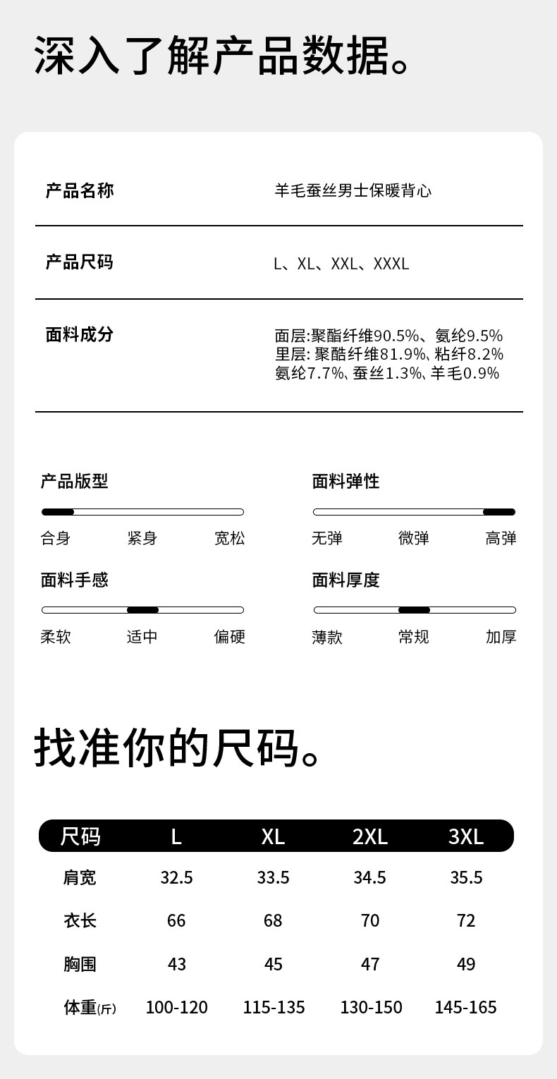 | 裡料材質成分 | 聚酯纖維81.9% 粘膠纖維(粘纖)8.2% 聚氨酯彈性纖維(氨綸)7.7% 桑蠶絲1.3% 綿羊毛0.9% |
