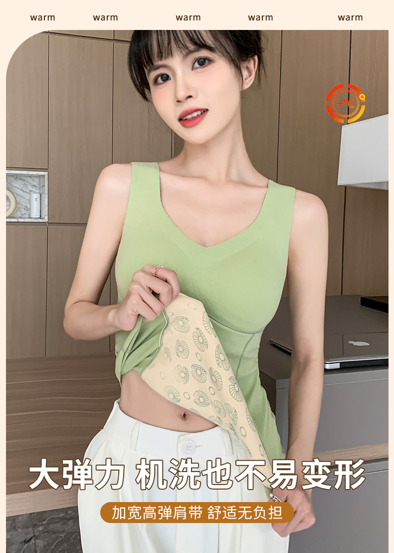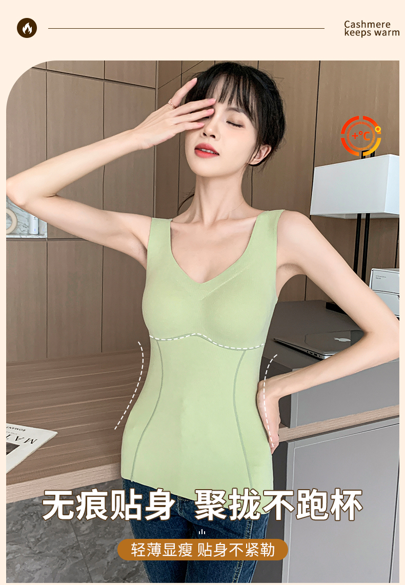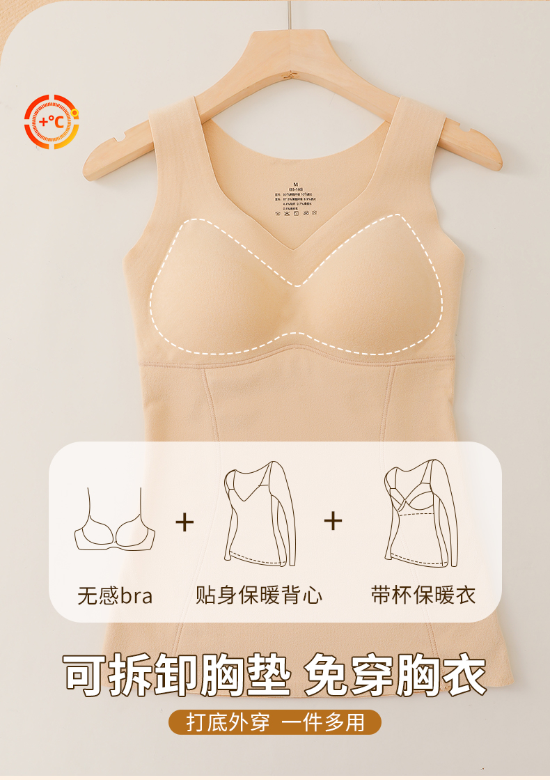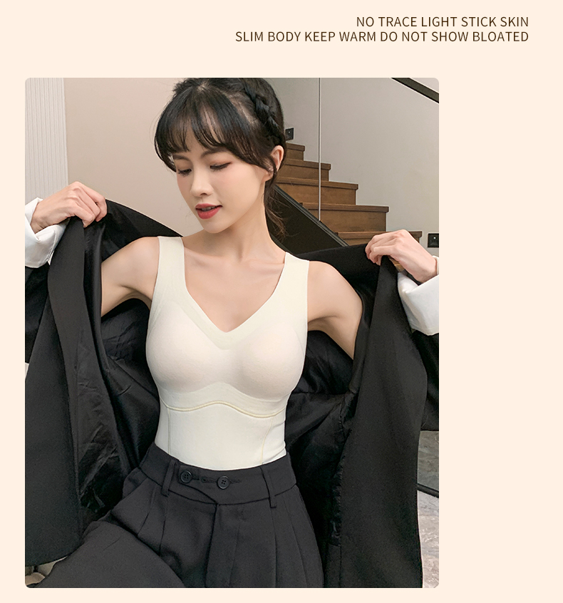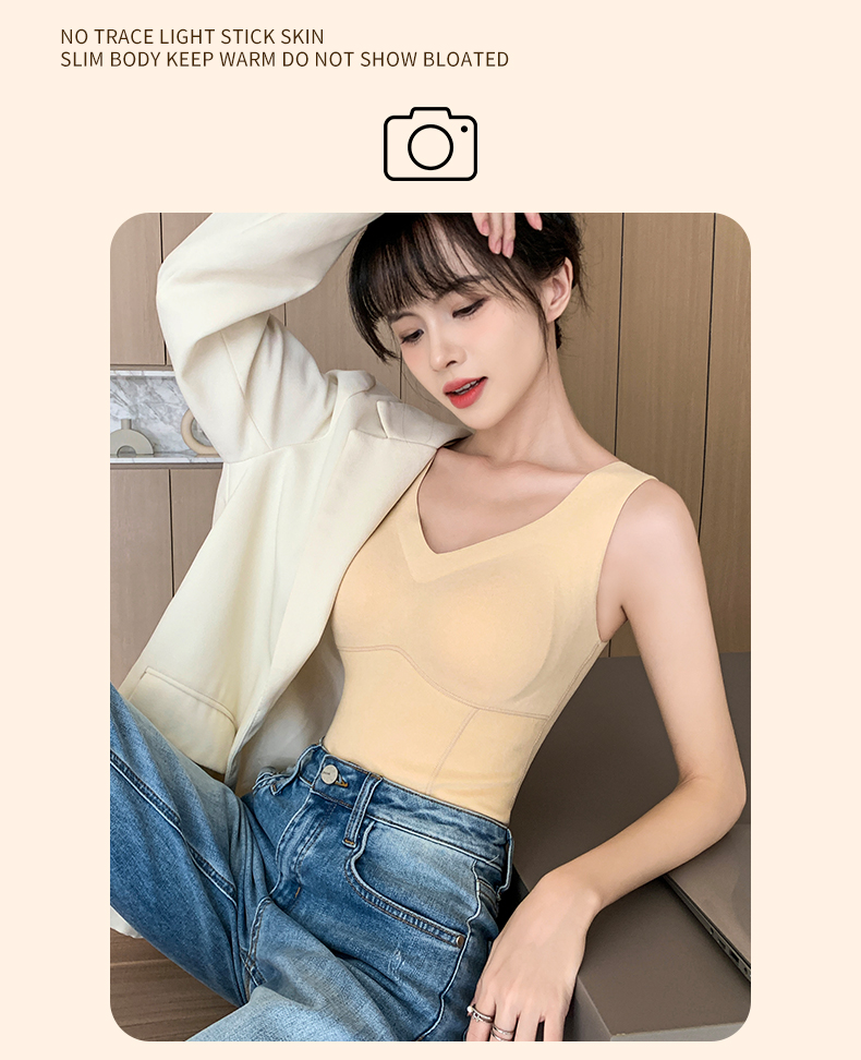 加絨髮熱女士無痕保暖背心帶胸墊內搭內穿打底衫貼身內衣冬季女款