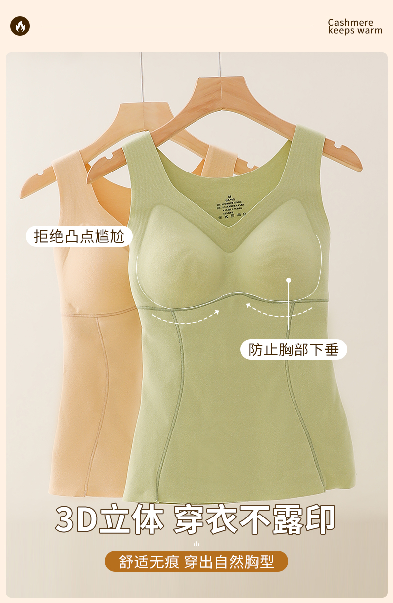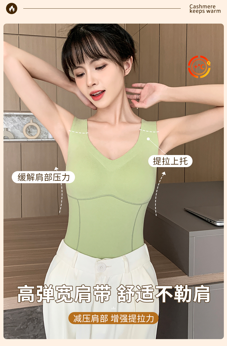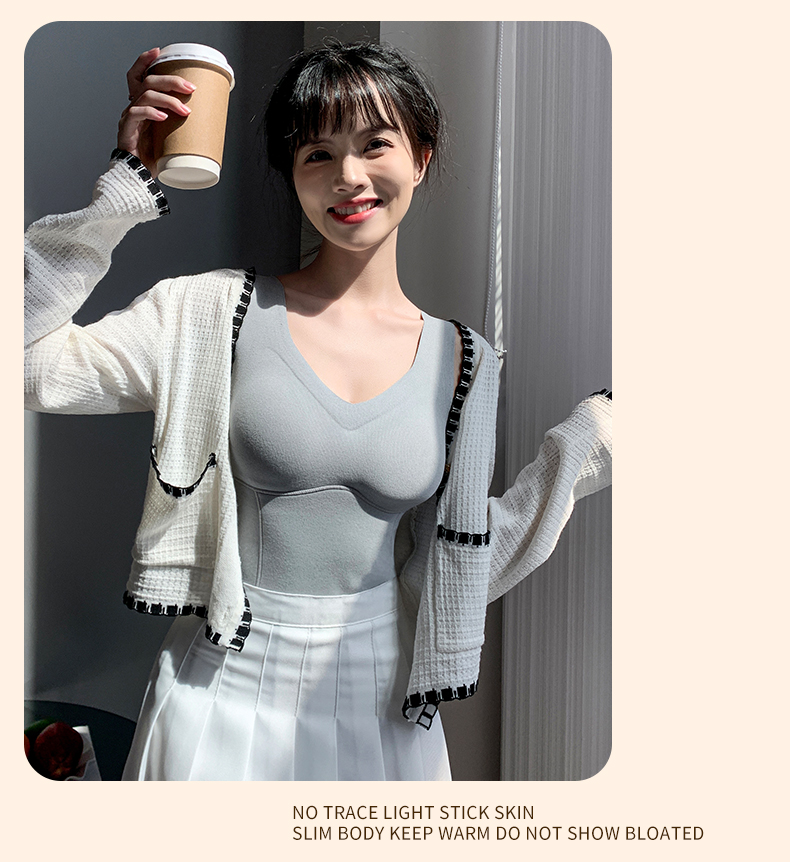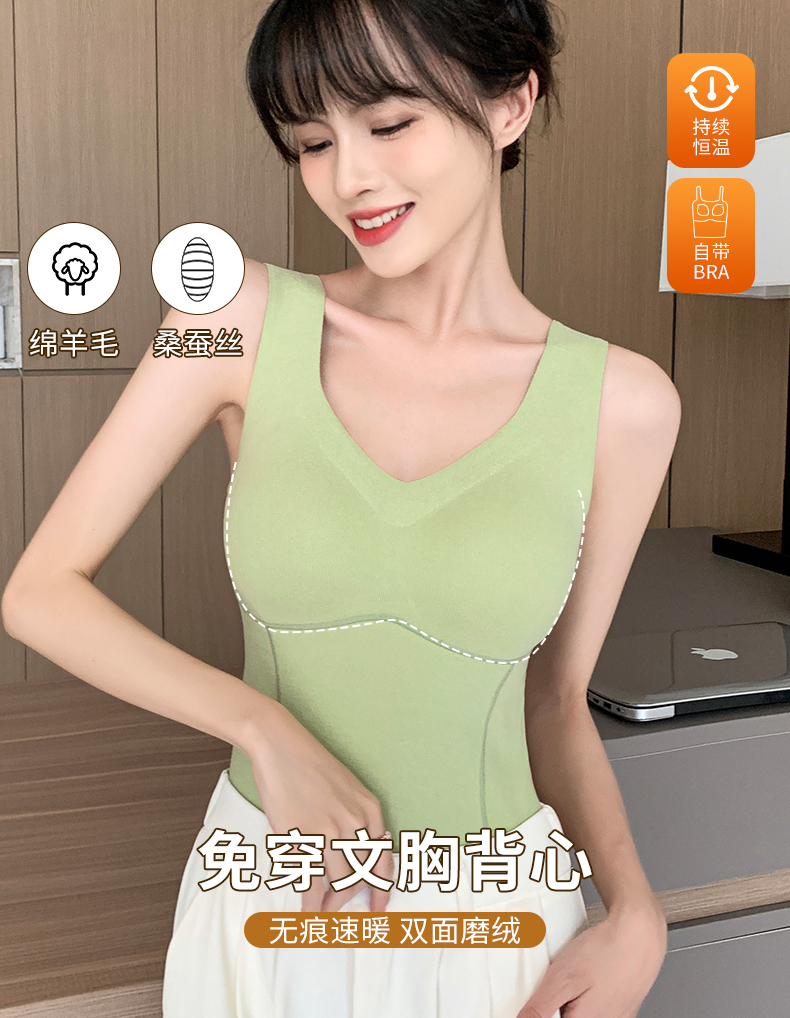 加絨髮熱女士無痕保暖背心帶胸墊內搭內穿打底衫貼身內衣冬季女款