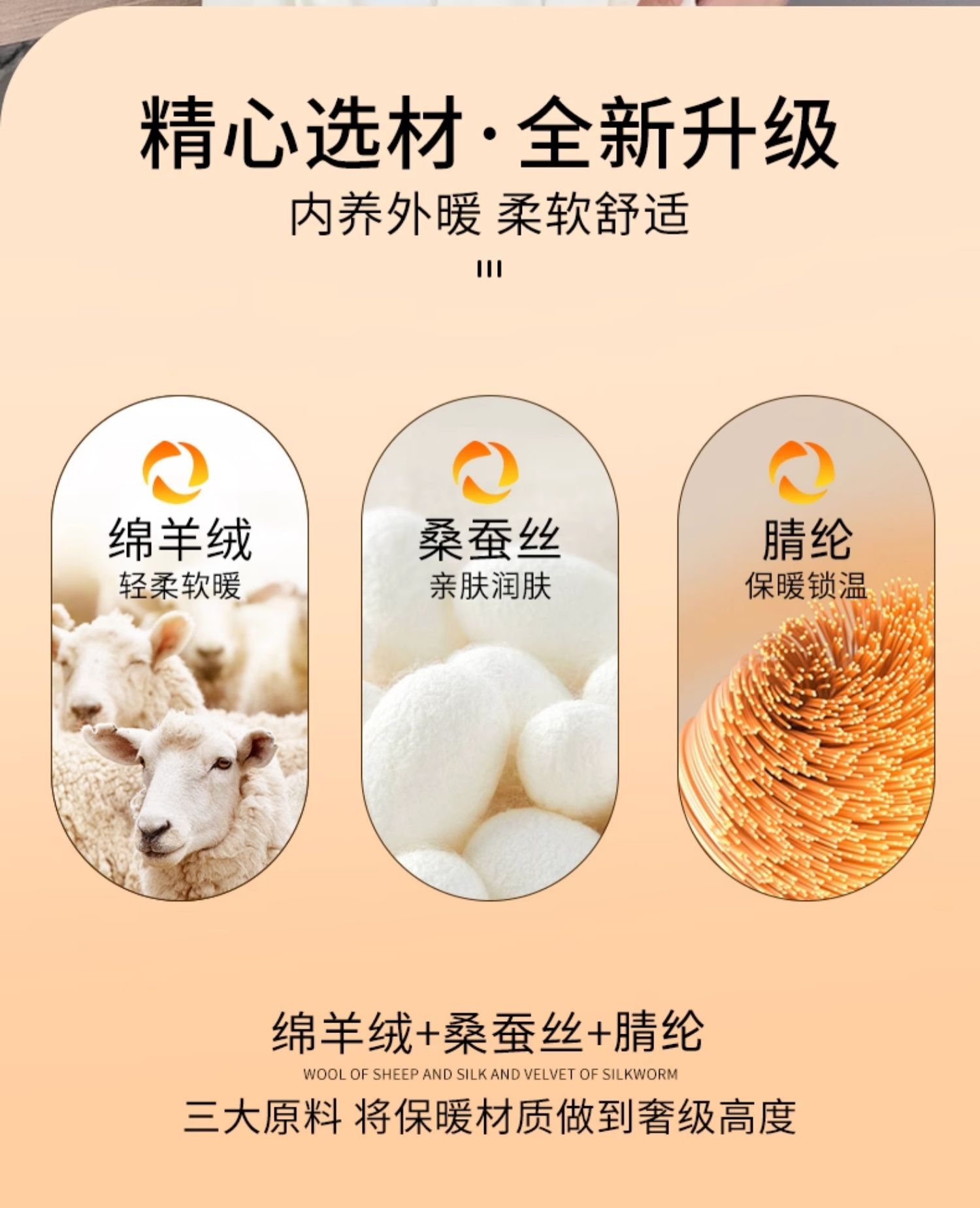 | 裡料材質成分 | 聚酯纖維87.5% 聚氨酯彈性纖維(氨綸)6.9% 粘膠纖維(粘纖)4.4% 桑蠶絲0.7% 綿羊毛0.5% |