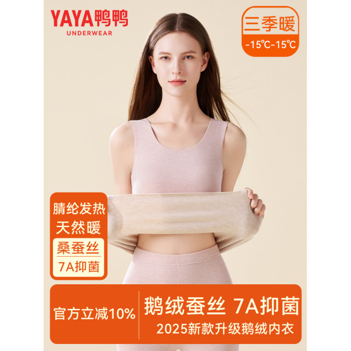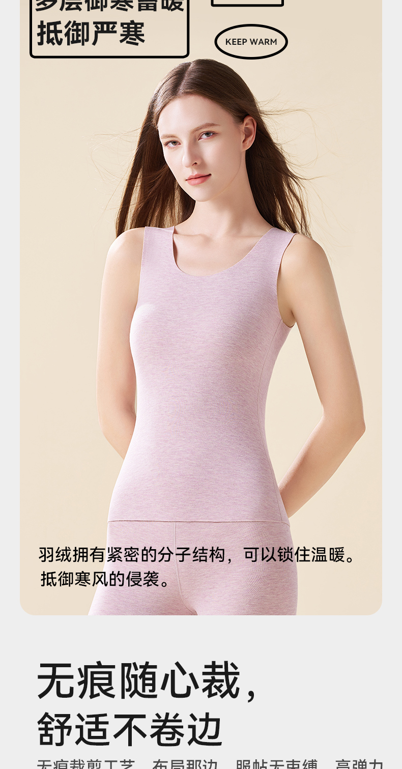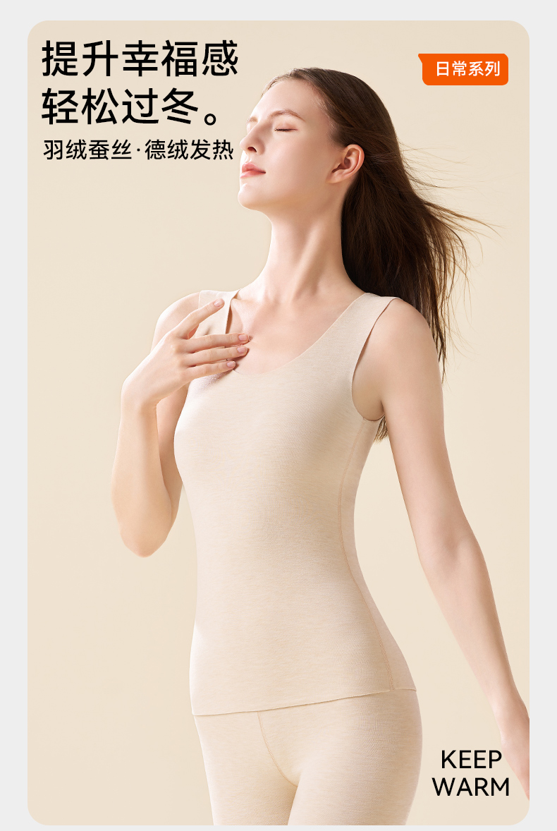 鴨鴨保暖背心女士薄款加絨上衣絨德打底衫無痕髮熱馬甲吊帶秋冬季