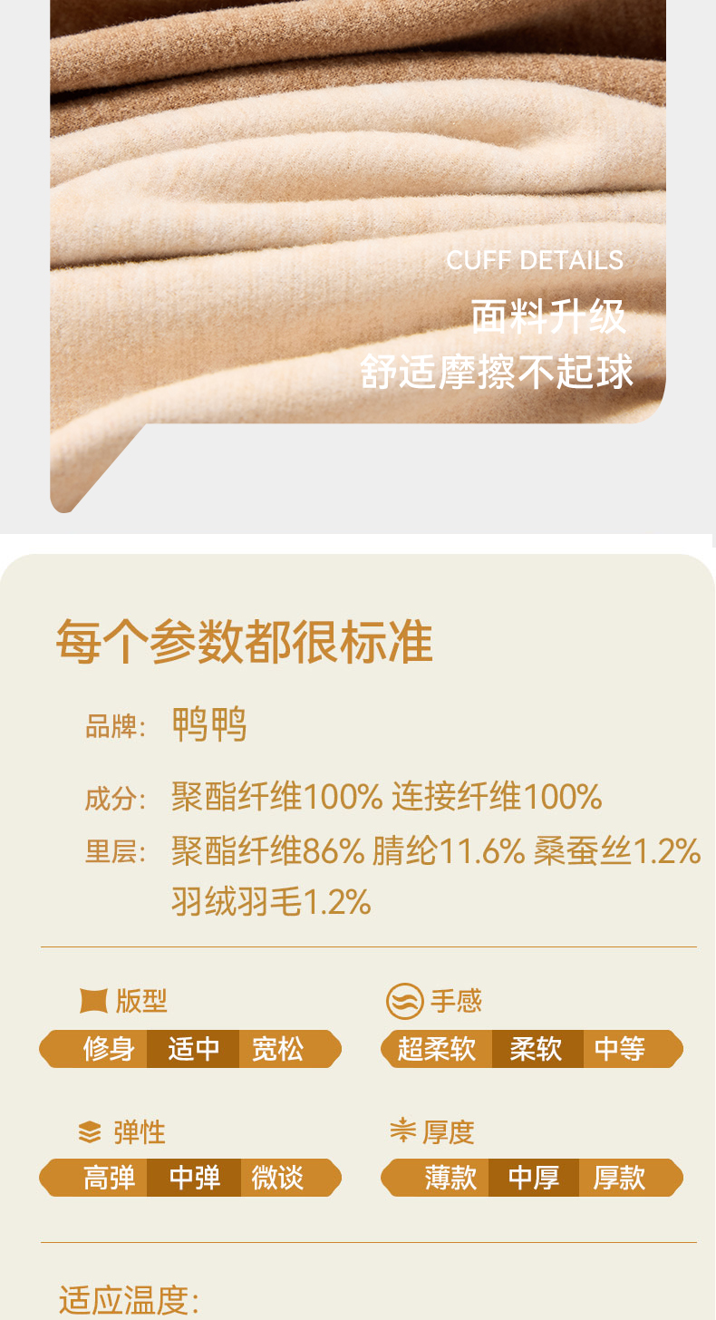 | 裡料材質成分 | 聚酯纖維86% 聚丙烯腈纖維(腈綸)11.6% 桑蠶絲1.2% 其他材質1.2% |
