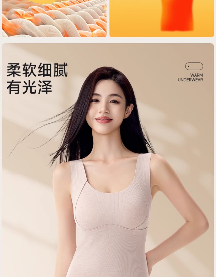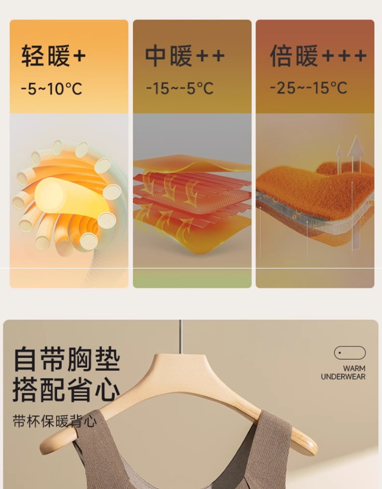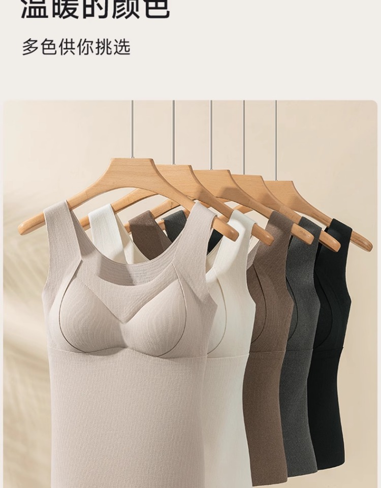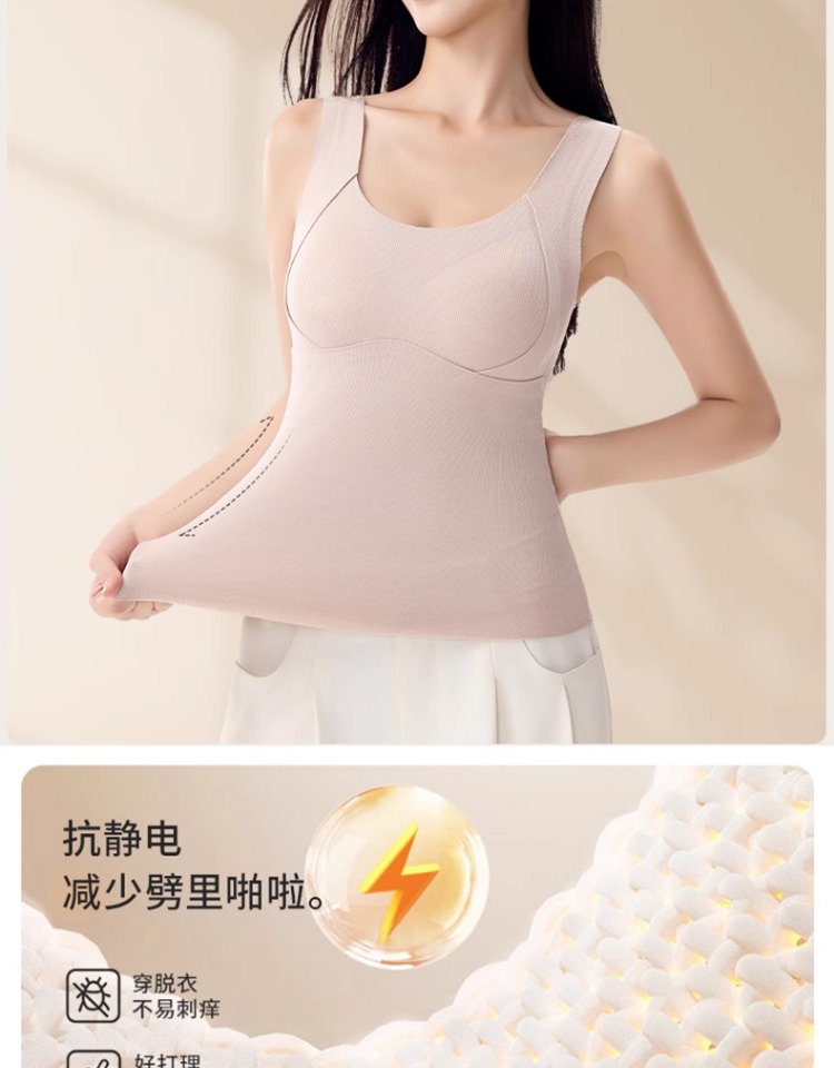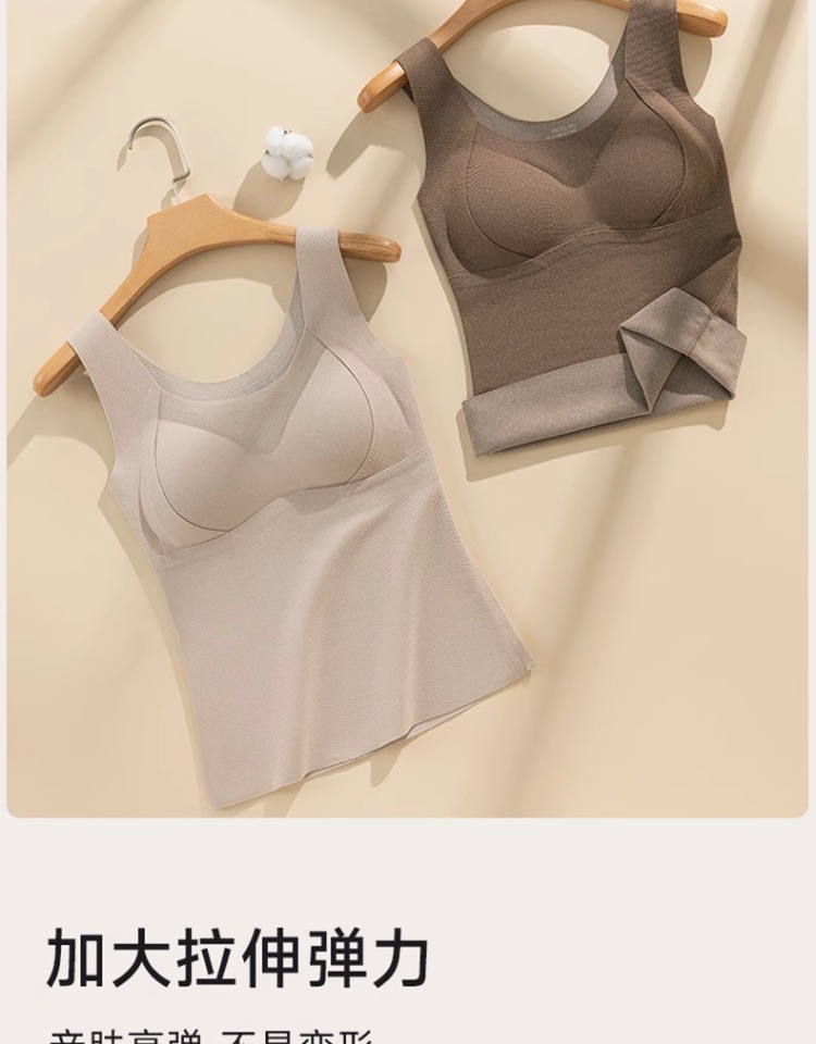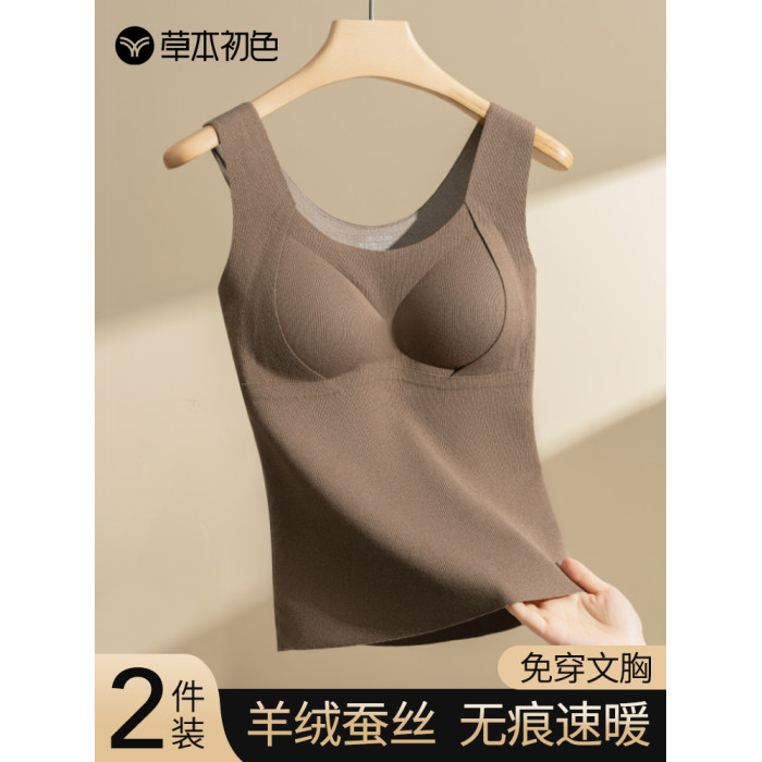 草本初色保暖背心女帶胸墊一體式加厚無痕內搭打底上衣吊帶秋冬季