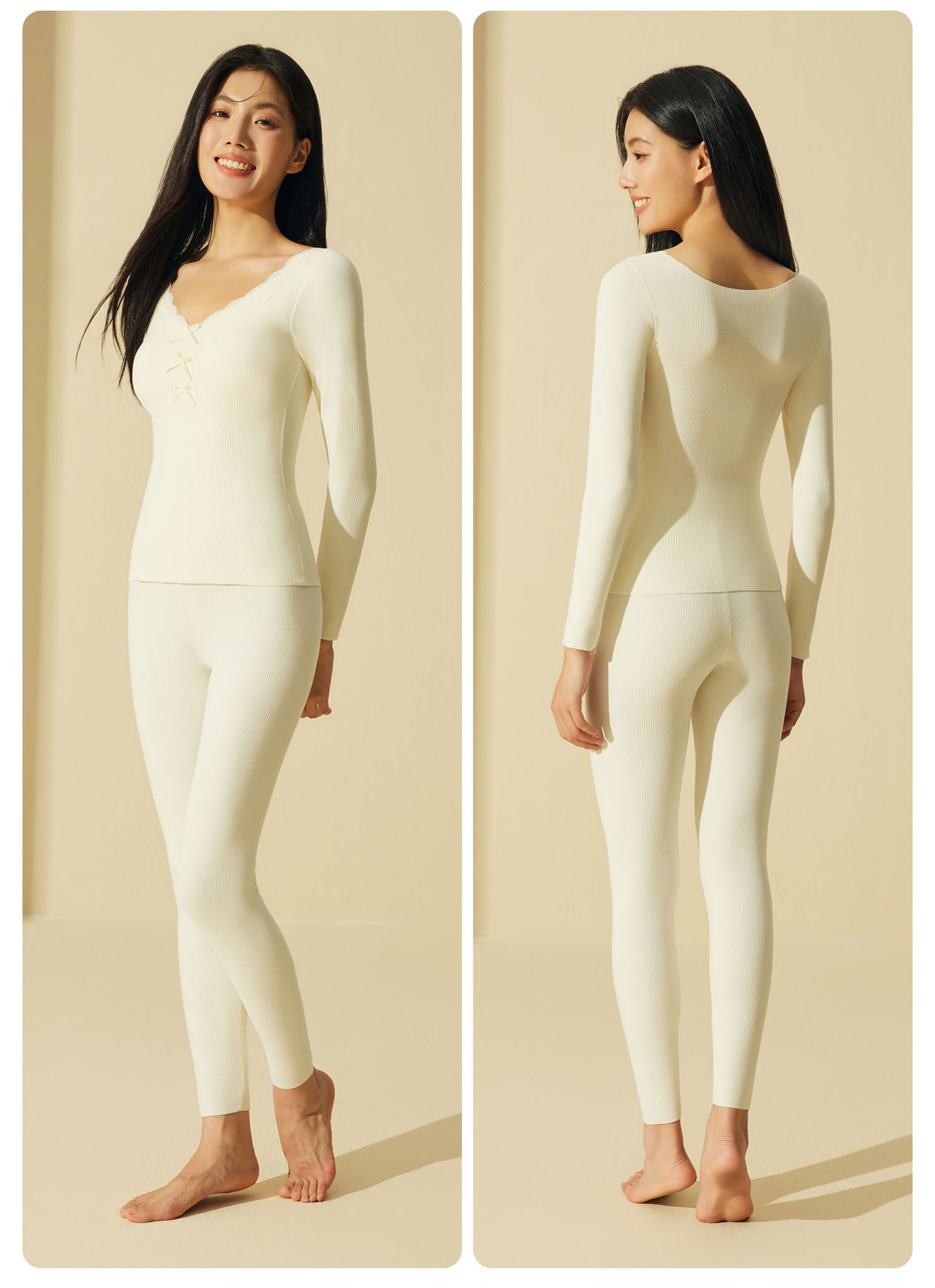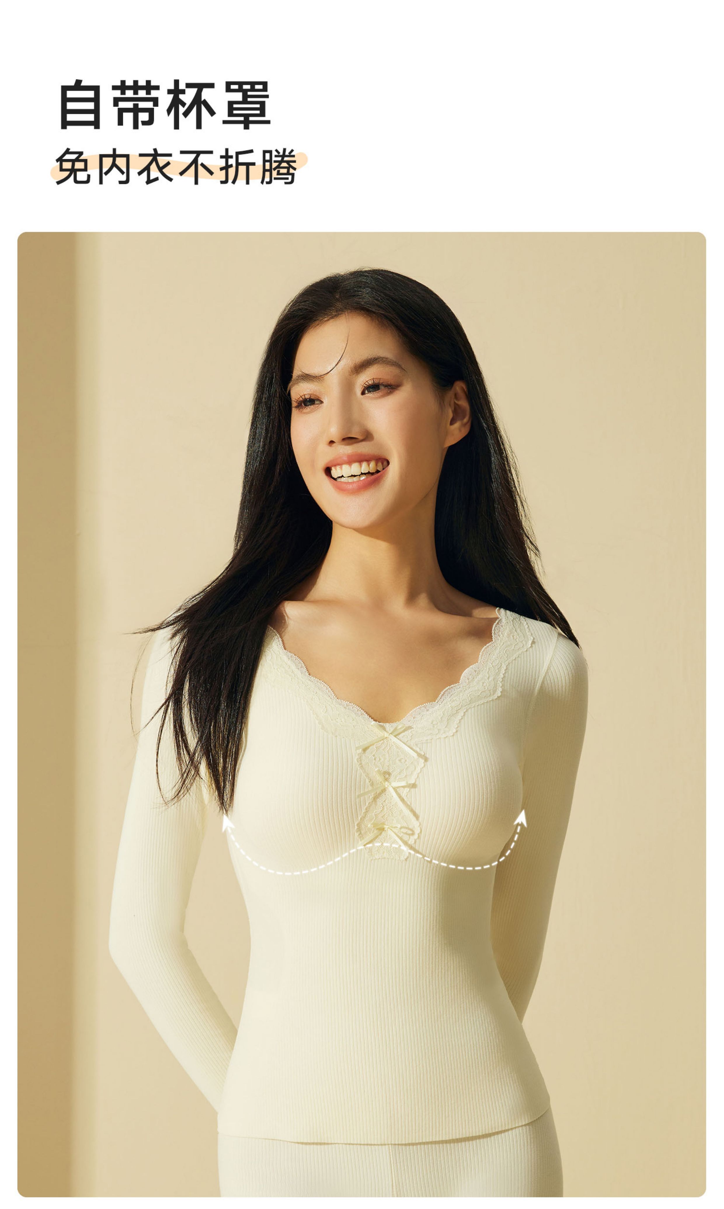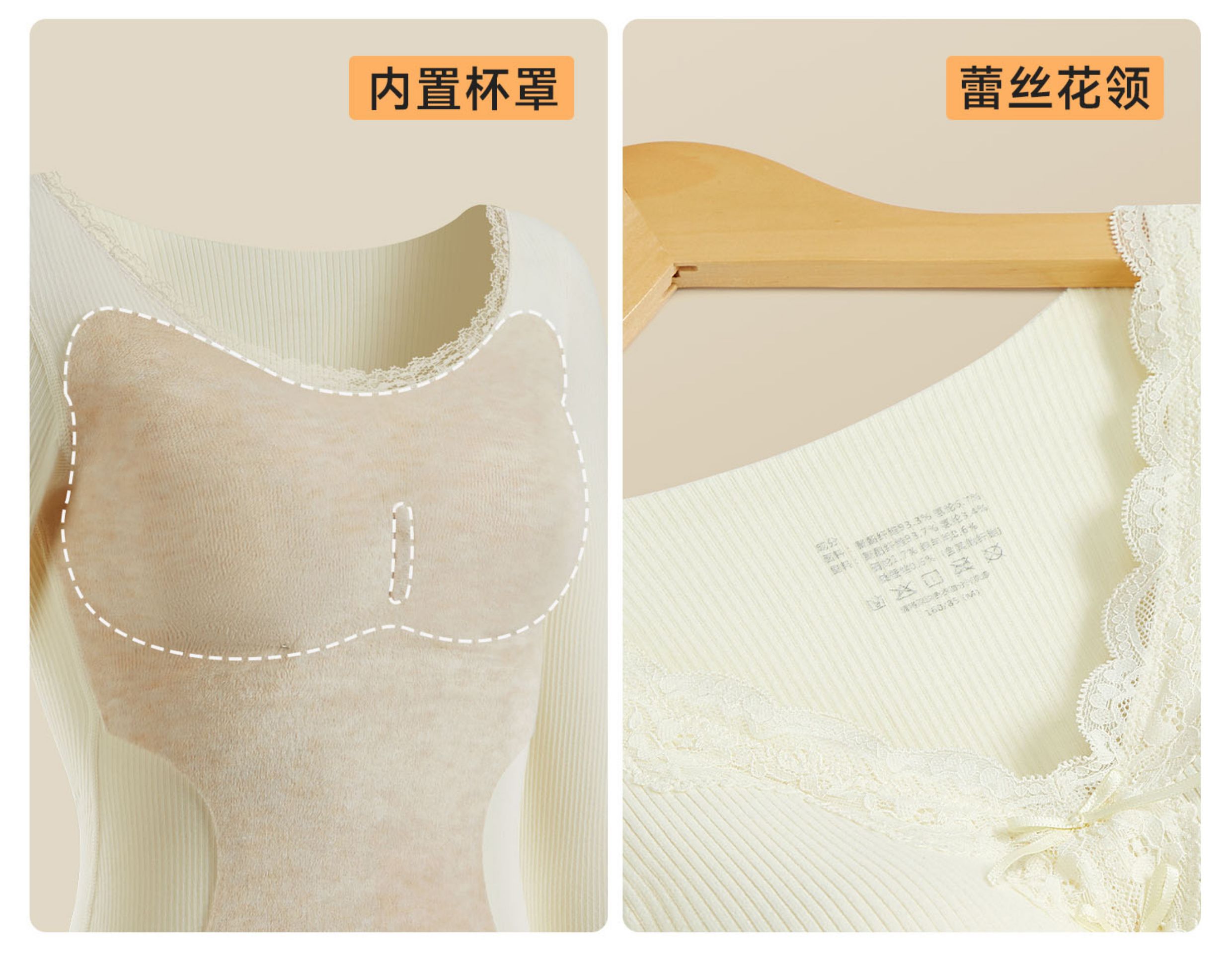 蠶絲羊絨保暖內衣女加絨加厚秋衣秋褲套裝2025秋冬帶胸墊修身上衣