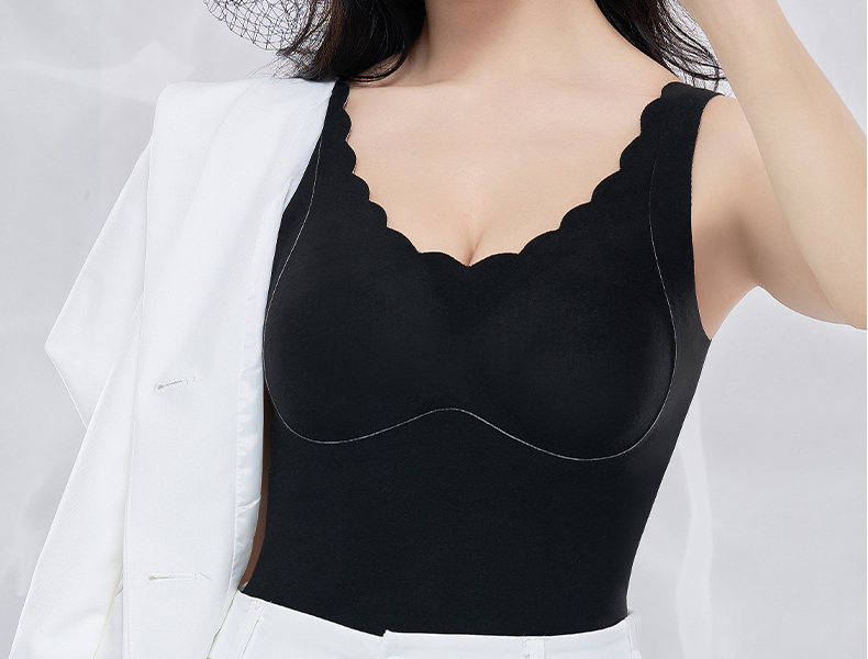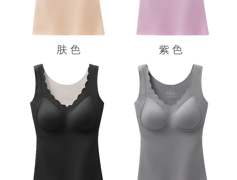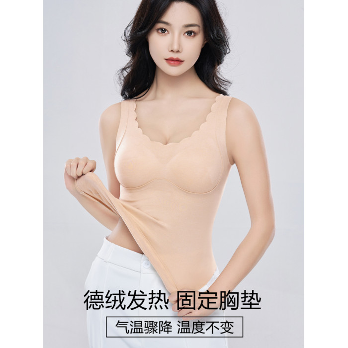 德絨保暖背心內衣女士帶胸墊一體式上衣加絨髮熱秋冬季內搭打底衫