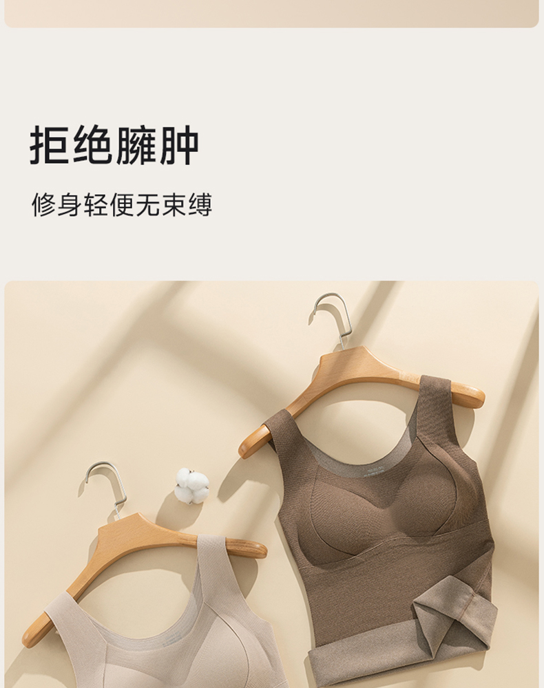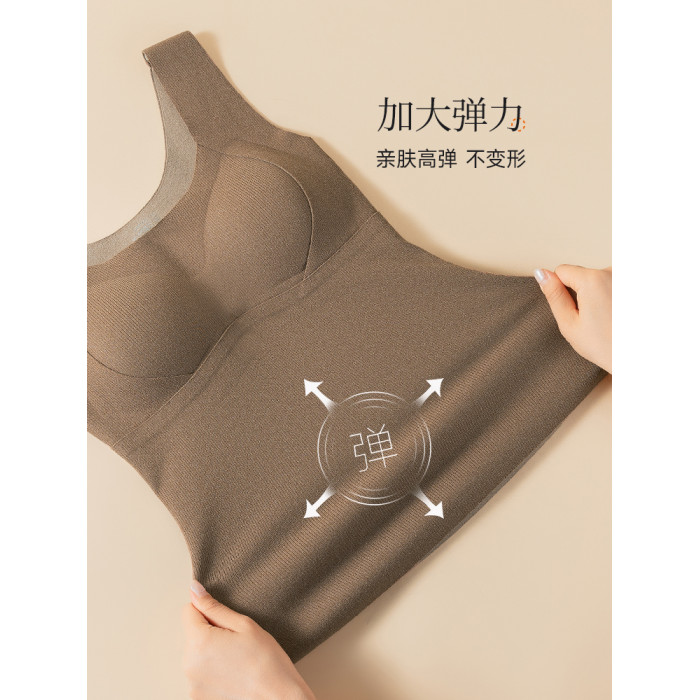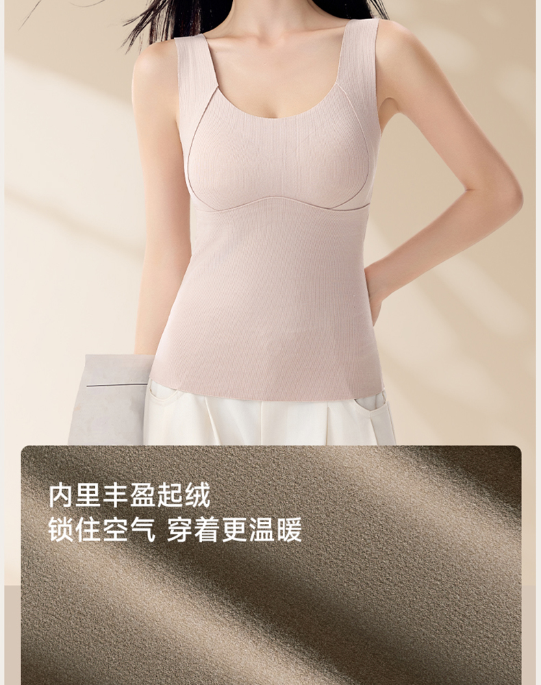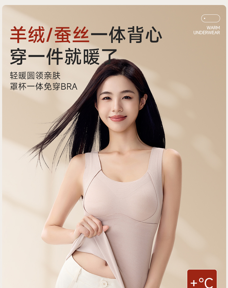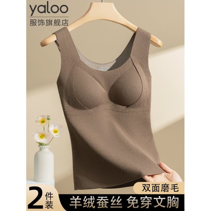 雅鹿保暖背心女士帶胸墊冬季新款內搭羊毛蠶絲女款加絨德打底上衣