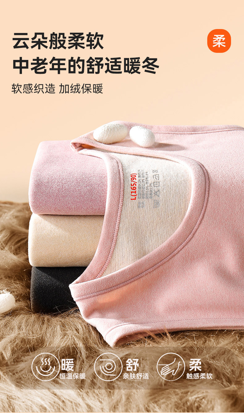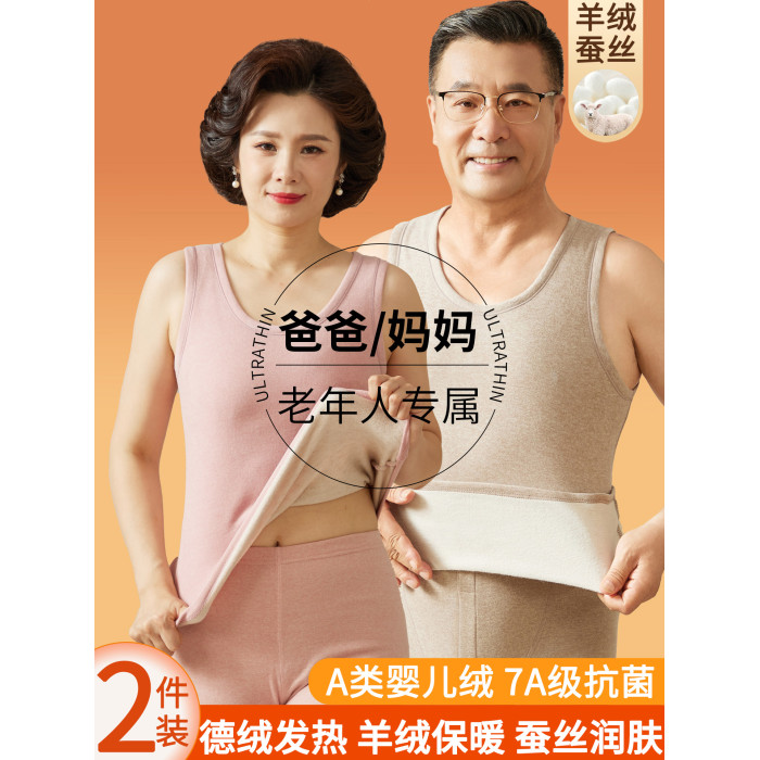 中老年人德絨髮熱內衣爸爸媽媽羊絨保暖背心男女士加絨加厚款秋冬