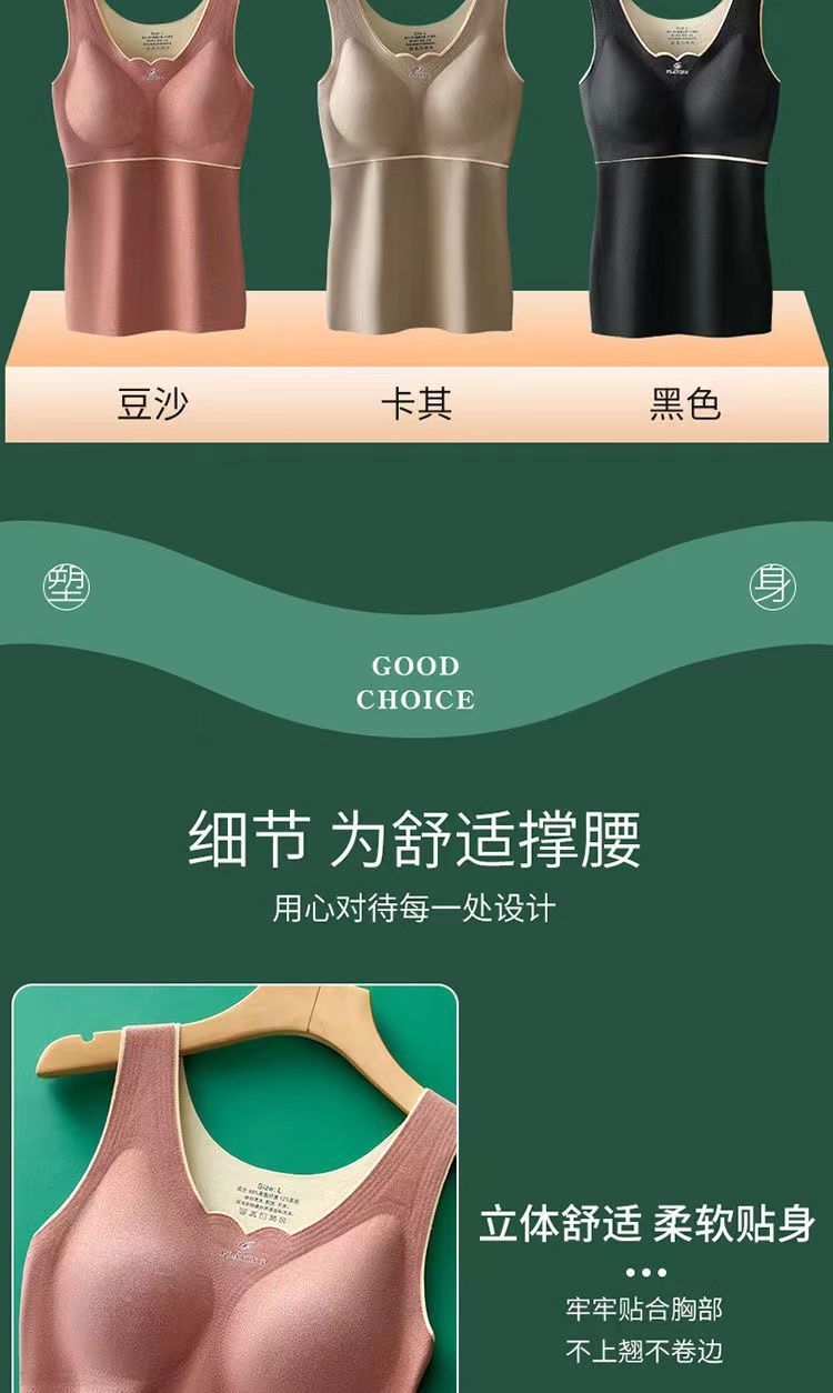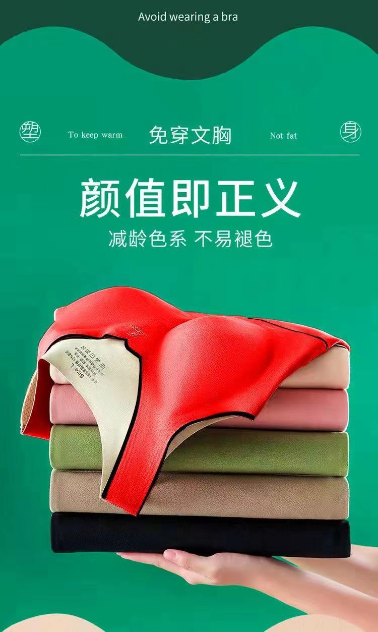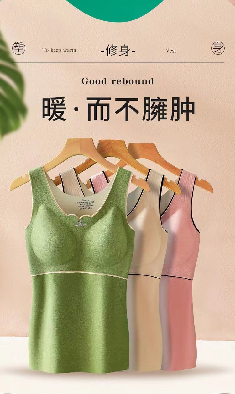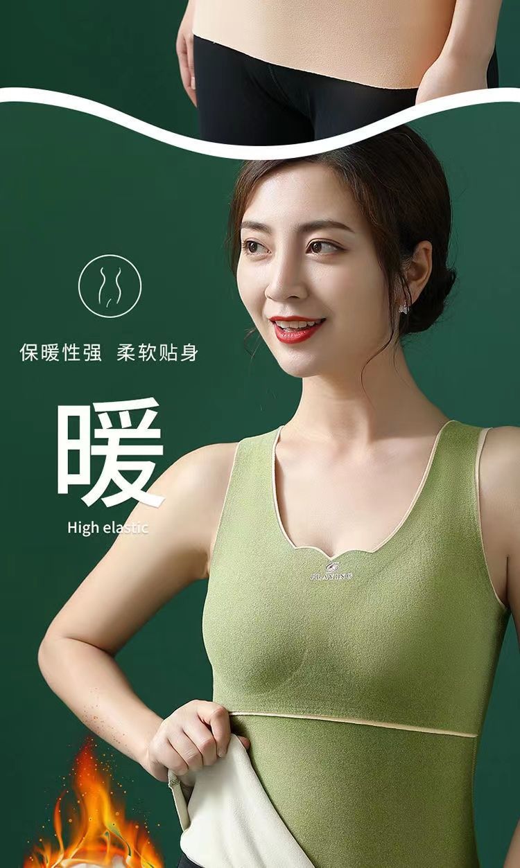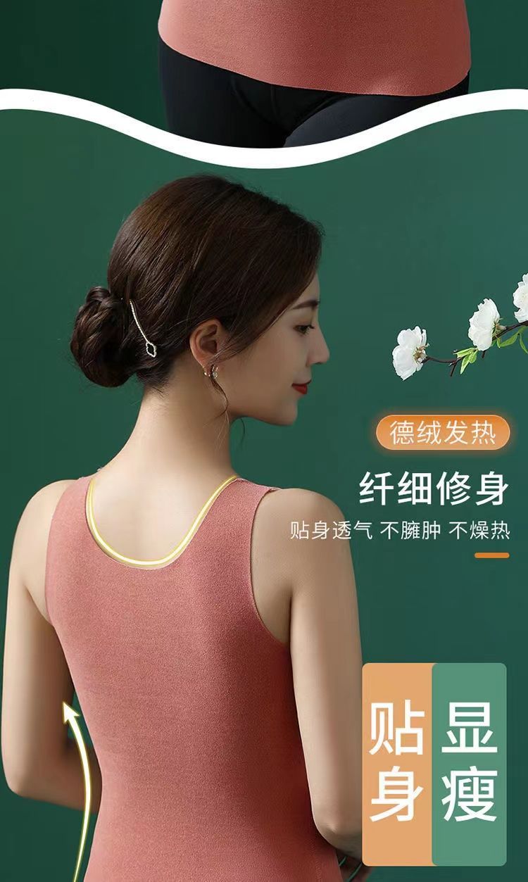 秋冬季新款德絨自髮熱保暖背心加絨加厚蓄熱防寒打底衫帶胸墊內衣