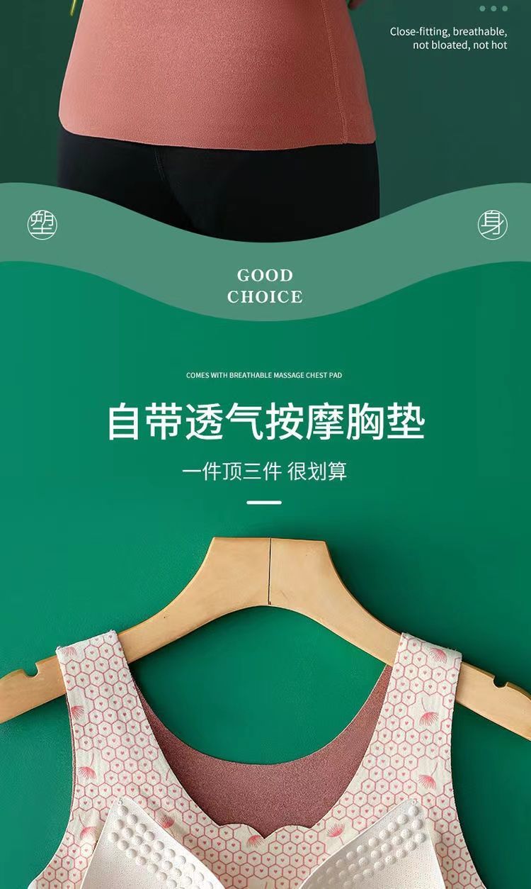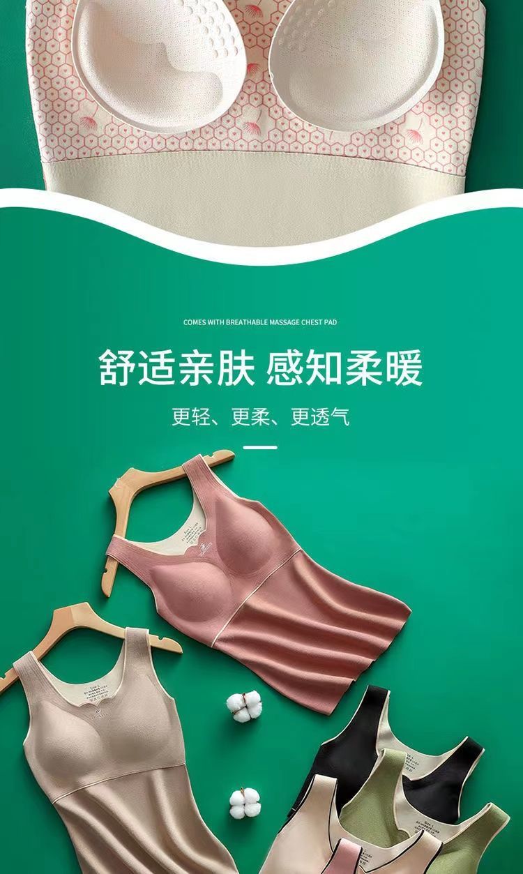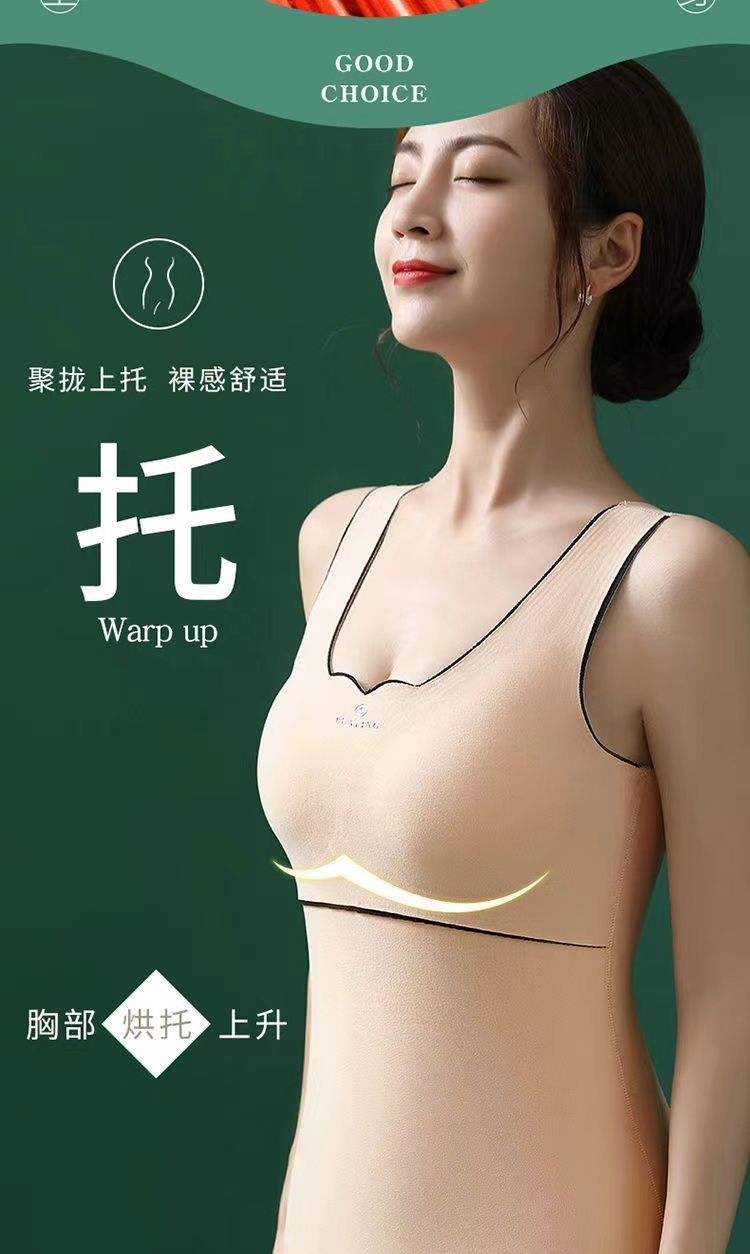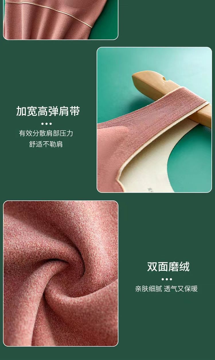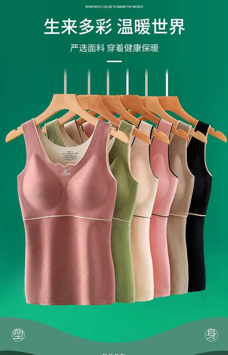 秋冬季新款德絨自髮熱保暖背心加絨加厚蓄熱防寒打底衫帶胸墊內衣