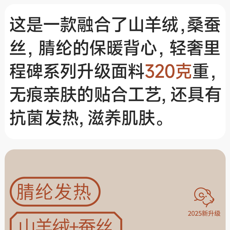 | 面料材質成分 | 聚酯纖維73% 再生纖維素纖維9.5% 聚氨酯彈性纖維(氨綸)8% 聚醯胺纖維(錦綸)4.5% 桑蠶絲2.5% 山羊羢(羊羢)2.5% |
