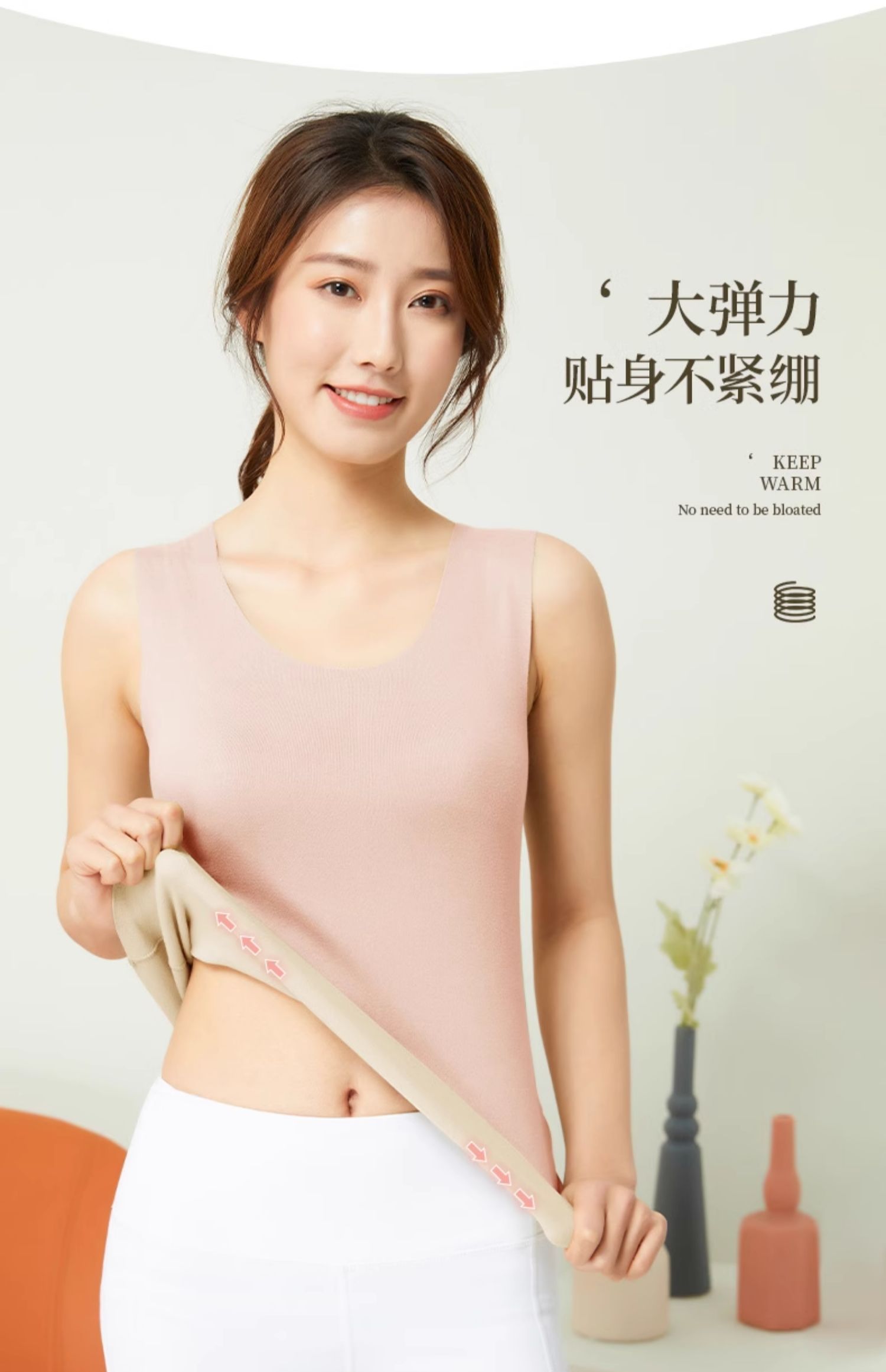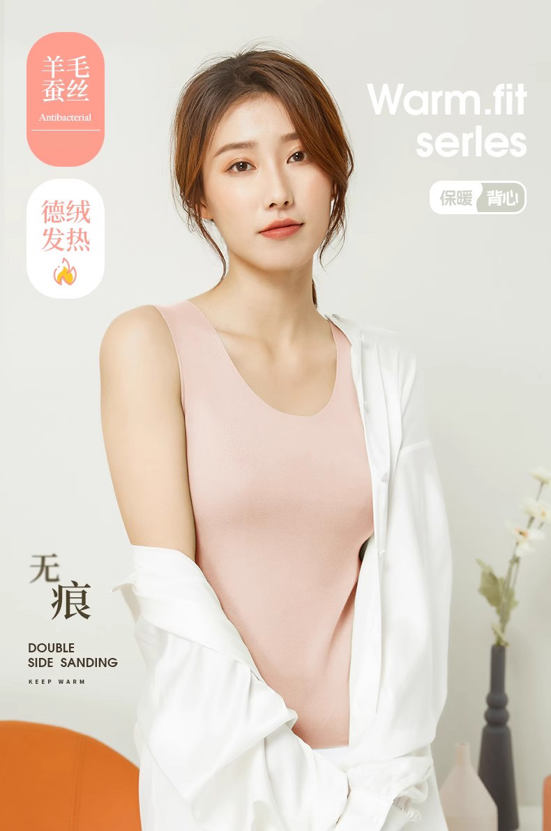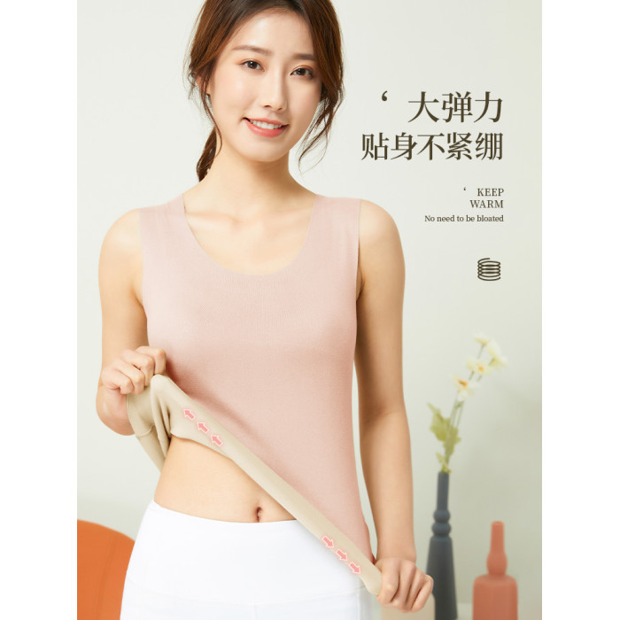健丹鳥德絨髮熱羊毛蠶絲無痕保暖背心女內衣加絨打底衫秋上衣冬季