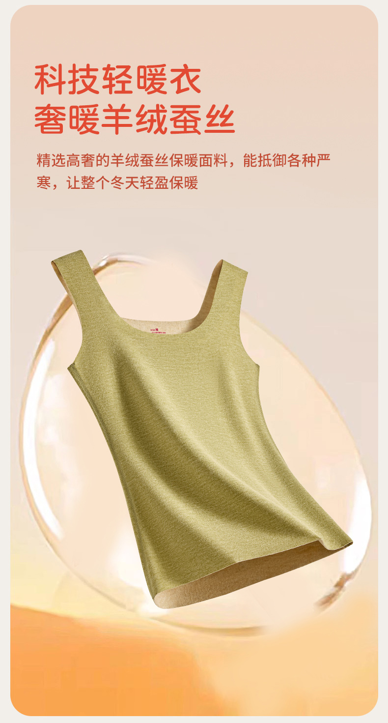 貓人保暖背心女士2025新款無痕加絨加厚羊毛蠶絲絨德吊帶內衣秋冬