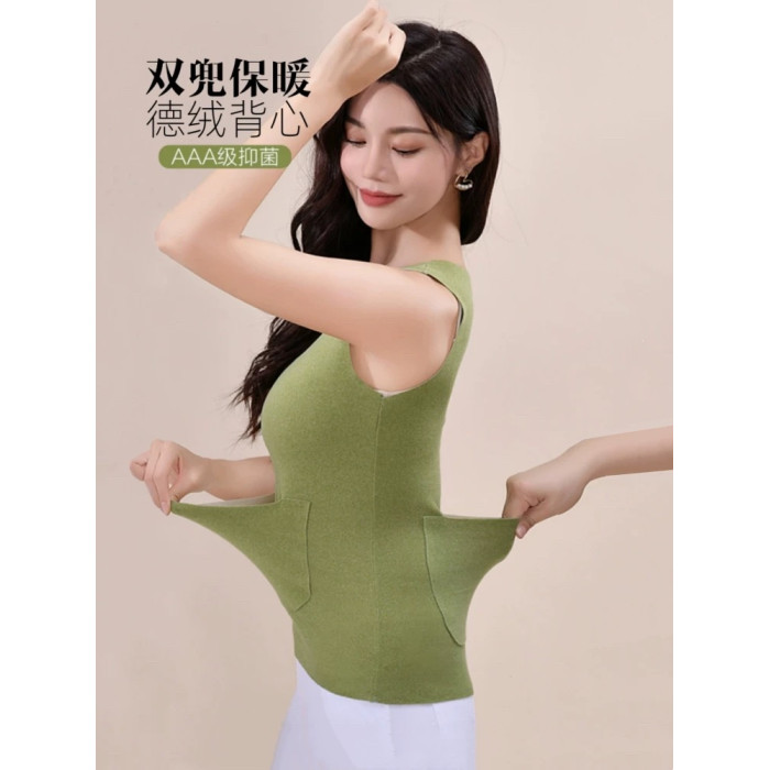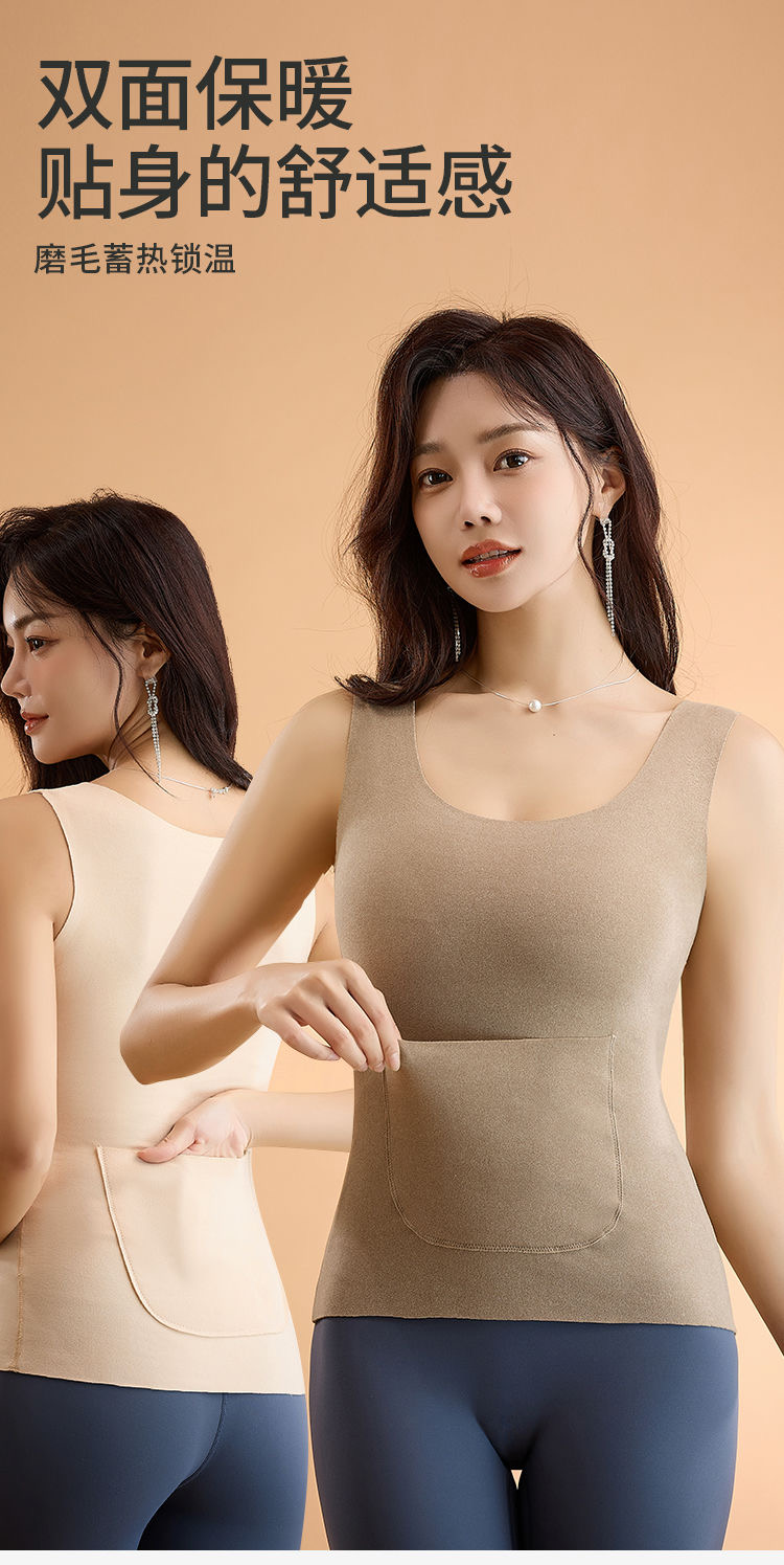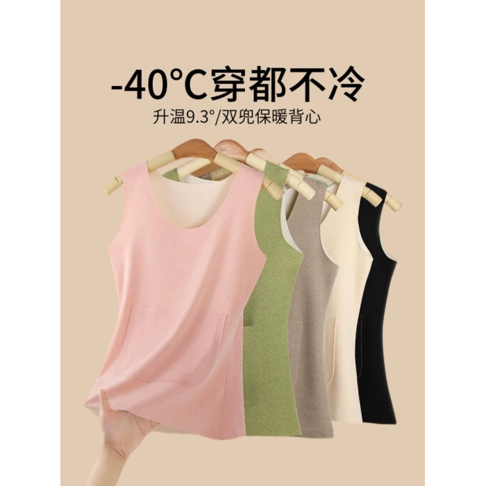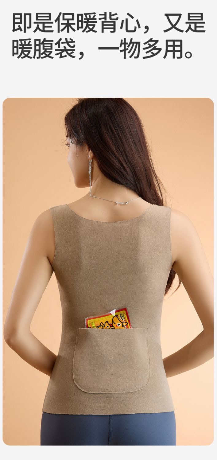 抖音同款加口袋雙兜保暖背心四季德絨薄款暖宮背心男女放暖寶防寒