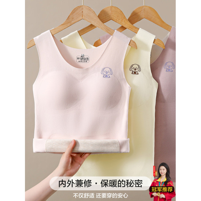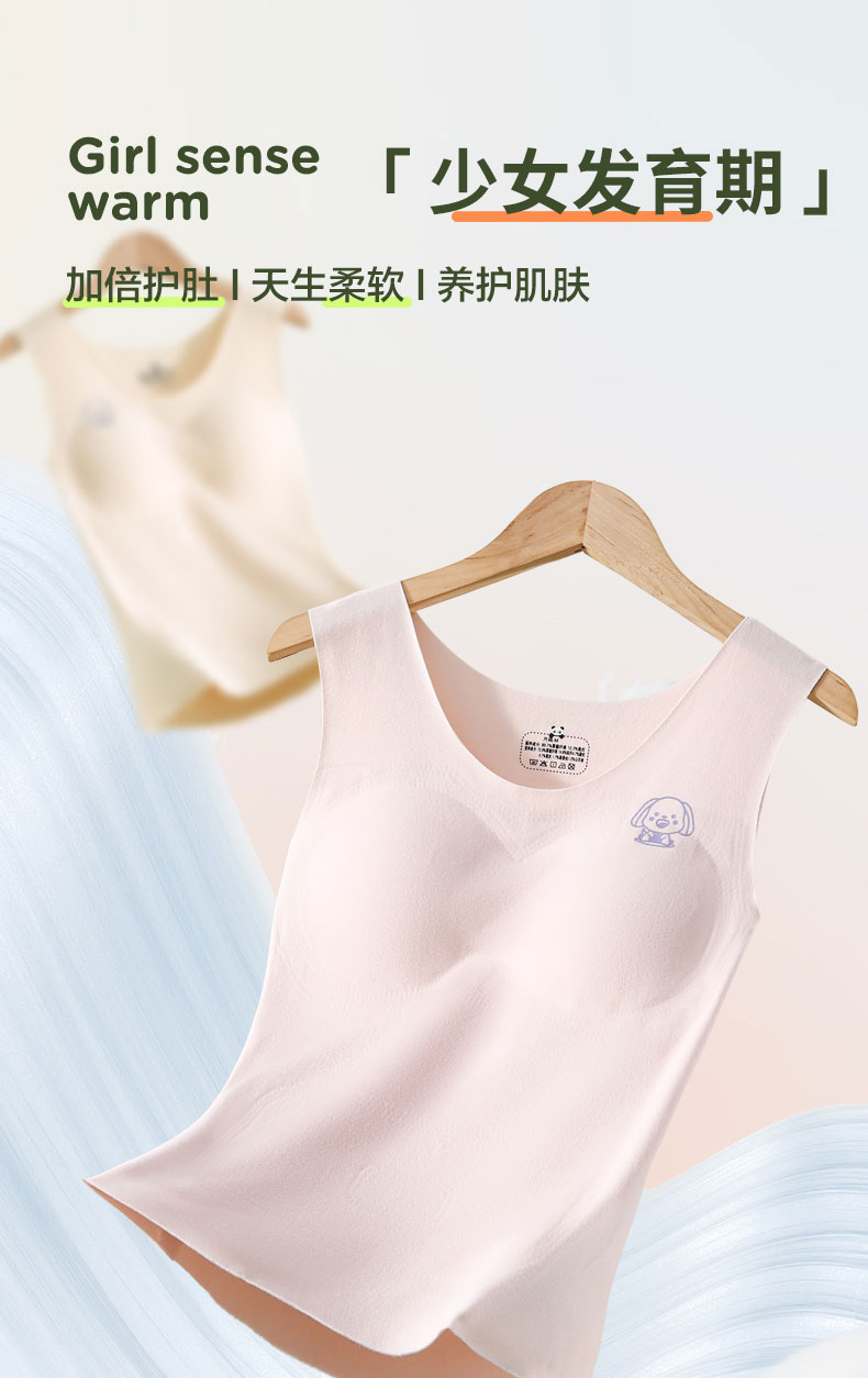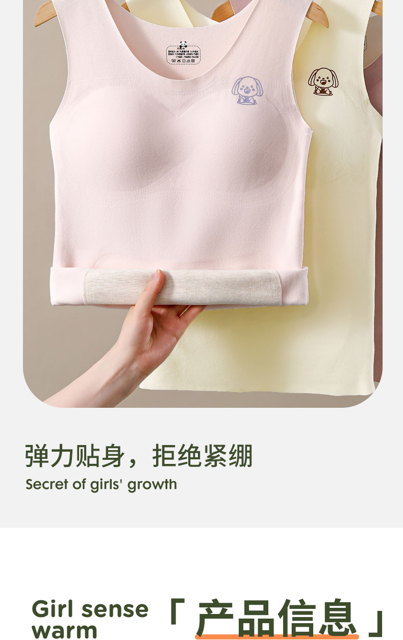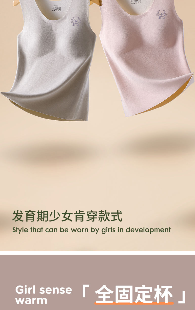 女童髮育期保暖背心少女德絨大兒童帶胸墊初中學生女孩內衣秋冬季