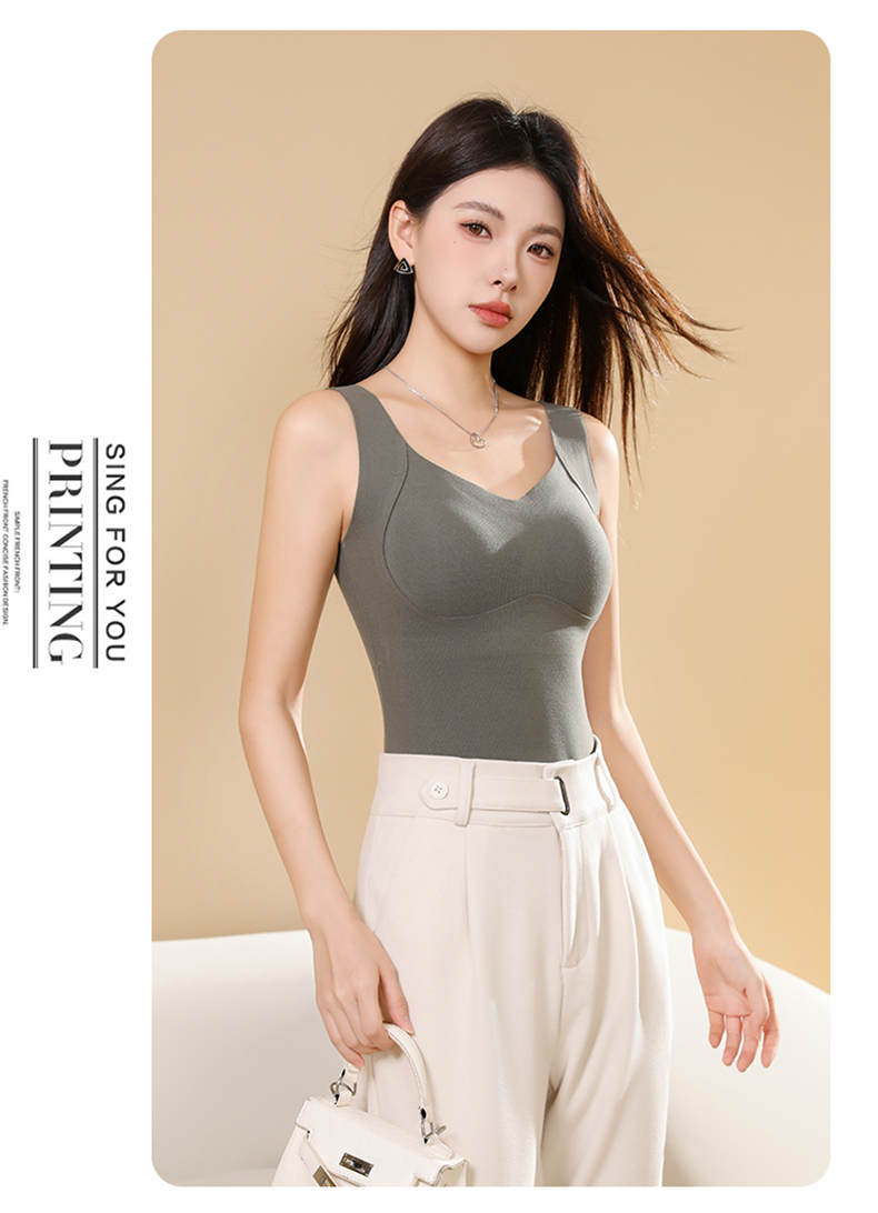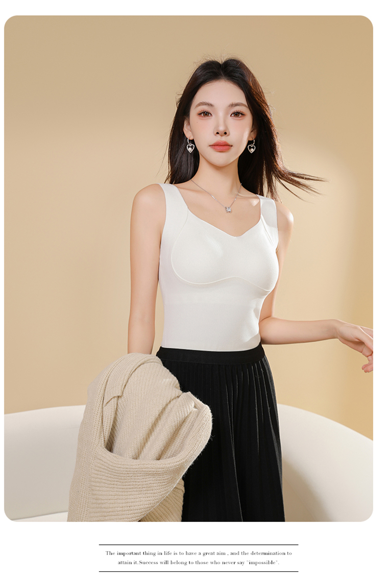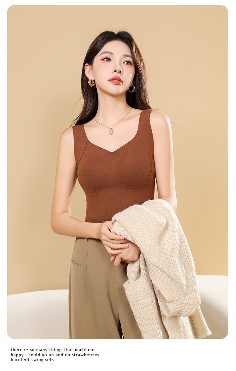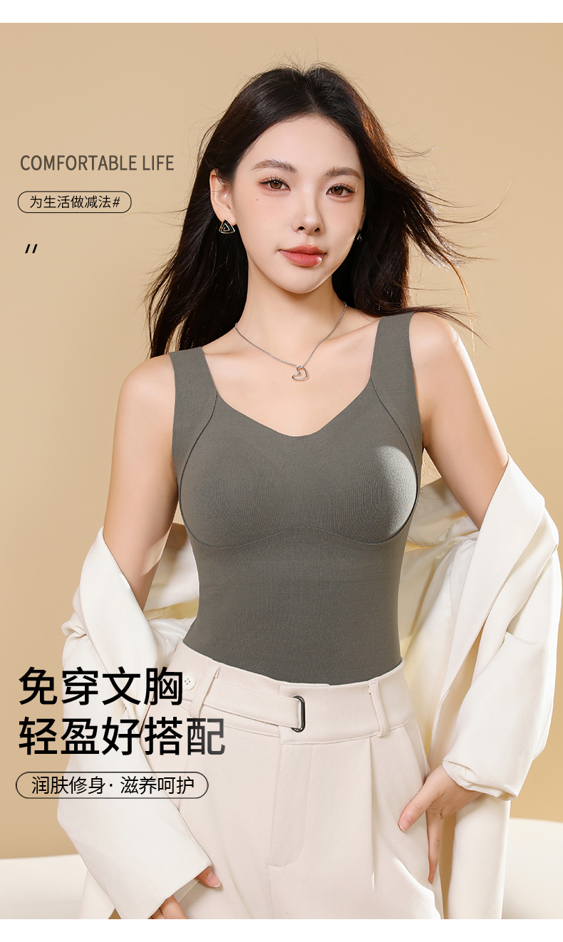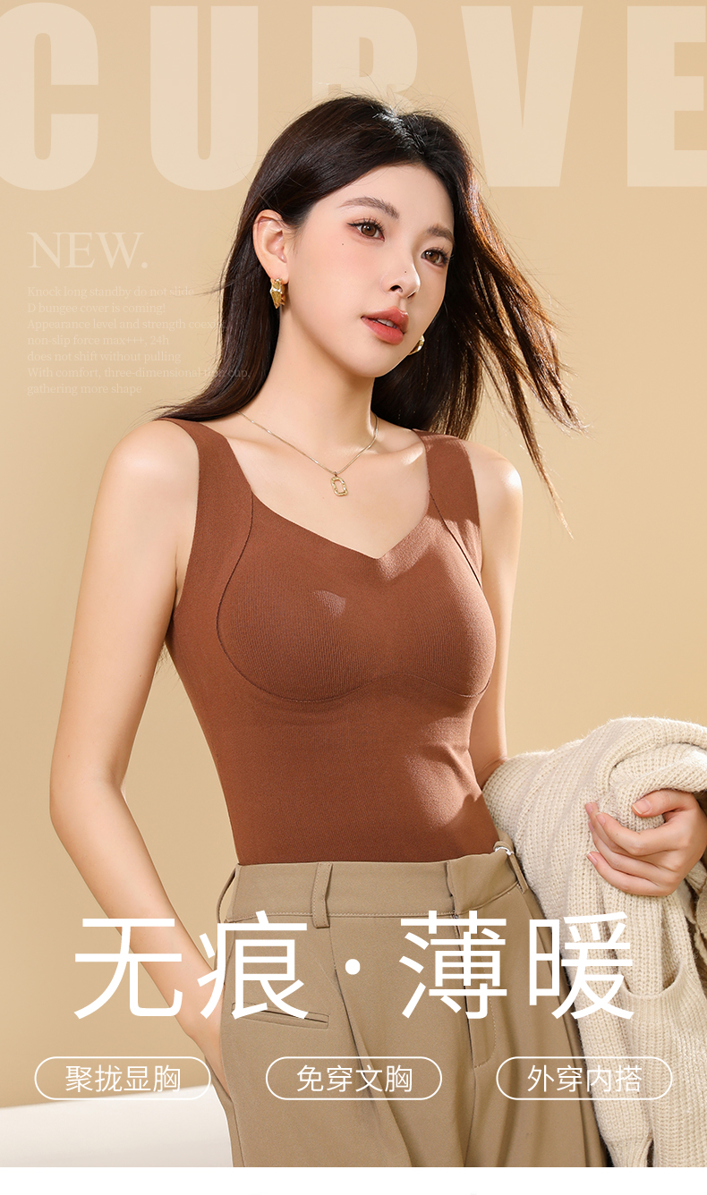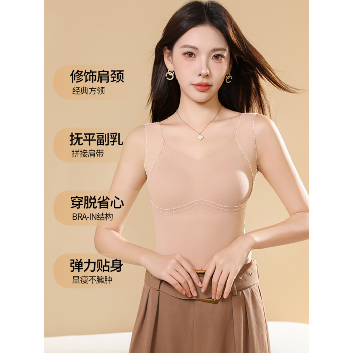 保暖背心女帶胸墊2024新款秋冬打底內搭小胸加厚顯大美背吊帶內衣