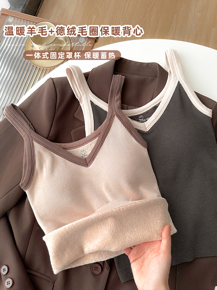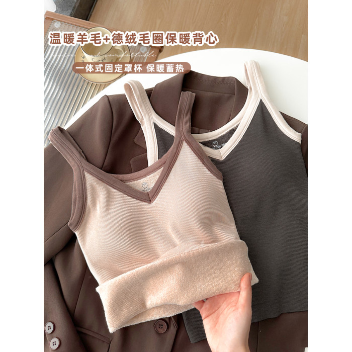 德絨加絨保暖背心女款2025新款女士美背內衣冬季打底自帶胸墊吊帶