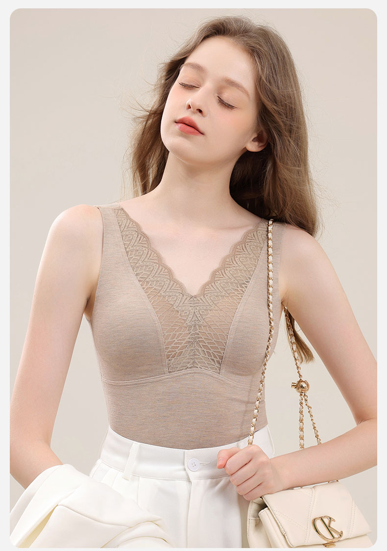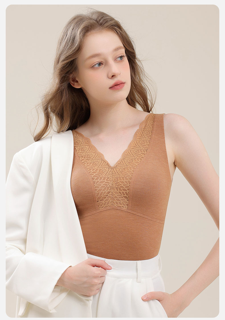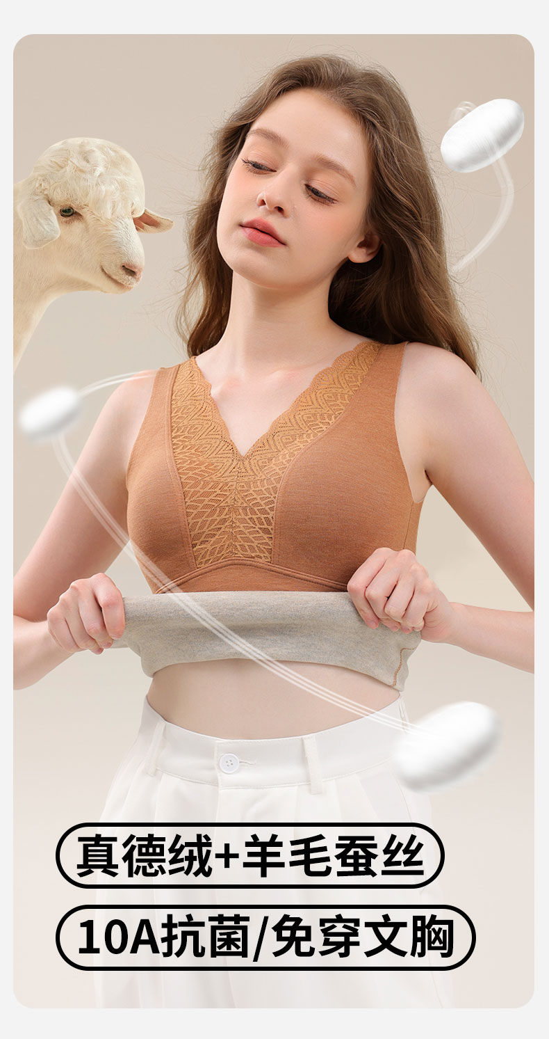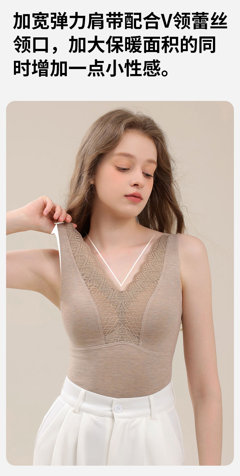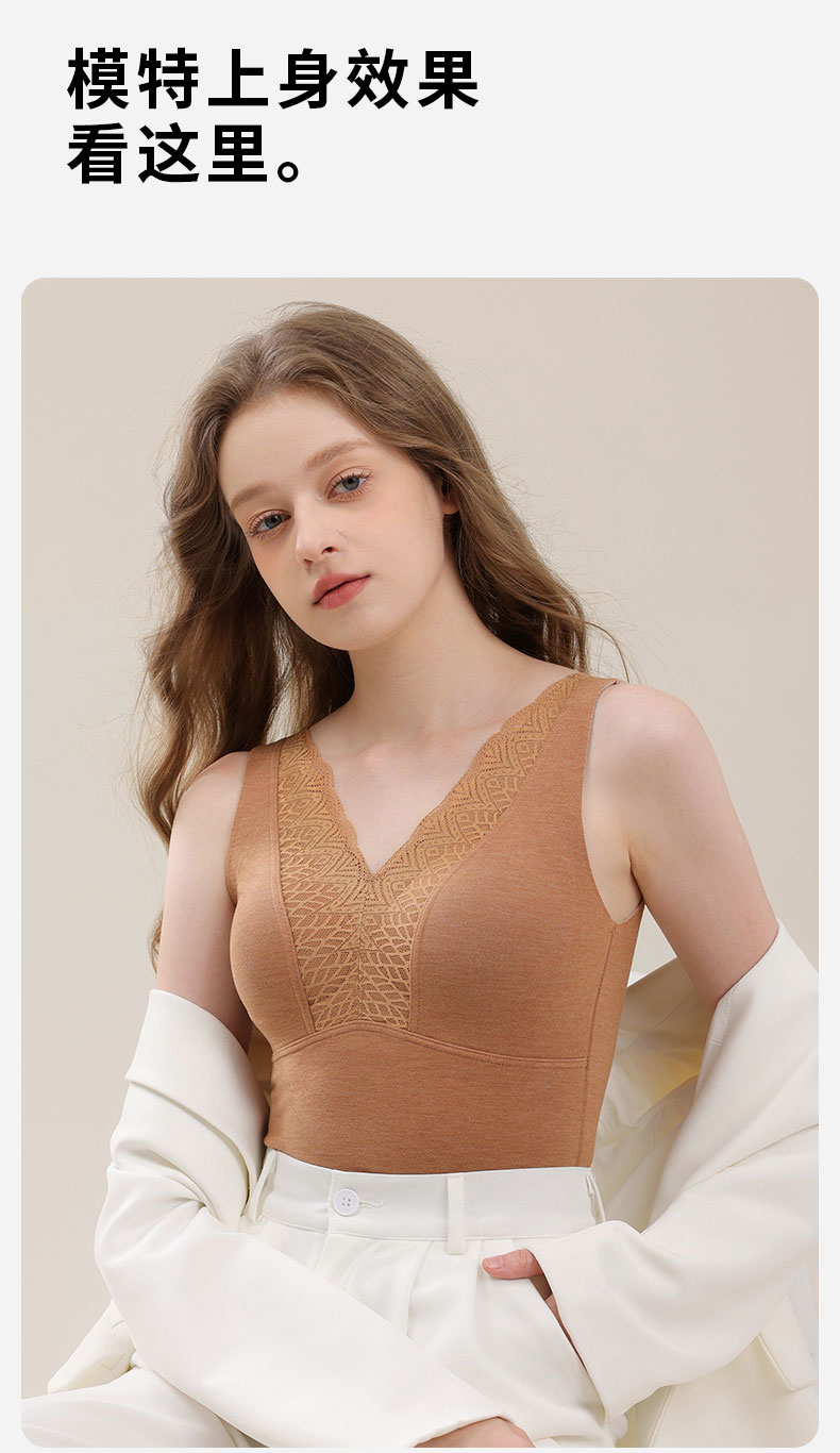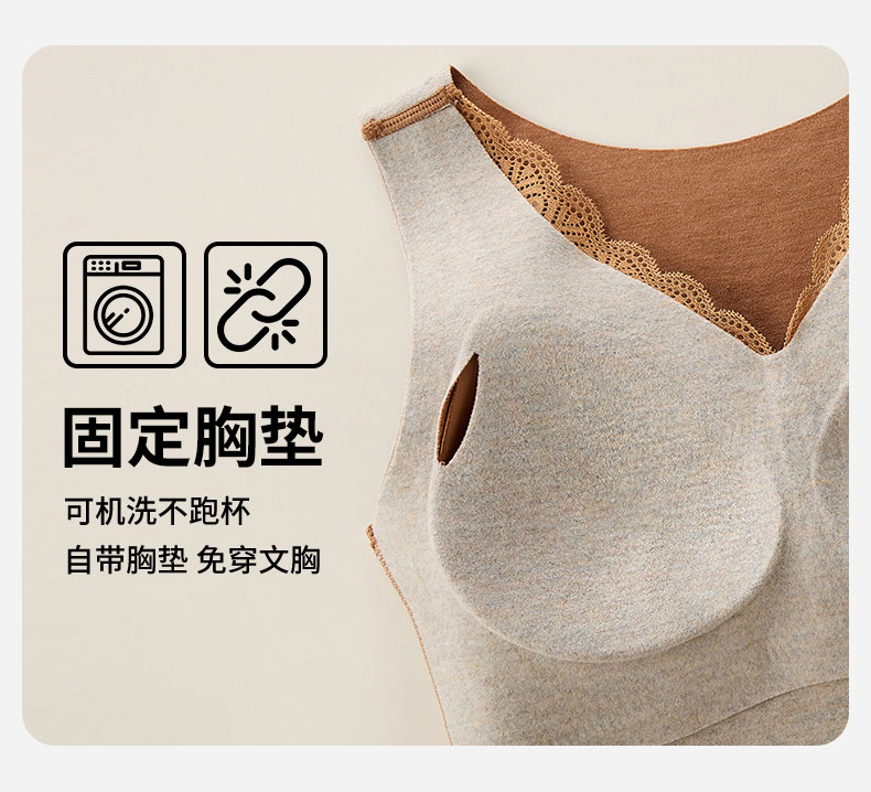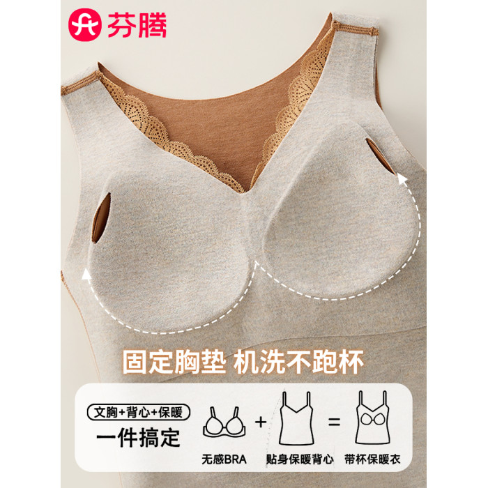 芬騰德絨保暖背心女帶胸墊文胸無痕自髮熱秋衣打底加絨加厚冬上衣