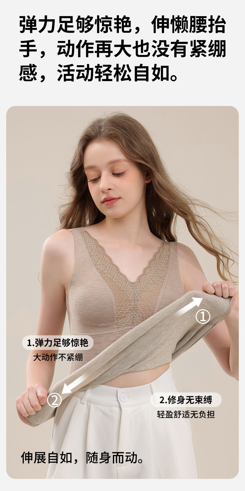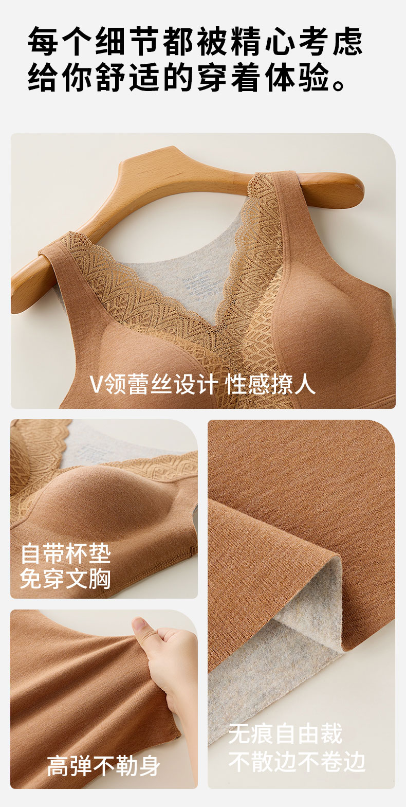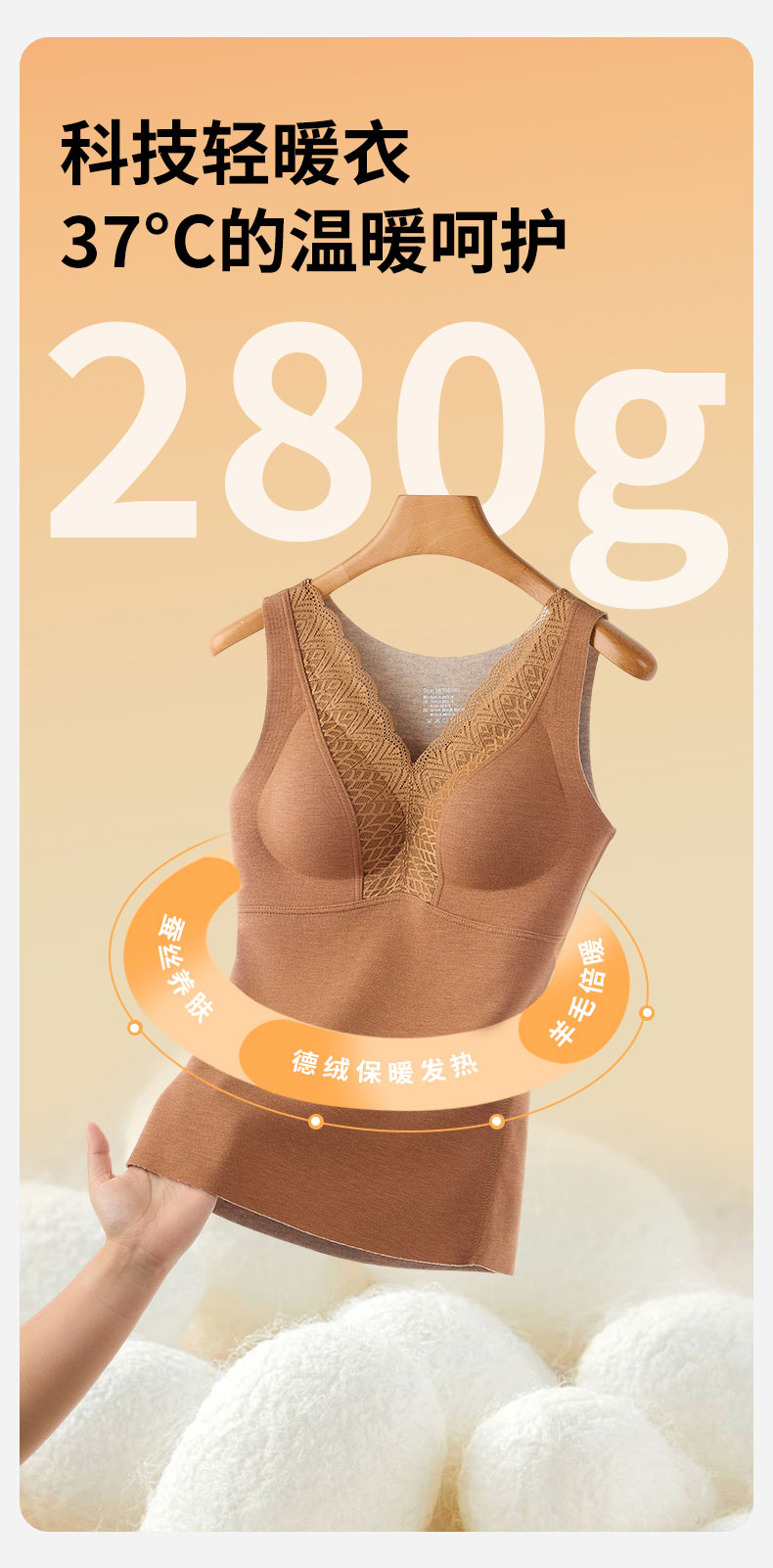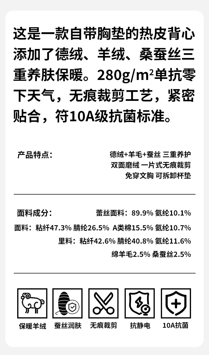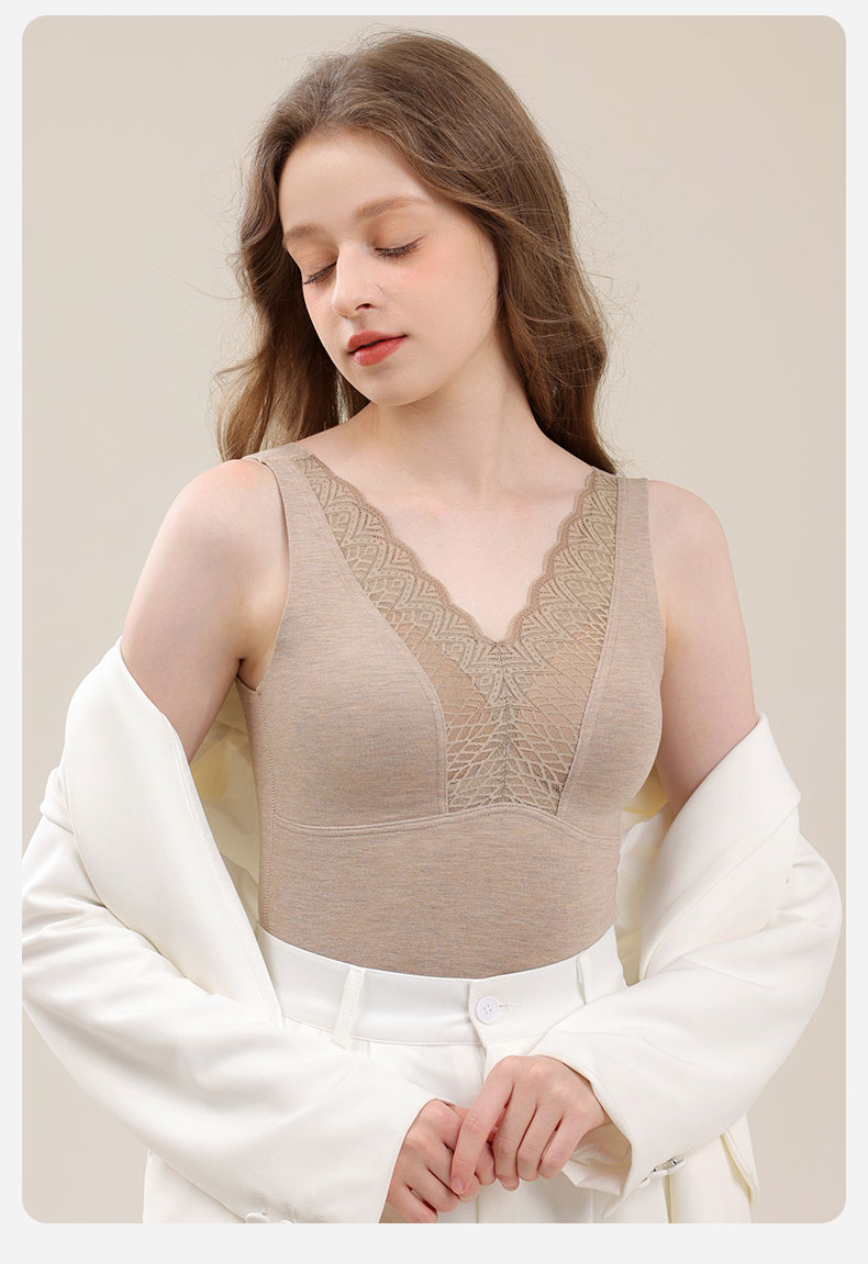 芬騰德絨保暖背心女帶胸墊文胸無痕自髮熱秋衣打底加絨加厚冬上衣