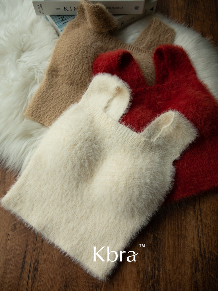 Kbra菟羔絨保暖背心2025年秋冬季帶胸墊加絨內搭外穿內衣女毛絨絨
