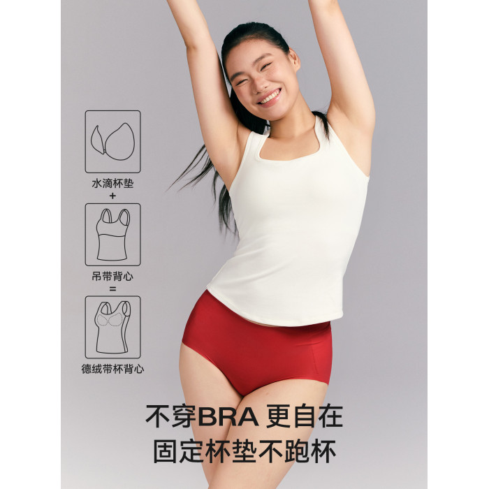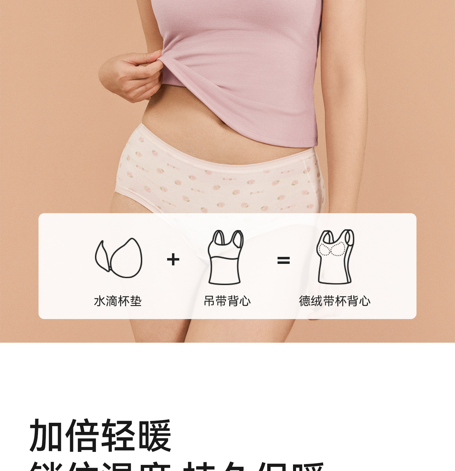 楊天真同款菇娘家德絨保暖背心女帶胸墊保暖內衣秋衣內搭打底上衣