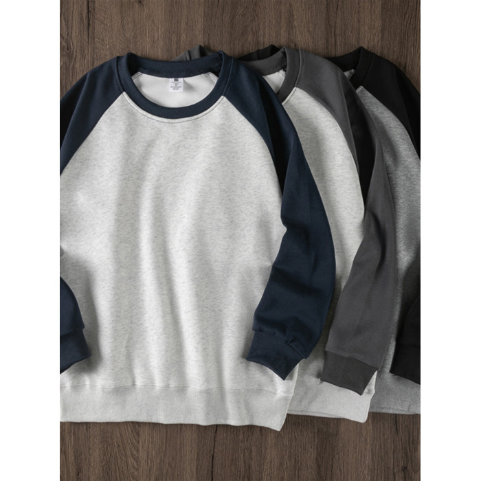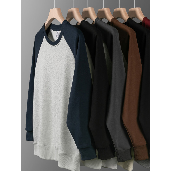 華棉高品質!重磅插肩袖圓領衛衣男女秋季百搭美式復古休閒上衣服