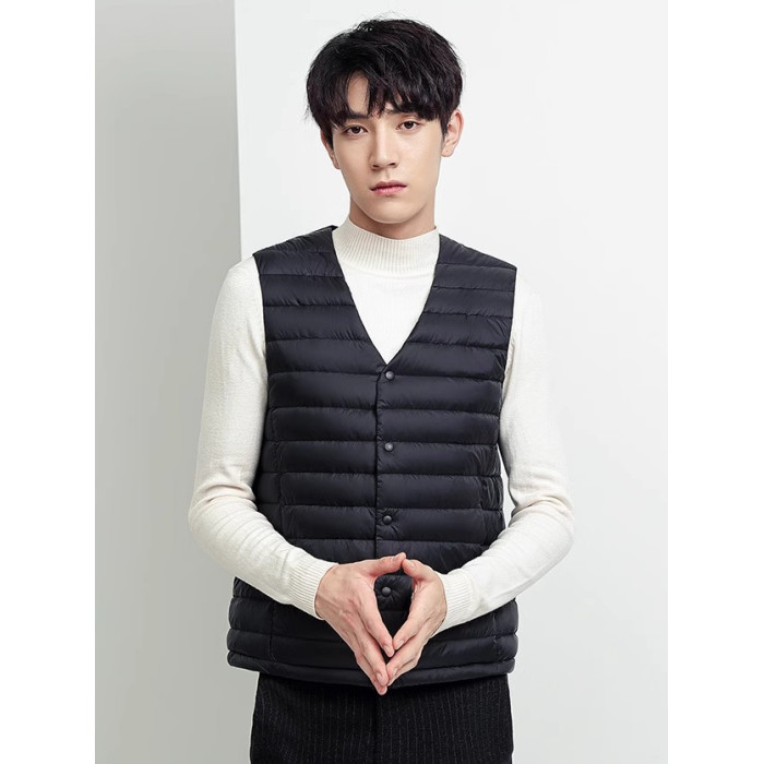 單秋冬新款輕薄羽絨馬甲男V領內膽大碼坎肩背心保暖外套