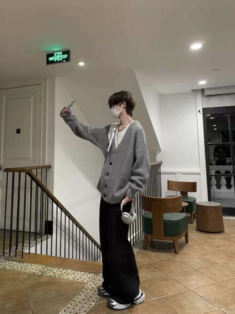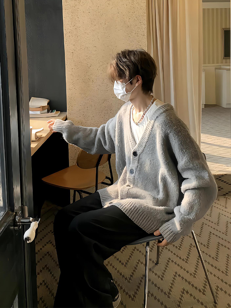 cleanfit開衫毛衣男款寬松慵懶高級感痞帥針織外套韓系氛圍感穿搭